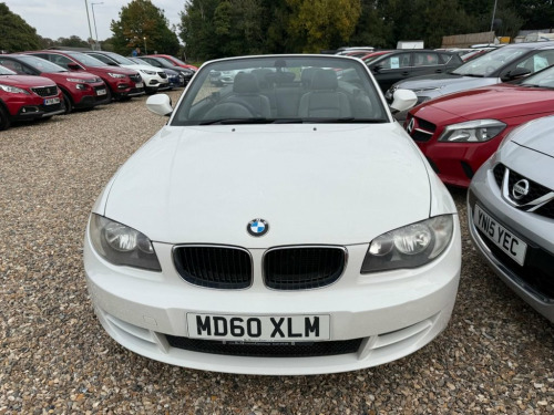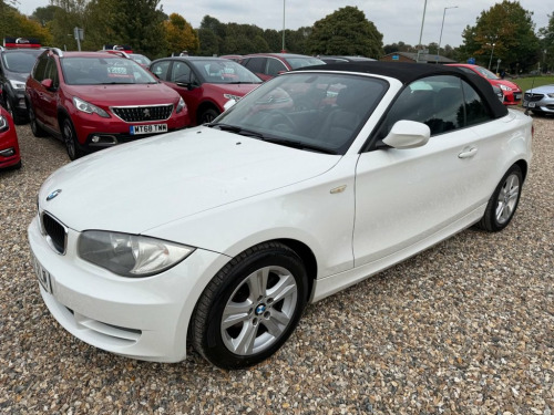 CONVERTIBLE+SERVICE HISTORY+£1,795 OF FEATURES+LONG MOT UNTIL 21.08.2026+BMW BUSINESS RADIO-CD PLAYER+VOICE CONTROL WITH BLUETOOTH INTERFACE+DUAL ZONE CLIMATE CONTROL AIR-CONDITIONING+LUXURIOUS HEATED LEATHER UPHOLSTERY+PARKING ASSISTANCE+ALPINE WHITE' PAINT+16 INCH ALLOY WHEELS. At Haverhill Car Xchange we would like to offer you our BMW 1Series Convertible which has been finished in an 'Alpine White' paint with luxurious HEATED Black leather upholstery. Specification Includes a BMW Business Radio-CD Player, BMW Assist, Voice Control System with Bluetooth Interface, Automatic Dual Zone Climate Control Air-Conditioning, Front Electric Windows, Body Coloured Bumpers/Door Handles and Door Mirrors, Halogen Headlights, Front Fog Lights, Auto Dimming Rear-View Mirror, Heated Leather Upholstery, Three Spoke Multifunction Steering Wheel, Parking Assistance, 16 Inch Alloy Wheels, ABS Breaking System, Alarm, Remote Central Locking and ISOFIX Anchorage Points for Child Seats. Leather- Boston- Black, Alpine White, 16in Double Spoke Alloy Wheels Style 222, 16in V- Spoke Alloy Wheels- Style 255, 16in V- Spoke Light Alloy Wheels Style 3, ABS - Anti Lock Braking System, Air Conditioning - Automatic with Two-Zo, Alarm System Thatcham 1 with Remote Cont, BMW Assist, BMW Business Radio with single CD player, BMW Online services, Bumpers - Body Colour, Cashmere Silver Interior Trim, Child Seat ISOFIX Attachment - Rear x2, Delete smokers Pack, Electric power Steering, Extended Lighting, Front Fog Lights, Halogen Headlights, High gloss Black Interior, Manual Front Seats with height adjustmen, Model designation deletion, Multifunction Controls for Steering Whee, Rear Parking