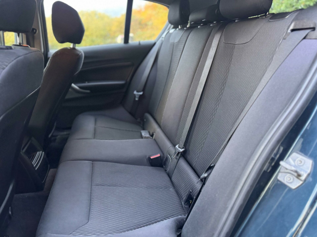 1 FORMER KEEPER FROM NEW - SERVICE HISTORY - HPI CLEAR - 11 MONTHS MOT - FRONT & REAR PARKING SENSORS - BLUETOOTH - FINANCE AVAILABLE - JUST BEEN SERVICED - ALL PART EXCHANGES ARE WELCOME - OVER 200 CARS IN STOCK - CALL FOR MORE INFORMATION This BMW 1 Series 118d SE is a superb example, having been owned by only two previous keepers. It features a responsive 2.0L diesel engine and comes in the well appointed SE trim. Inside, you'll find comfort features like lumbar support for both the driver and front passenger, alongside manual air conditioning to keep you comfortable. For convenience, it includes PDC Park Distance Control for both the front and rear, with integrated parking assistance sensors, and enhanced Bluetooth telephone preparation with a USB audio interface. The headlights activate automatically, ensuring you always have optimal visibility.This BMW 1 Series offers several advantages that set it apart. Its 0-62mph acceleration in just 8.9 seconds demonstrates its lively performance. Furthermore, it benefits from a low insurance group, which can help to keep your running costs down. You'll also appreciate the generous boot space, making it practical for shopping trips or luggage. These highlights indicate that this 118d SE provides a compelling blend of performance, economy, and practicality. v power socket - centre console, 12v power socket - passenger footwell, 16in alloy wheels - light v spoke - 378, 6.5in colour display screen, abs - anti lock braking system, asc - automatic stability control, active differential brake, adaptive headlights, air conditioning - manual, air microfilter, airbags - curtain, airbags - driver, airbags - front side, airbags - passenger, airbags - passenger deactivation, alarm system thatcham 1 with remote control, armrest - front and rear integrated into door trim, armrest - front with sliding adjustment, auxiliary input, bmw navigation system, bmw professional radio - single cd and mp3, belt force limiters - front, bluetooth hands free with usb audio interface, brake assist, brake drying, brake pad wear indicator - front and rear, bumpers - body colour, cbc - cornering brake control, central locking - remote, child proof locking system - rear doors, child seat isofix attachment - rear x2, comfort go keyless engine start, crash sensor - activating central locking-hazard warning lights-fuel cut off, cup holders, dab digital radio, dbc - dynamic brake control, dsc - dynamic stability control plus, dtc - dynamic traction control, daytime running lights, door handles - body colour, door mirrors - body coloured housing, door mirrors - electric and heated, door sill finishers - bmw designation - black, drive performance control - eco pro - comfort - sport - sport plus, dynamic brake lights, electric windows - front and rear with open-close fingertip control, first aid kit, floor mats - velour, follow me home headlight function, front fog lights, grab handles - in roof lining x4, halogen headlights, handbrake lever - gear lever knob and gaiters in leather, head restraints - rear and folding, headlights - automatic activation, heat protection glazing with green tint, heated windscreen washer jets, high level third brake light, hill start assist, interior lighting, interior trim - satin silver, kidney grille - chrome with black vertical slats, lights-on warning, locking wheel bolts, luggage compartment - lashing eyes x2, mobility tyre sealing system, multifunction controls for steering wheel, non smokers package, obc - on-board computer, power steering - electric, pyrotechnic belt tensioners - front, rain sensor, rear window wiper, seats - 60-40 split folding rear, side impact protection, speed limit function, steering column with manual reach and rake adjustment, steering wheel - 3-spoke leather, storage compartment - rear centre console, sun visors with vanity mirrors and ticket holder, tpws - tyre pressure warning system, tyres - reduced rolling resistance, pdc - park distance control - front and rear, enhanced bluetooth telephone preparation with usb audio interface, lumbar support - driver and front passenger, bmw emergency call, bmw teleservices, move cloth - anthracite with black interior