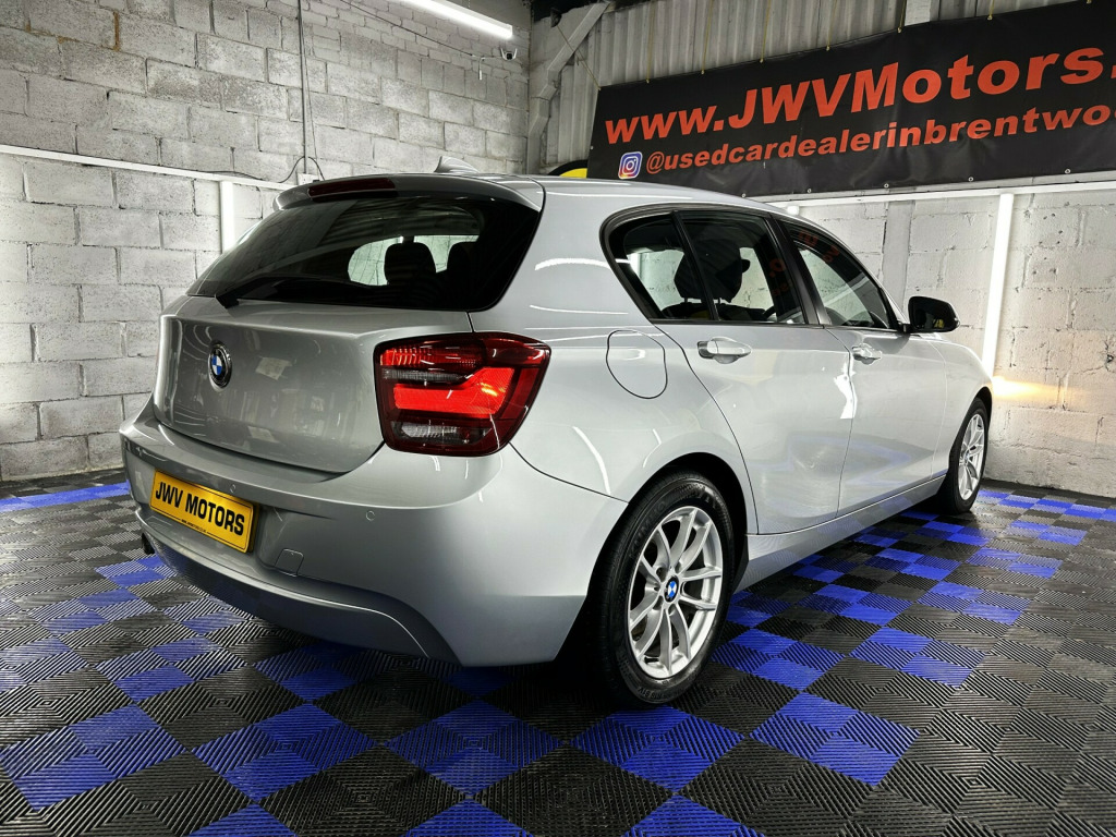 Amazing condition on this BMW 118D SE with just 2 owners from new , which is in excellent condition inside and out for its age and mileage. 1st owner was main dealer and 2nd owner since November 2012. Excellent running costs with just £35 road tax and great MPG. Service history comprising of 5 main dealer and 5 others on iDrive system and some invoices. This car comes complete with our best 3 months essential warranty, visit our website for full terms and conditions, for that extra peace of mind. HPI clear. Professionally valeted and detailed inside and out giving you the highest quality a car dealer can offer. The perfect new used car feeling. 2 x remote central locking key fobs. Part exchange welcome. This car is ready to drive away today. Appointments only giving you the customer our full attention, call today to arrange a viewing. All credit and debit cards accepted including American express. If you are looking for finance we work with a number of brokers to help find you the best deal. If you choose to finance your car with JWV Motors we will give you something back in return, up to months warranty with no admin fee. Unfortunately if you decide to choose an outsourced finance provider there will be an admin, this will vary depending on the company charges. If this car is not suitable for your needs you can visit all of our current stock on our website www.jwvmotors.co.uk. Why choose JWV Motors? Why not look at our reviews before making any decisions. Thank you for your time. SALE YOUR CAR THROUGH OUR SALE OR RETURN POLICY. INTERESTED PLEASE CALL FOR DETAILS. v power sockets, auxiliary input, bmw online services, bmw professional radio - single cd and mp3, bmw teleservices, bluetooth hands free with usb audio interface, 16in alloy wheels - light v spoke - 378, bumpers - body colour, door mirrors - electrically adjustable, double-vanos, electric windows - front and rear with open-close fingertip control, mobility tyre sealing system, abs - anti lock braking system, airbags - curtain, airbags - driver, airbags - driver and front passenger side, airbags - passenger, airbags - passenger deactivation, alarm system thatcham 1 with remote control, bumper system front and rear - replaceable deformation elements for impacts up to 9mph, cbc - cornering brake control, child seat isofix attachment - rear x2, crash sensor - activating central locking release, dsc - dynamic stability control - stabilises the vehicle in extreme situations - controls traction, remote control locking, side impact protection, air conditioning - manual, armrest - front with sliding adjustment, cup holders - front, floor mats - velour, head restraints - rear and folding, height adjustable drivers seat - manual, height adjustable passenger seat - manual, interior trim - satin silver, multifunction controls for steering wheel, non smokers package, seats - 60-40 split folding rear, steering column with manual reach and rake adjustment, steering wheel - 3-spoke leather, steering wheel - leather multifunction, check control warning system, drive performance control, obc - on-board computer, power steering - electric, tpws - tyre pressure warning system, front fog lights