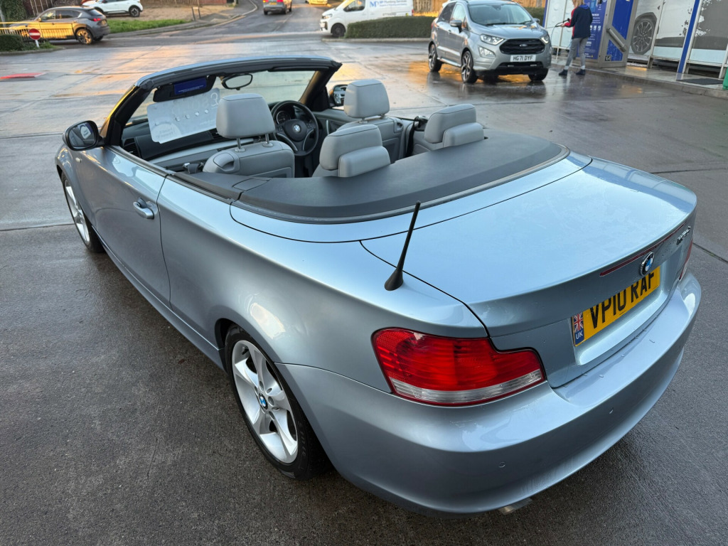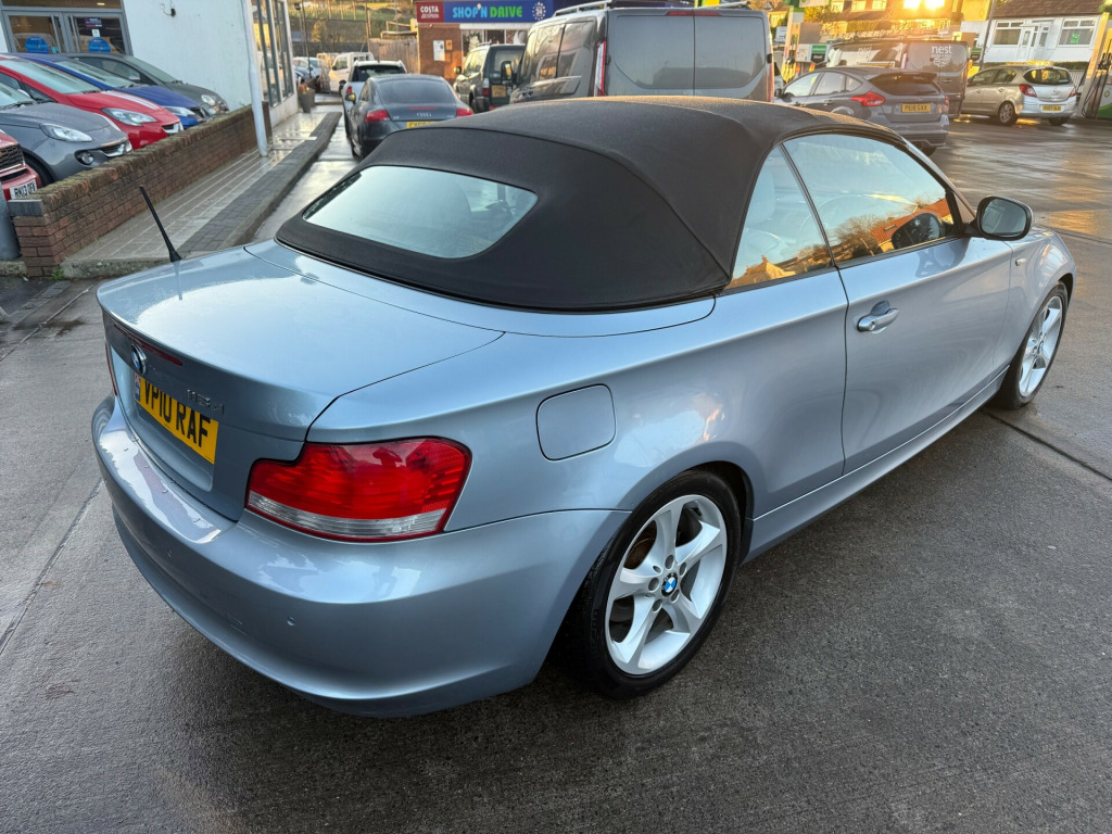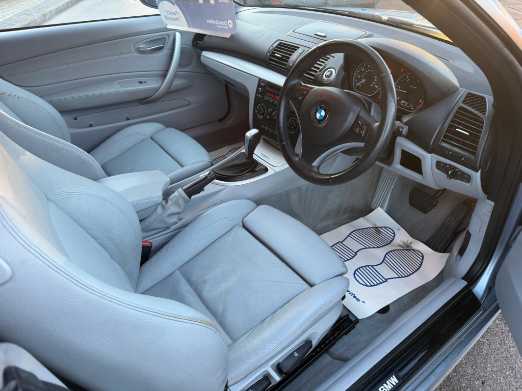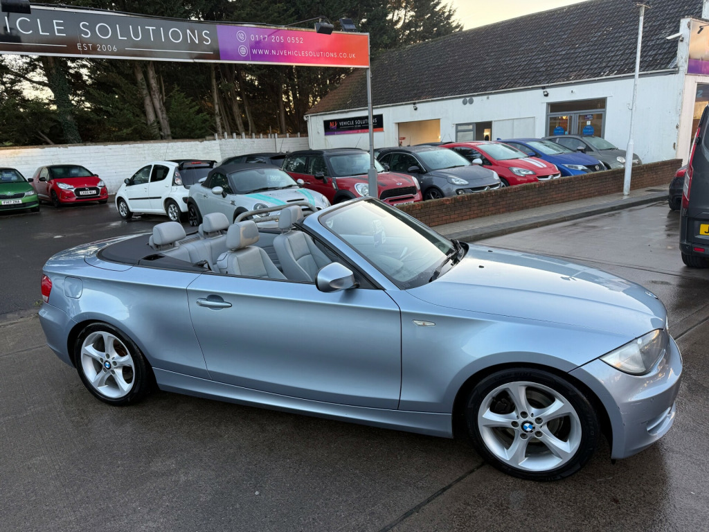 **SERVICE HISTORY-9STAMPS** Automatic gearbox Electric folding wing mirrors Heated seats Cruise control USB audio interface Enhanced bluetooth functionality M Sport suspension Comfort packFor sale is a well-maintained 2010 BMW 1 Series 2.0 118d Sport Convertible with a diesel engine and Steptronic transmission, boasting 103,000 miles on the clock. This stylish 2-door convertible comes with a valid MOT until 21/05/2026 and holds ample space for 4 passengers. Equipped with luxurious features such as Bluewater, folding door mirrors, run flat tires, and BMW Professional Radio with CD player, as well as Bluetooth telephone preparation with telematics, this car ensures a comfortable and seamless driving experience. Whether cruising through the countryside or navigating city streets, this convertible offers the perfect combination of performance and elegance.NJ VEHICLE SOLUTIONS pride ourselves on supplying high spec and prestige vehicles at affordable prices Please visit us or take a look on our website at similar stock. We are located 10 minutes from M4/M5 with many quality vehicles to choose from. We offer full dealer facilities, low deposit finance, all debit cards accepted. Please call 0117 205 0552 for out of hours response ON THIS VEHICLE please SMS or Whatsapp 07887834843, in 5spoke alloy wheels style 256, 17in v spoke alloy wheels- style 141, bumpers - body colour, soft top- beige, soft top- black, alarm system thatcham 1 with remote control, child seat isofix attachment - rear x2, bmw assist, bmw business radio with single cd player, bmw online services, cashmere silver interior trim, delete smokers pack, front centre armrest with storage compartment when with bluetooth telephone preparation, high gloss black interior, manual air conditioning, manual front seats with height adjustment, model designation deletion, multifunction controls for steering wheel, satin silver matt interior trim, smokers pack, sport multi-function leather steering wheel - three spoke, sport seats - front, electric power steering, voice control system when with bluetooth interface, front fog lights, halogen headlights