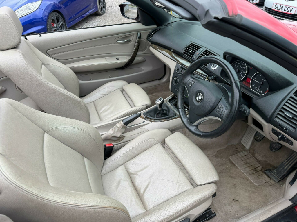 Nationwide Delivery Available . 2010 10 Registered BMW 118D 2.0D SPORT CABRIOLET in a Stunning Bright with Heated Boston Beige Leather Interior . As you can see the cars a Fantastic Example and is a Credit to its Previous Keeper . As you can see the car has a Superb and Still Very Shiny Bodywork as well as a Nice Clean Heated Leather Interior ( Valeted Pictures ) And Just as you would Expect from a Well Maintained BMW it Runs and Drives Superbly and with this being the 118D SPORT it comes with its Fantastic Looks and Specification and also comes with a Nice amount of Factory Extras Such as the Boston Leather , Heated Seats , Folding Mirrors , Dark Grey Poplar Wood |Trim ands more . Comes with a Service History and MOT until JUNE 2026 .Any PX welcome . Viewings and Test Drives are also welcome and im sure the first to drive will buy . Amazing looking car for very little money . We will take anything as a Part Exchange , Whether it be a Car , Bike , Pushbike , Jewellery or watch etc . We have over 60 cars in stock including other Cabriolets . For more info please call on 07407 682036.. 17in 5Spoke Alloy Wheels Style 256, 17in V Spoke Alloy Wheels- Style 141, Alarm System Thatcham 1 with Remote Control, BMW Assist, BMW Business Radio with single CD player, BMW Online services, Bumpers - Body Colour, Cashmere Silver Interior Trim, Child Seat ISOFIX Attachment - Rear x2, Delete smokers Pack, Electric power Steering, Front Fog Lights, Front centre armrest with storage compartment when with Bluetooth telephone preparation, Halogen Headlights, High gloss Black Interior, Manual Air Conditioning, Manual Front Seats with height adjustment, Model designation deletion, Multifunction Controls for Steering Wheel, Satin Silver matt Interior Trim, Smokers Pack, Soft top- Beige, Soft top- Black, Sport Multi-Function Leather Steering Wheel - Three Spoke, Sport Seats - Front, Voice Control System when with Bluetooth interface, Heated Front Seats, Dark Grey Poplar Wood Trim, RunFlat Tyres, Folding door mirrors, Leather- Boston- Beige. Part service history