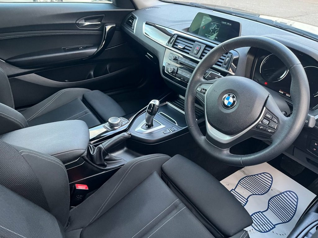 ULEZ Compliant 2019 BMW 118D Sport , 3 door hatchback in Black, 1995 cc diesel engine with only 45000 miles with full main dealer service history, two keys and nationwide 06 month RAC mechanical warranty included a new mot will be carried out and all cars are HPI checked and clear, the car comes with Automatic gear box, satellite navigation, rear parking sensors, Grey cloth seats, USB port, air Con, alloy wheels, electric windows , electric mirrors, ISOFIX rear seats , Bluetooth and cruise control. 12V Power Socket - Centre Console, 12V Power Socket - Passenger Footwell, 17in Alloy Wheels - Light Double Spoke S, 17in Alloy Wheels - Light Star Spoke - 3, Active Differential Brake - ADB Sport - , Air Conditioning - Automatic - Single Zo, Airbags, Alarm System - Thatcham 1 with Remote Co, Ambient Lighting - Switchable BMW Classi, Armrest - Front with Sliding Adjustment, Automatically Dimming Rear View Mirror, Battery Age Recognition Function, Battery Safety Cut Off, Bluetooth Hands Free with USB Audio Inte, BMW ConnectedDrive Online Services, BMW ConnectedDrive Services, BMW Emergency Call, BMW Mobility Tyre Sealing System, BMW Navigation System, BMW Professional Radio - Single CD and M,