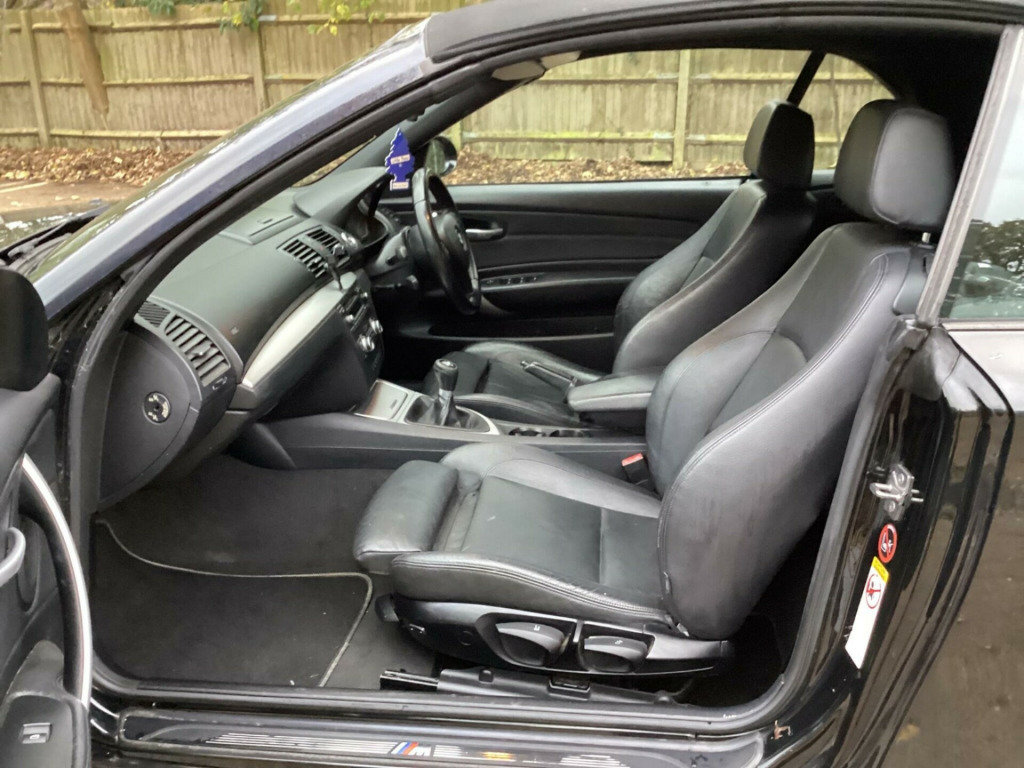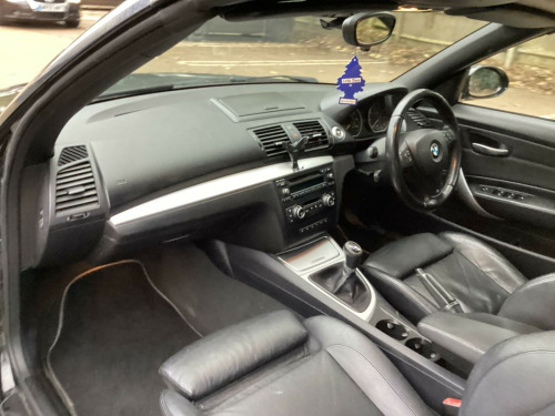This 2009 BMW 1 Series 118i M Sport offers peace of mind with a 12 month warranty and a fresh 12 month MOT provided on purchase, alongside a partial service history. This stylish M Sport variant is equipped with a 2.0L petrol engine and features a range of desirable options including Bluetooth telephone preparation with enhanced functionality, USB audio interface and voice control, as well as Boston black leather upholstery. For convenience, it includes front and rear parking distance control with a front camera, and heated front seats for added comfort.This BMW 1 Series stands out with its impressive fuel economy, achieving up to 43 mpg, and benefits from a low CO2 emission rating. Its low insurance group rating also makes it an economical choice for many drivers. Furthermore, the spacious boot offers ample room for luggage or shopping, making it a practical option for everyday use and longer journeys. uetooth telephone preparation with telematics, 18in double spoke light alloy wheels style 261m, comfort package se & m sport, enhanced bluetooth telephone functionality with usb audio interface and voice control, heated front seats, wind deflector, front&rear parking distance control, usb & audio interface, run flat tyres, bmw professional radio with cd player, automatically dimming rear view mirror, armrest - front with sliding adjustment, extended storage, rain sensor with auto headlights activation, leather- boston- black, 17in m light alloy double spoke wheels- style 207, air conditioning - automatic with two-zone control, alarm system thatcham 1 with remote control, aluminium glacier silver interior trim, bmw assist, bmw business radio with single cd player, bmw online services, brushed aluminium interior trim, bumpers - body colour, child seat isofix attachment - rear x2, chrome line exterior, delete m sports suspension, delete smokers pack, electric power steering, extended lighting, front fog lights, halogen headlights, high gloss shadow line, m aerodynamic bodystyling, m sport package, m sports suspension, manual front seats with height adjustment, model designation deletion, multifunction controls for steering wheel, rear parking distance control, smokers pack, soft top- beige, soft top- black, sport seats - front, voice control system when with bluetooth interface
