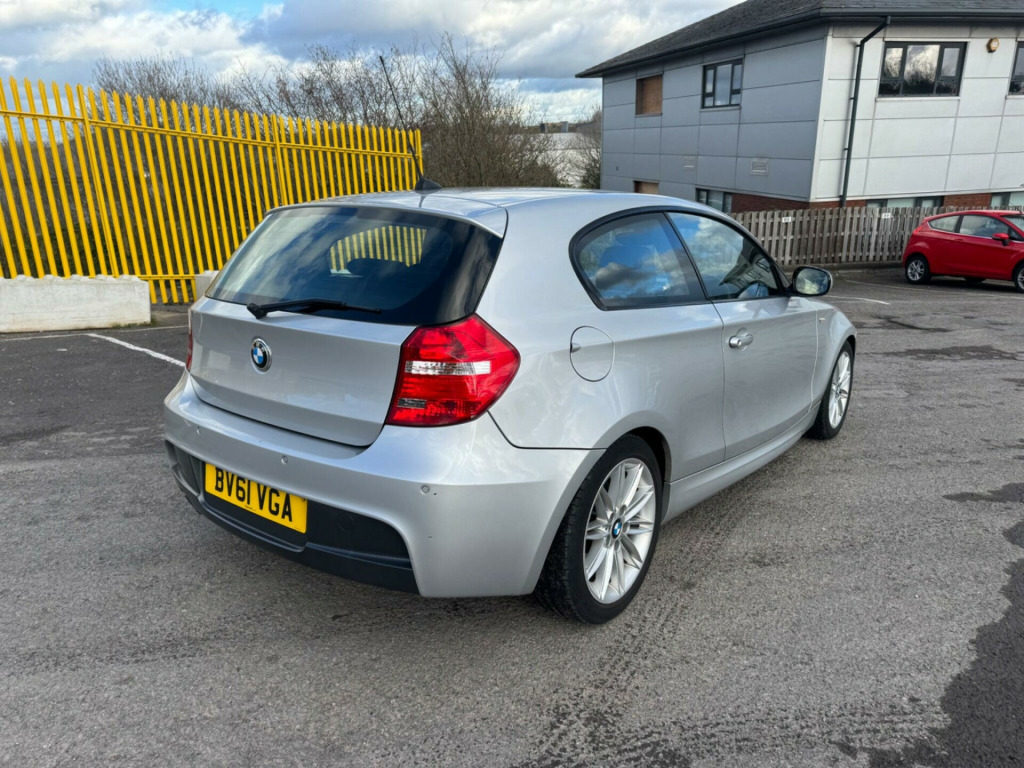 Discover this exceptional 2011 BMW 1 Series 118i M Sport, boasting remarkably low mileage for its age at just 68,000 miles. This M Sport variant is powered by a responsive 2.0 litre petrol engine, offering an engaging driving experience with a 0-62mph acceleration time of 8.7 seconds. Practicality is also a strong suit, featuring a generous boot space perfect for your needs.This BMW 1 Series comes equipped with a host of desirable features that set it apart. The Comfort Package enhances your driving pleasure, while the PDC Park Distance Control, including front and rear sensors, makes manoeuvring effortless. Additionally, the rain sensor automatically activates the headlights, ensuring visibility in changing conditions. The deletion of the fifth seat further optimises the interior space for those who prioritise comfort and practicality. v power socket - rear of centre console, 17in alloy wheels - light double spoke - 207m, 17in m light alloy double spoke wheels- style 207, 4 seats ilo 5, 5 seats, abs - anti lock braking system, air conditioning - automatic - dual zone, airbags - driver and front passenger head, airbags - driver and front passenger side, airbags - front and rear passenger, airbags - impact dependent system for driver and front passenger, alarm system thatcham 1 with remote control, aluminium glacier silver interior trim, armrest - front centre, automatically dimming rear view mirror, auxiliary input, bmw assist- 6 months subscription, bmw business radio with single cd player, bmw business radio with single cd & mp3 player, bmw connecteddrive- assist, bmw connecteddrive- online, bmw online services, brushed aluminium interior trim, cbc - cornering brake control, child seat isofix attachment - front and rear, chrome line exterior, crash sensor - activating central locking release, dsc - dynamic stability control - stabilises the vehicle in extreme situations - controls traction, deformation zones - front and rear, delete m sports suspension, door mirrors - electrically adjustable, door mirrors - heated, ebd - electronic brake-force distribution, electric windows - front, extended lighting, exterior trim - high-gloss shadowline, fifth seat deletion, floor mats - velour, front fog lights, halogen headlights, handbrake lever - gear lever knob and gaiters in leather, headlining - anthracite, heated windscreen washer jets, high gloss shadow line, incorrect fuelling protection system, m aerodynamic bodystyling, m sport package, m sport suspension, m sports suspension, manual height adjust front seats, mobility tyre sealing system, multifunction controls for steering wheel, non smokers pack, obc - on-board computer, obd - on board diagnosis, pas, pdc - park distance control - rear, power steering - electric, run flat tyres, seats - 60-40 split folding rear, seats - front - manual height adjustment, side impact protection, smokers package, sport seats - front, steering column with manual reach and rake adjustment, steering wheel - m sport leather multifunction, tpws - tyre pressure warning system, three 3 point rear seatbelts, trim - aluminium glacier silver, voice control system when with bluetooth telephone preparation with telematics, comfort package, comfort package se & m sport, pdc - park distance control - front and rear, extended storage, rain sensor with automatic headlight activation, rain sensor with auto headlights activation, trim - light walnut wood, cloth- flashpoint & sensatec- black