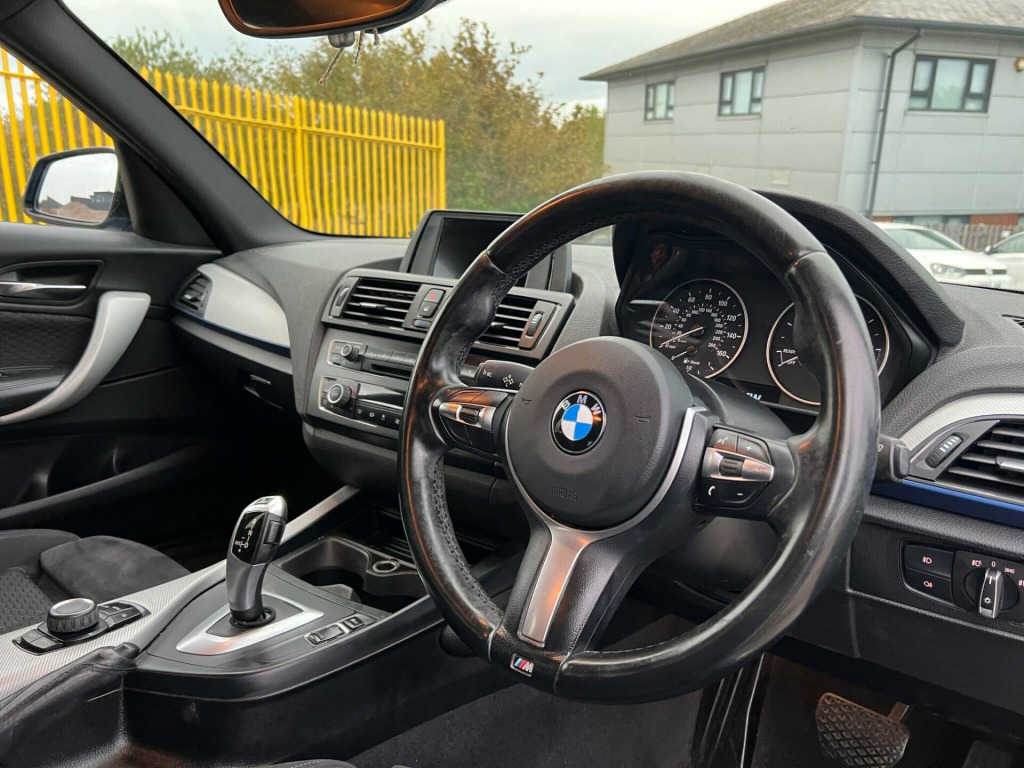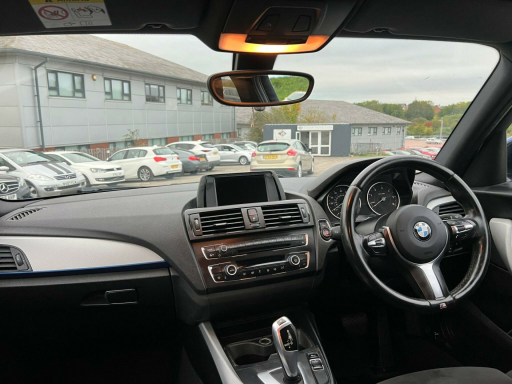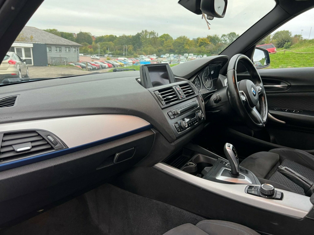 This 2014 BMW 1 Series 120d M Sport is a well maintained example, having had only two owners since new. It features the sporty M Sport trim and is powered by an efficient 2.0 litre diesel engine. For your convenience, it comes equipped with enhanced Bluetooth telephone preparation and a USB audio interface, allowing for seamless connectivity. The automatic activation of headlights ensures you always have optimal visibility, while the dual zone climate control provides individual comfort for both driver and passenger. Additionally, the sun protection glazing offers a more comfortable interior environment.Experience impressive performance with this BMW 1 Series, boasting an acceleration of 0 to 62 miles per hour in just 7.3 seconds, demonstrating its dynamic capabilities. The generous boot space offers practicality for all your needs, making it a versatile choice. These features, combined with its low owner count and efficient diesel engine, set this 120d M Sport apart from other vehicles in its class. hanced bluetooth telephone preparation with usb audio interface, sun protection package, sun protection glazing, windscreen with grey shade band, bmw emergency call, bmw teleservices, hexagon cloth-alcantara - anthracite with black interior, 12v power socket - centre console, 12v power socket - passenger footwell, 18in alloy wheels - light m star spoke - 386m, 6.5in colour display screen, abs - anti lock braking system, asc - automatic stability control, active differential brake, air conditioning - automatic - dual zone control, air microfilter, airbags - curtain, airbags - driver, airbags - front side, airbags - passenger, airbags - passenger deactivation, alarm system thatcham 1 with remote control, ambiance lighting - switchable, armrest - front and rear integrated into door trim, armrest - front with sliding adjustment, auxiliary input, bmw professional radio - single cd and mp3, belt force limiters - front, bluetooth hands free with usb audio interface, brake assist, brake drying, brake pad wear indicator - front and rear, bumpers - body colour, cbc - cornering brake control, central locking - remote, child proof locking system - rear doors, child seat isofix attachment - rear x2, comfort go keyless engine start, crash sensor - activating central locking-hazard warning lights-fuel cut off, cup holders, dab digital radio, dbc - dynamic brake control, dsc - dynamic stability control plus, dtc - dynamic traction control, daytime running lights, door handles - body colour, door mirrors - body coloured housing, door mirrors - electric and heated, door sill finishers - m designation, drive performance control - eco pro - comfort - sport - sport plus, dynamic brake lights, electric windows - front and rear with open-close fingertip control, exterior trim - high-gloss shadowline, first aid kit, floor mats - velour, follow me home headlight function, front fog lights, gearshift lever with m designation, grab handles - in roof lining x4, halogen headlights, handbrake lever - gear lever knob and gaiters in leather, head restraints - rear and folding, headlights - automatic activation, headlining - anthracite, heat protection glazing with green tint, heated windscreen washer jets, high level third brake light, hill start assist, interior lighting, interior trim - aluminium hexagon, kidney grille - chrome extra-wide high-gloss black vertical slats, lights-on warning, locking wheel bolts, luggage compartment - lashing eyes x2, m aerodynamic bodystyling, m sport package, m sport suspension, mobility tyre sealing system, multifunction controls for steering wheel, non smokers package, obc - on-board computer, power steering - electric, pyrotechnic belt tensioners - front, rain sensor, rear window wiper, run flat tyres, seats - 60-40 split folding rear, side impact protection, sport seats - front, steering column with manual reach and rake adjustment, steering wheel - m sport leather multifunction, storage compartment - rear centre console, sun visors with vanity mirrors and ticket holder, tpws - tyre pressure warning system, trim finisher - estoril blue - matt, tyres - reduced rolling resistance