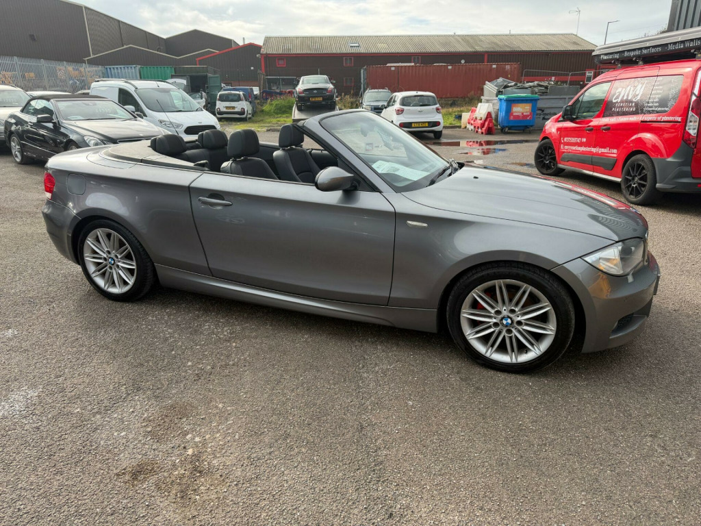 Nationwide Delivery Available . 2008 58 Registered BMW 12DD 2.0D M-SPORT CABRIOLET in a Stunning Hologram Grey . As you can see the cars a Fantastic Example and is a Credit to its Previous Keeper whos owned the car since 2021 .As you can see the car has a Superb and Still Very Shiny Bodywork as well as a Nice Clean Heated Leather Interior ( Valeted Pictures ) And Just as you would Expect from a Well Maintained BMW it Runs and Drives Superbly and with this being the 120D M-SPORT it comes with its Fantastic Looks and Specification and also comes with a Nice amount of Factory Extras . Comes with a Service History and MOT until APRIL 2026 .Any PX welcome . Viewings and Test Drives are also welcome and im sure the first to drive will buy . Amazing looking car for very little money . We will take anything as a Part Exchange , Whether it be a Car , Bike , Pushbike , Jewellery or watch etc . We have over 60 cars in stock . For more info please call on 07407 682036 .. 17in M Light alloy Double Spoke Wheels- Style 207, Air Conditioning - Automatic with Two-Zone Control, Alarm System Thatcham 1 with Remote Control, Aluminium glacier Silver Interior Trim, BMW Assist, BMW Business Radio with single CD player, BMW Online services, Brushed Aluminium Interior Trim, Bumpers - Body Colour, Child Seat ISOFIX Attachment - Rear x2, Chrome line Exterior, Delete M Sports suspension, Delete smokers Pack, Electric power Steering, Extended Lighting, Front Fog Lights, Halogen Headlights, High gloss shadow line, M Aerodynamic Bodystyling, M Sport Package, M Sports suspension, Manual Front Seats with height adjustment, Model designation deletion, Multifunction Controls for Steering Wheel, Rear Parking distance Control, Smokers Pack, Soft top- Beige, Soft top- Black, Sport Seats - Front, Voice Control System when with Bluetooth interface, Comfort access System, Heated Front Seats, Wind deflector, Front&Rear Parking distance Control, Seats - Front 4-Way Electric Lumbar Support, Folding door mirrors, BMW Professional Radio with CD player, Automatically Dimming Rear View Mirror, Armrest - Front with Sliding Adjustment, Soft top- Anthracite Silver fleck, Windscreen with Grey Shade Band, Cloth- Flashpoint & sensatec- Black. Part service history