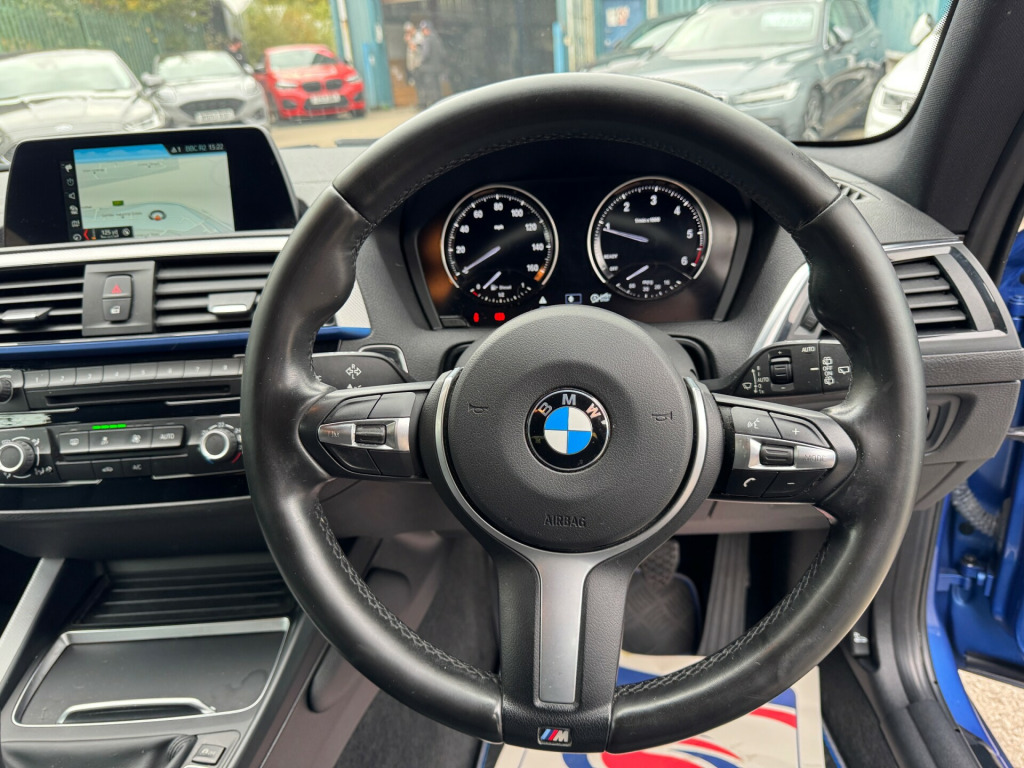 This 2017 BMW 1 Series 2.0 120d M Sport Hatchback 3dr Diesel Manual Euro 6 (s/s) (190 ps) is a stylish and efficient car with a mileage of 69418 miles. It features a sleek Hatchback design with 3 doors and 5 spacious seats, making it perfect for daily use or long journeys. This car is powered by a Diesel engine and is ULEZ compliant, ensuring lower emissions and environmental impact. Its MOT expires on 07/09/2026, providing peace of mind for the future. The Estoril Blue exterior is complemented by the Hexagon Cloth-Alcantara interior in Anthracite with Black accents. Enhanced Bluetooth Telephone Preparation with USB Audio Interface and Voice Control adds convenience, while 12V Power Sockets in the centre console and passenger footwell ensure that you can stay connected and powered up on the go. With its sleek design, efficient engine, and modern features, this BMW 1 Series is a great choice for anyone in need of a reliable and stylish vehicle.UK delivery available.Part exchange welcome.AA extended warranty partner.AA standards approved dealership.Trading standards approved dealership.Autotrader highly rated dealership. v power socket - centre console, 12v power socket - passenger footwell, bmw connecteddrive online services, bmw connecteddrive services, bmw emergency call, bmw navigation system, bmw professional radio - single cd and mp3, bmw teleservices, bluetooth hands free with usb audio interface, dab digital radio, real time traffic information, rear window aerial, shark fin, 18in alloy wheels - m double spoke in ferric grey - 461m, direction indicator - side repeaters - integrated in exterior mirrors, direction indicator lights - clear lenses, electric windows - front with open-close fingertip control - anti-trap facility and comfort closing function, exhaust tailpipe - chrome, exterior mirrors electrically adjustable, exterior parts in body colour, exterior trim - high gloss shadowline, heat protection glazing with green tint, kidney grille - extra wide high gloss black vertical slats, locking wheel bolts, m aerodynamic bodystyling, m logo designation chrome - side, m sport package, model designation, rear fog light - offside, reversing light in rear cluster - nearside, run flat tyres, tyres - reduced rolling resistance, active differential brake - adb sport - electronic differential lock in dsc-off mode, airbags, alarm system - thatcham 1 with remote control and engine immobiliser, battery safety cut off, bumper system front and rear - replaceable deformation elements for impacts up to 9mph, child seat isofix attachment for the two outer rear seats, crash sensor - activating central locking release - hazard warning lights - battery safety cut off - interior lighting, dsc - dynamic stability control plus, dynamic brake lights, first aid kit and warning triangle, incorrect fuelling protection system, remote control including integrated key - 2, remote control with integrated key with insert in blue, seat belt security check for driver and front passenger, side impact protection, speed limit function, three-point seat belts - all seats, visible vin, windscreen wiper - rear, air conditioning - automatic - single zone, ambient lighting - switchable bmw classic orange - cold white - led, armrest - front with sliding adjustment, central locking switch - doors - fuel filler cap - luggage compartment, cupholders two with sliding cover and inlay mat, door sill finishers - m designation, extended storage, floor mats - velour, gearshift lever with m designation - short-shift, glove compartment, glovebox - handle with chrome surround, grab handles - integrated in roof linings - two, handbrake and gear knob - leather, head restraints - rear and folding, headlining - anthracite, instrument cluster - sports with red highlight, interior lighting - front centre over interior mirror and rear centre, interior trim - aluminium hexagon with estoril blue finisher, lashing eyes in luggage compartment at sill x2, luggage compartment - light, luggage compartment access via bmw roundel, m sport multi-function leather steering wheel - three-spoke, multifunction controls for steering wheel, non smokers package, personal profile, rain sensor with automatic headlight activation, rear seat headrests - outer headrests folding, seats - 60-40 split folding rear, side armrests - front and rear integrated into door trim, sport seats - front, start-stop button with comfort go keyless engine start and auto start-stop deactivation button, steering-wheel column adjustment - manual, storage compartment - rear centre console and in door trim - front, sun visors with vanity mirrors and ticket holder, twin horns, welcome lighting - led, battery age recognition function, brake pad wear indicator - front and rear, condition based service, drive performance control - eco pro - comfort - sport - sport plus modes, eco pro mode, m sport suspension, obc - on-board computer, oil temperature display via on-board computer shown in central screen in instrument cluster, optimum shift indicator, power steering - electric, servotronic steering, tpms - tyre pressure monitoring system, check control warning system for monitoring of lights and door-luggage compartment open warning, high level third brake light, led fog lights - front, led headlights, lights-on warning by audio warning signal when ignition is switched off