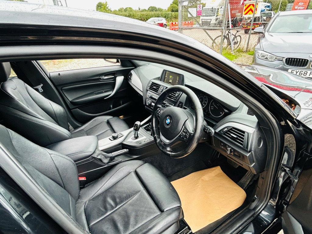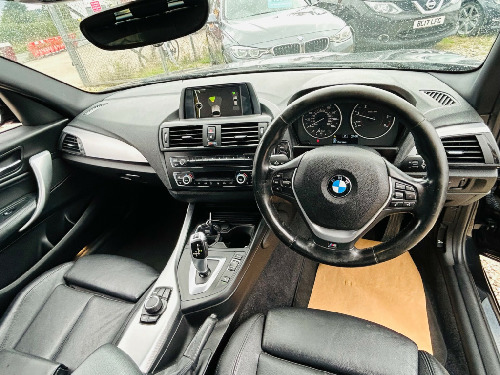 BMW 120D MSport Auto- Has covered 96k with service history- Can be supplied with 12 months Mot- Great spec heated seats Dab - Part Exchange Welcome - Finance Available v power socket - centre console, 12v power socket - passenger footwell, 6.5in colour display screen, auxiliary input, bmw online services, bmw professional radio - single cd and mp3, bmw teleservices, bluetooth hands free with usb audio interface, dab digital radio, 18in alloy wheels - light m star spoke - 386m, bumpers - body colour, door handles - body colour, door mirrors - body coloured housing, door mirrors - electric and heated, electric windows - front and rear with open-close fingertip control, exterior trim - high-gloss shadowline, heat protection glazing with green tint, heated windscreen washer jets, kidney grille - chrome extra-wide high-gloss black vertical slats, locking wheel bolts, m aerodynamic bodystyling, m sport package, mobility tyre sealing system, rear window wiper, run flat tyres, tyres - reduced rolling resistance, abs - anti lock braking system, asc - automatic stability control, airbags - curtain, airbags - driver, airbags - front side, airbags - passenger, airbags - passenger deactivation, alarm system thatcham 1 with remote control, belt force limiters - front, brake assist, brake drying, cbc - cornering brake control, central locking - remote, child proof locking system - rear doors, child seat isofix attachment - rear x2, crash sensor - activating central locking-hazard warning lights-fuel cut off, dbc - dynamic brake control, dsc - dynamic stability control plus, dtc - dynamic traction control, dynamic brake lights, first aid kit, hill start assist, pyrotechnic belt tensioners - front, side impact protection, active differential brake, brake pad wear indicator - front and rear, drive performance control - eco pro - comfort - sport - sport plus, lights-on warning, m sport suspension, obc - on-board computer, power steering - electric, tpws - tyre pressure warning system, air conditioning - automatic - dual zone control, ambiance lighting - switchable, armrest - front and rear integrated into door trim, armrest - front with sliding adjustment, comfort go keyless engine start, cup holders, door sill finishers - m designation, floor mats - velour, gearshift lever with m designation, grab handles - in roof lining x4, handbrake lever - gear lever knob and gaiters in leather, head restraints - rear and folding, headlining - anthracite, interior lighting, interior trim - aluminium hexagon, luggage compartment - lashing eyes x2, multifunction controls for steering wheel, non smokers package, rain sensor, seats - 60-40 split folding rear, sport seats - front, steering column with manual reach and rake adjustment, steering wheel - m sport leather multifunction, storage compartment - rear centre console, sun visors with vanity mirrors and ticket holder, trim finisher - estoril blue - matt, daytime running lights, follow me home headlight function, front fog lights, halogen headlights, headlights - automatic activation, high level third brake light