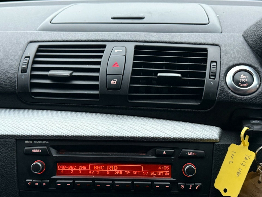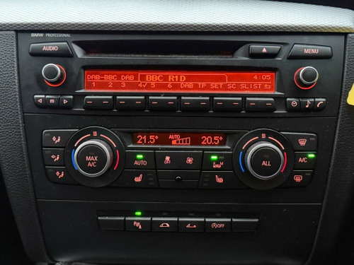 BMW 120d m sport plus in good condition for its age looks and drives as it should perfect car for summer very economical any trials and px welcome call now to book your test drive long mot 18 inch alloys full heated leathers parking sensors climate control call now to book your test drive or FREE HOME DELIVERY up to 50 miles nationwide also available we are open 7 days and all our cars come with warranty's options call for further info, mfort package, seats - front heated, pdc - park distance control - front and rear, extended storage, rain sensor with automatic headlight activation, telephone usb audio interface, boston leather - black with royal blue stitching, 12v power socket - rear of centre console, 18in alloy wheels - light m double spoke - 313m, abs - anti lock braking system, asc - automatic stability control, air conditioning - automatic with two-zone control, air microfilter, airbags - driver, airbags - driver and front passenger head, airbags - driver and front passenger side, airbags - impact dependent system for driver and front passenger, airbags - passenger, alarm system thatcham 1 with remote control, armrest - front centre, automatically dimming rear view mirror, auxiliary input, bmw online services, bmw professional radio - single cd and mp3, bmw teleservices, battery in luggage compartment, bluetooth hands free facility, brake force display, bumpers - body colour, cbc - cornering brake control, central locking switch, child seat isofix attachment - front and rear, courtesy lights - front and rear with soft on-off dimming, crash sensor, crash sensor - activating central locking-hazard warning lights-fuel cut off, dbc - dynamic brake control, dde - digital diesel electronics, dsc - dynamic stability control - stabilises the vehicle in extreme situations - controls traction, dtc - dynamic traction control, dark line rear lights, deformation zones - front and rear, door handles - body colour, door mirrors - black housing, door mirrors - electric and heated, door sill finishers - bmw edition designation, ebd - electronic brake-force distribution, electric windows - front, engine immobiliser, enhanced bluetooth hands-free functionality with usb audio interface, exhaust tailpipe - single-chrome, extended lighting, exterior parts in body colour - bumpers - door handles - mirror caps - roof mouldings, exterior trim - high-gloss shadowline, first aid kit, floor mats - velour, footwell lights - front, front fog lights, front and rear soft lights, fuel cut-off and interior light, handbrake lever - gear lever knob and gaiters in leather, head restraints - rear - adjustable and removable, heated windscreen washer jets, high level third brake light, incorrect fuelling protection system, intelligent alternator control, interior trim - fineline anthracite wood, kidney grille - chrome with black vertical slats, lights-on warning, luggage compartment - strap for small items, m aerodynamic bodystyling, m sport suspension, multifunction controls for steering wheel, obc - on-board computer, obd - on board diagnosis, pdc - park distance control - rear, personal profile, power steering - electric, puddle lights in exterior door handles, reading lights - front and rear, rear seat easy access system, remote control locking, rollover protection system, run flat tyres, seats - front - manual height adjustment, securing rings in luggage compartment x4, side impact protection, side sills - body colour, smokers package, soft-top - black, sport seats - front, steering column with manual reach and rake adjustment, steering wheel - m sport leather multifunction, storage tray in rear seat support, sun visors with illuminated vanity mirrors, tpws - tyre pressure warning system, tool kit located in luggage compartment, trim - aluminium glacier silver, usb audio interface, windscreen wipers with adjustable intermittent intervals