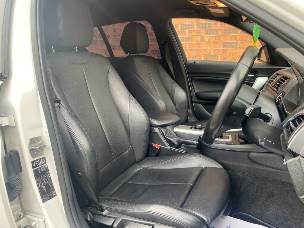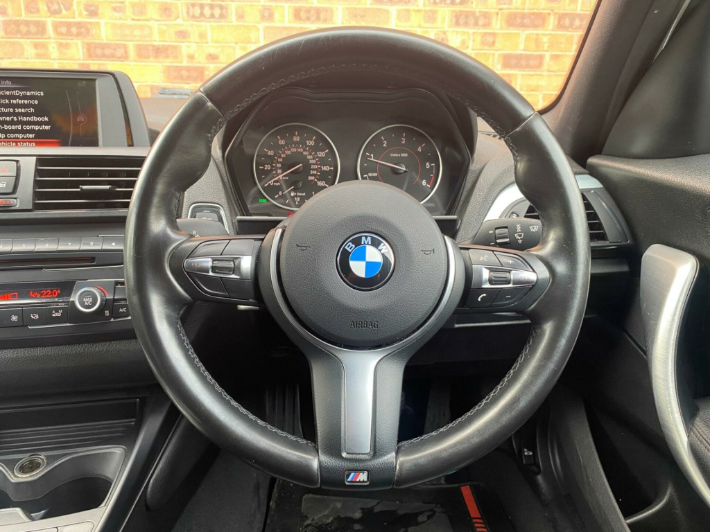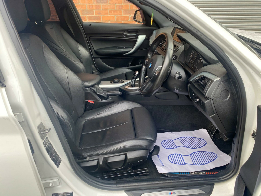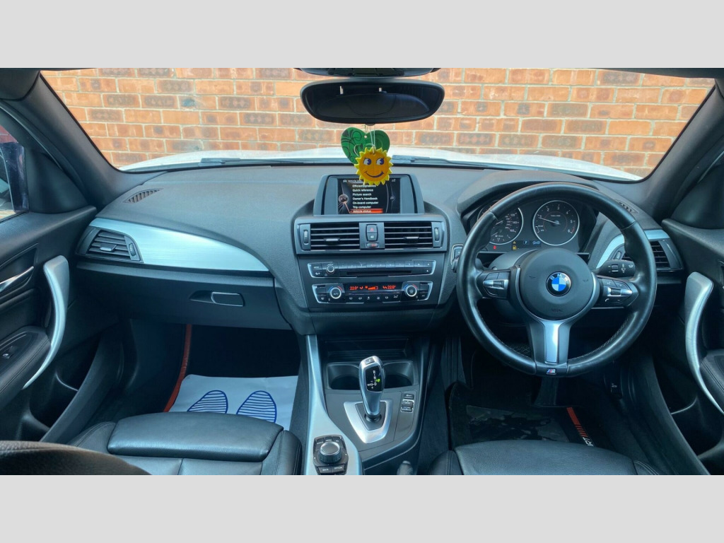 3 FORMER KEEPERS, 2 KEYS, SERVICE INTERVALS AT 21K, 33K,42K.M SPORT WING MIRRORSM SPORT BUMPER+spoilerGOOD EXAMPLE OF A CLEAN CAR.This 2015 BMW 1 Series 125d M Sport presents an exceptional opportunity with its remarkably low mileage of just 66,006 miles for its age, complemented by a clear vehicle history check. This M Sport variant boasts a powerful 2.0L diesel engine, delivering impressive performance with a 0-62mph acceleration time of only 6.5 seconds. Inside, you'll find the luxurious Dakota Leather in Black with a matching Black Interior, enhancing the premium feel. Practicality is also a strong point, with large boot space perfect for your needs, and the convenience of automatic dual zone climate control and rain sensor with automatic headlight activation.The dual exhaust with chrome finisher adds a touch of sporty refinement to the exterior. These carefully selected features, combined with the dynamic driving experience offered by the 125d M Sport, demonstrate how this particular BMW 1 Series stands out from others. Its combination of performance, comfort, and practicality makes it a compelling choice for anyone seeking a well equipped and engaging hatchback. v power socket - centre console, 12v power socket - passenger footwell, 18in alloy wheels - light m star spoke - 386m, 6.5in colour display screen, abs - anti lock braking system, adb sport - active differential brake, asc - automatic stability control, air conditioning - automatic - dual zone, airbags - curtain head protection system, airbags - driver, airbags - front side, airbags - passenger, airbags - passenger deactivation, alarm system thatcham 1 with remote control, ambient lighting - switchable, armrest - front and rear integrated into door trim, armrest - front with sliding adjustment, auxiliary input, bmw professional radio - single cd and mp3, battery safety cut off, bluetooth hands free with usb audio interface, brake assist, brake drying, brake pad wear indicator, bumpers - body colour, cbc - cornering brake control, central locking - remote, check control warning system, child proof locking system - rear doors, child seat isofix attachment - rear, crash sensor - activating central locking-hazard warning lights-fuel cut off, cup holders x2, dab digital radio, dbc - dynamic brake control, dsc - dynamic stability control plus, dtc - dynamic traction control, daytime running lights, door handles - body colour, door mirrors - body coloured, door mirrors - electric and heated, door sill finishers - m designation, drive performance control with eco pro - comfort and sport modes, dynamic brake lights, electric windows - front and rear with open-close fingertip control, engine immobiliser, exhaust - dual with chrome finisher, exterior trim - high-gloss shadowline, first aid kit, floor mats - velour, follow me home headlight function, front fog lights, gear knob - leather, grab handles - integrated in roof lining x4, halogen headlights, handbrake - leather, head restraints - rear and folding, headlights - automatic activation, headlights - beam throw control, headlining - anthracite, heat protection glazing with green tint, heated windscreen washer jets, high level third brake light, hill start assist, incorrect fuelling protection system, interior lighting - front and rear centre, interior trim - aluminium hexagon, kidney grille - chrome with black vertical slats, kidney grille - extra wide high gloss black vertical slats, lights-on audio warning, locking wheel bolts, luggage compartment - lashing eyes, m aerodynamic bodystyling, m sport package, multifunction controls for steering wheel, obc - on-board computer, personal profile, power steering - electric, rain sensor with automatic headlight activation, roof mouldings - body colour, run flat tyres, seats - driver manual adjustment, seats - passenger manual adjustment, seats - split rear 60-40, seats - third rear, shark fin aerial, side impact protection, smokers package deletion, speakers x6, sport seats - front, start-stop button with comfort go keyless engine start, steering column with manual reach and rake adjustment, steering wheel - leather - m sport, storage compartment in rear centre console, sun visors with illuminated vanity mirrors and ticket pocket, suspension - m sport, tpms - tyre pressure monitoring system, trim finisher - estoril blue - matt, warning triangle, welcome lighting, enhanced bluetooth telephone preparation with usb audio interface, bmw emergency call, bmw teleservices, interior trim - brushed aluminium, interior trim finisher - black high gloss, dakota leather - black with black interior