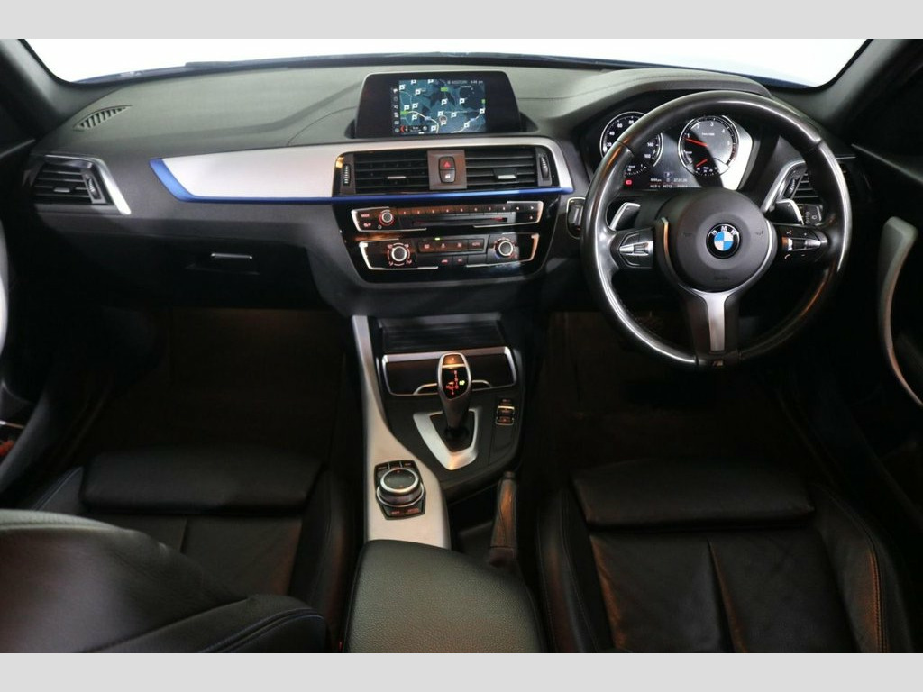 This well maintained Automatic BMW 125d M Sport finished in Estoril Blue looks fantastic complemented by 18 inch Ferric Grey Alloy Wheels, M Sport Body Styling, LED Headlights, Rear Privacy Glass and M PERFORMANCE Body Kit. Find your way with integrated SATELLITE NAVIGATION. Sit in luxury with FULL LEATHER Upholstery. Keep connected with BLUETOOTH Phone system with USB port. Listen to your music through DAB Digital Radio. Comfortable to drive with Auto CLIMATE CONTROLLED AIR CONDITIONING and Speed Limiting Function. Well equipped with Auto Headlights and Rain-Activated Wipers. Also fitted with ISOFIX seats, Multifunctional Steering Wheel, Drive Performance Control, Alarm and Remote Door Locking. Buy in confidence with FULL SERVICE HISTORY with 8 x Documented Services. M Performance Body Kit, BMW Navigation System, Dakota Leather - Black with Blue Highlig, Bluetooth Hands Free with USB Audio Inte, DAB Digital Radio, Air Conditioning - Automatic - Single Zo, Speed Limit Function, 18in Alloy Wheels - M Double Spoke in Fe, Estoril Blue, M Aerodynamic Bodystyling, LED Headlights, Rain Sensor with Automatic Headlight Act, Ambient Lighting - Switchable BMW Classi, Steering Wheel - M Sport Leather Multifu, Drive Performance Control with ECO PRO -, Multifunction Controls for Steering Whee, Child Seat ISOFIX Attachment for the Two, Alarm System - Thatcham 1 with Remote Co, Remote Control Including Integrated Key , 12V Power Socket - Centre Console, 12V Power Socket