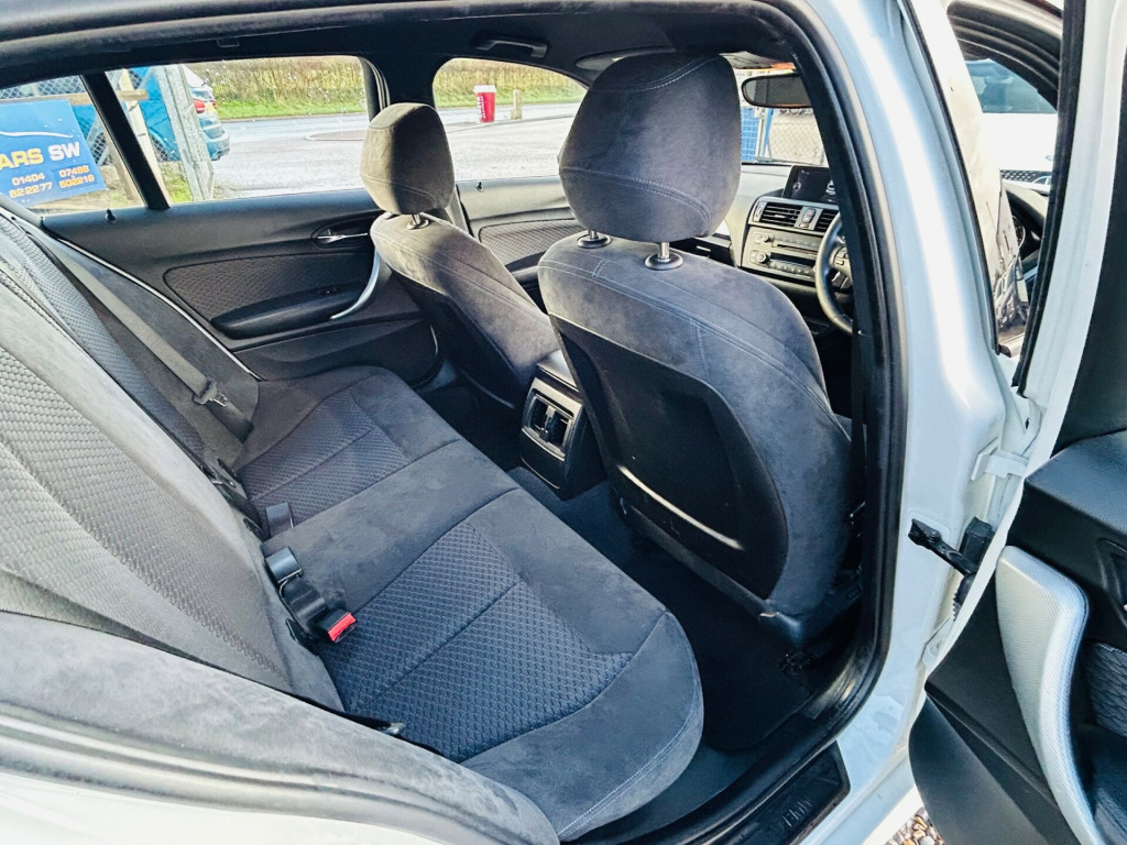BMW 125D M Sport - Low mileage at just 78k with history - Mot November - Heated seats- Part Exchange Welcome - Finance Available v power socket - centre console, 12v power socket - passenger footwell, 6.5in colour display screen, auxiliary input, bmw professional radio - single cd and mp3, bluetooth hands free with usb audio interface, dab digital radio, 18in alloy wheels - light m star spoke - 386m, bumpers - body colour, door handles - body colour, door mirrors - body coloured housing, door mirrors - electric and heated, electric windows - front and rear with open-close fingertip control, exterior trim - high-gloss shadowline, heat protection glazing with green tint, heated windscreen washer jets, kidney grille - chrome extra-wide high-gloss black vertical slats, locking wheel bolts, m aerodynamic bodystyling, m sport package, mobility tyre sealing system, rear window wiper, run flat tyres, tyres - reduced rolling resistance, abs - anti lock braking system, asc - automatic stability control, airbags - curtain, airbags - driver, airbags - front side, airbags - passenger, airbags - passenger deactivation, alarm system thatcham 1 with remote control, belt force limiters - front, brake assist, brake drying, cbc - cornering brake control, central locking - remote, child proof locking system - rear doors, child seat isofix attachment - rear x2, crash sensor - activating central locking-hazard warning lights-fuel cut off, dbc - dynamic brake control, dsc - dynamic stability control plus, dtc - dynamic traction control, dynamic brake lights, first aid kit, hill start assist, pyrotechnic belt tensioners - front, side impact protection, active differential brake, brake pad wear indicator - front and rear, drive performance control - eco pro - comfort - sport - sport plus, lights-on warning, m sport suspension, obc - on-board computer, power steering - electric, tpws - tyre pressure warning system, air conditioning - automatic - dual zone control, air microfilter, ambiance lighting - switchable, armrest - front and rear integrated into door trim, armrest - front with sliding adjustment, comfort go keyless engine start, cup holders, door sill finishers - m designation, floor mats - velour, gearshift lever with m designation, grab handles - in roof lining x4, handbrake lever - gear lever knob and gaiters in leather, head restraints - rear and folding, headlining - anthracite, interior lighting, interior trim - aluminium hexagon, luggage compartment - lashing eyes x2, multifunction controls for steering wheel, non smokers package, rain sensor, seats - 60-40 split folding rear, seats - third rear, sport seats - front, steering column with manual reach and rake adjustment, steering wheel - m sport leather multifunction, storage compartment - rear centre console, sun visors with vanity mirrors and ticket holder, trim finisher - estoril blue - matt, daytime running lights, follow me home headlight function, front fog lights, halogen headlights, headlights - automatic activation, high level third brake light