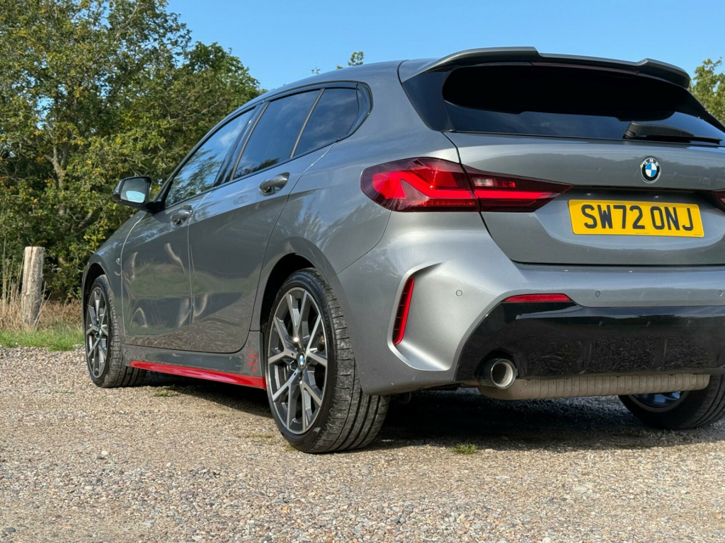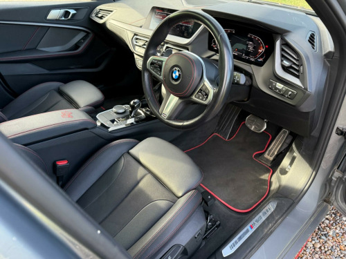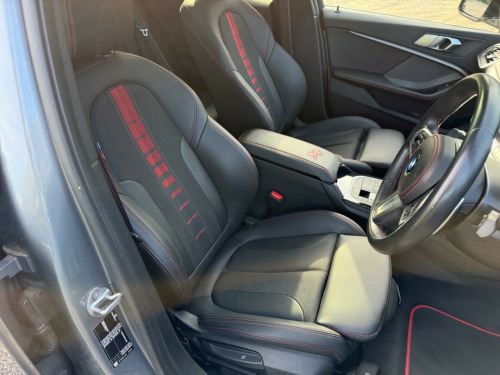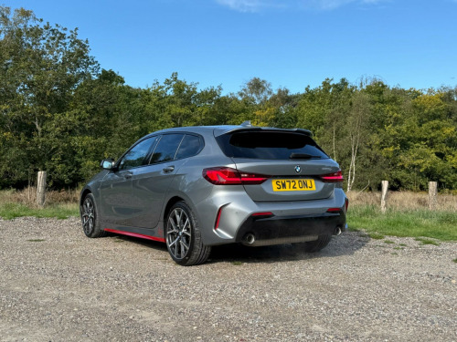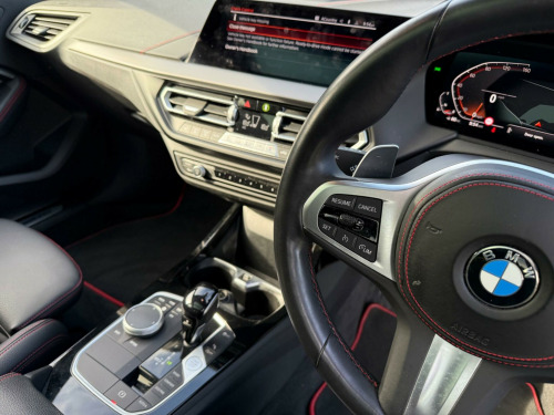 This 2022 BMW 1 Series 128ti (LCP) presents an exceptional ownership proposition, having been meticulously maintained by a single owner and boasting a remarkably low mileage of just 16,000 miles. Powered by a responsive 2.0L petrol engine, this Euro 6 compliant model offers an exhilarating 0-62mph acceleration in a swift 6.1 seconds. Inside, you'll find a host of premium features designed to enhance your driving experience, including a stunning Panoramic Glass Sunroof, the immersive Harman Kardon Surround Audio Sound System, and the advanced BMW Live Cockpit Professional with seamless Bluetooth audio streaming. The convenience of a Rain Sensor with Automatic Headlight Activation further adds to the sophisticated feel of this well appointed vehicle.Beyond its impressive performance and technology, this BMW 1 Series excels in practicality, offering generous boot space for all your needs. The combination of its low mileage, single owner history, and clear vehicle history check signifies a vehicle that has been cherished and well cared for, setting it apart from others on the market. The rapid acceleration highlights its dynamic capabilities, while the inclusion of features like the premium sound system and opening sunroof demonstrate a commitment to comfort and enjoyment, making this 128ti a truly desirable package. noramic glass sunroof, harman kardon surround audio sound system, sun protection glazing, 18in alloy wheels - m light y spoke - m bicolour with performance tyres - 553, nivala cloth-sensatec - anthracite with red highlight, 12v power socket in centre console front with blanking plug, 18in alloy wheels - light y spoke - m bicolour - 553, active guard plus, air conditioning automatic with two-zone control, air inlets at the front left-right with highlights clasp in red, airbags, alarm system - thatcham 1 with remote control and engine immobiliser, armrest - front - folding with storage compartment, attentiveness assistant, automatically dimming rear view mirror, bmw connected package professional, bmw connecteddrive online services, bmw emergency call, bmw individual high-gloss shadowline with extended contents, bmw live cockpit professional, bmw mobility tyre sealing system, bmw teleservices, bluetooth - audio streaming - with compatible devices, bluetooth hands free with usb audio interface, bumper system front and rear - replaceable deformation elements for impacts up to 9mph, central locking switch - doors - fuel filler cap - luggage compartment, check control warning system for monitoring of lights and door-luggage compartment open warning, child seat isofix attachment for the two outer rear seats and front passenger seat, childproof locking system - rear doors and electric windows, contrast stitching - instrument panel, crash sensor, cruise control with brake function and speed limiter, cupholders - two front centre console, dab digital radio, dsc - dynamic stability control plus, dead-locking function system to all doors, differentiated side design including - ti - foilwrap finish in red, direction indicator side lights integrated in exterior mirrors, door sill finishers in black plastic with inserted m designation in metallic look - front only, drive performance control with eco pro and comfort modes, drive-away locking system on all doors-luggage compartment - can be de-activated in idrive settings, eco pro mode, eps - electric power steering, electric handbrake, electric windows - front and rear with open-close fingertip control - trap release and child lock function, exhaust tailpipe - chrome - single round 90mm - left, extended lighting, extended storage, exterior mirrors - electrically folding with anti dazzle, exterior parts in body colour, exterior trim - high gloss shadowline, first aid kit and warning triangle, front windscreen wipers with integrated washer jets, glove box with light, grab handles - integrated in roof linings - four, headlining - anthracite, heat protection glazing with green tint, high level third brake light, illuminated boston interior trim, integrated owners handbook - within idrive menu, interior lighting, led headlights, launch control, locking wheel bolts, luggage compartment package, m logo designation chrome - side, m rear spoiler, m seat belts, m sport aerodynamic package, m sport brakes with red calipers, m sport multi-function leather steering wheel with three-spoke design with unique red stitch, m sport suspension, model designation on electric bootlid, multifunction controls for steering wheel, obc - on-board computer, oil sensor for level and grade, optimum shift indicator, pdc - park distance control - front and rear, performance control, personal profile, preparation for high-beam assistant, rain sensor with automatic headlight activation, rear fog light, rear seat backrest with manual 60-40 split folding with 3 top tether clips integrated on rear of seat panels, rear seat headrests - three, rear window wiper, remote control key x2, reversing light in rear light clusters, seat belt security check for driver and front passenger, seat belt warning if driver starts ignition without putting on seatbelt, seat heating for driver and front passenger, servotronic steering, shark fin, side armrests - front and rear integrated into door trim, side impact protection, sport seats - front, start-stop button - illuminated in centre console with keyless engine start and auto start-stop deactivation button, steering column with manual reach and rake adjustment, steering wheel - gearshift paddles, stereo speaker system, storage features, sun visors with vanity mirrors and insert tab, tpms - tyre pressure monitoring system, three-point seat belts - all seats, two tone horn, tyres - reduced rolling resistance, visible vin, welcome light