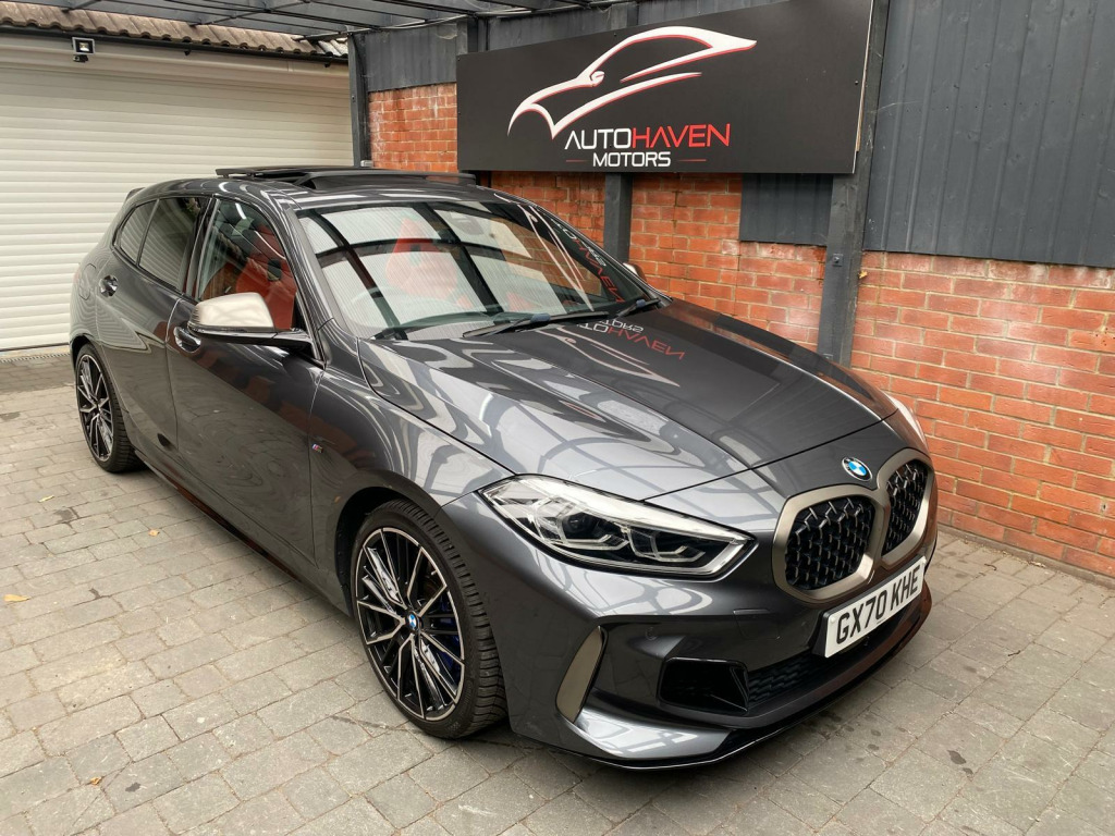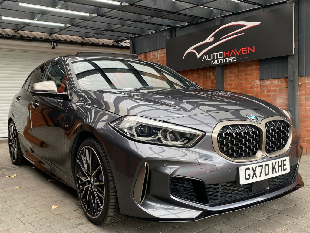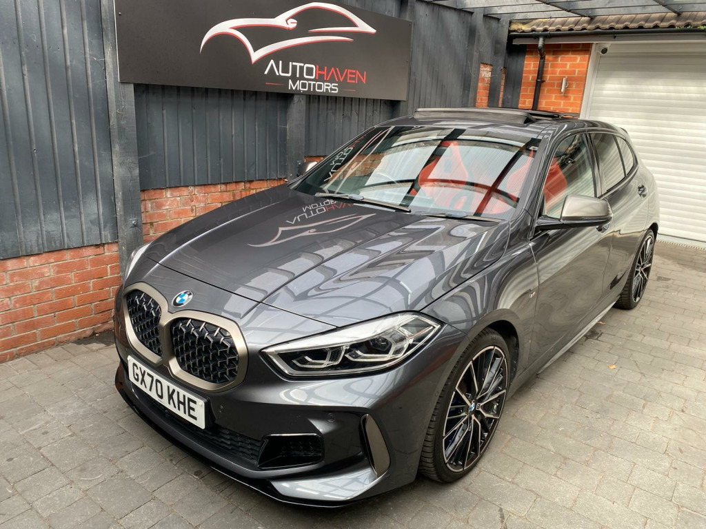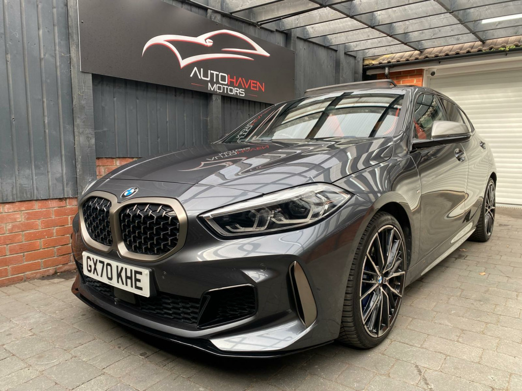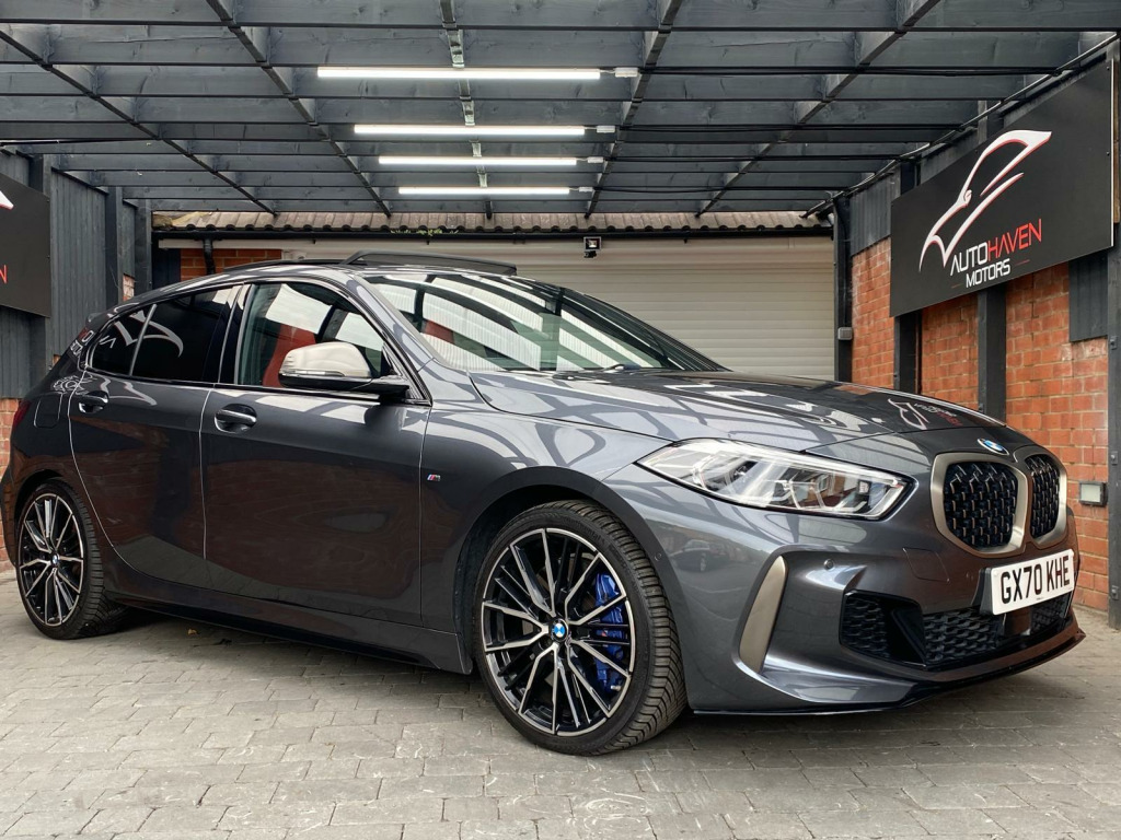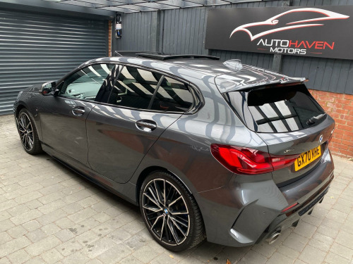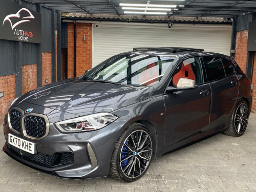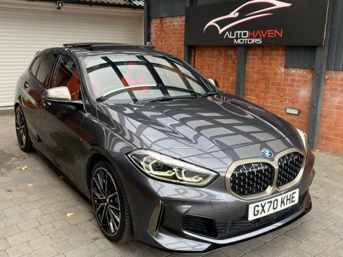 Autohaven Motors Limited are delighted to be offering a stunning 2020 (70 Plate) BMW 1 Series 2.0 M135i Auto xDrive Euro 6 (s/s) 5dr. THIS IS A 2 OWNER CAR FROM NEW and has covered only 39,000 miles and comes with a FULL BMW SERVICE HISTORY and comes with an MOT till July 2026. **FINANCE OPTIONS AVAILABLE** The car drives perfect and comes in the desirable colour of Grey Metallic with Perforated Dakota Leather - Magma Red with Grey Highlight leather seats. HUGE SPEC INCLUDES; WIRELESS CHARGING, HEADS-UP DISPLAY, HARMON KARDEN SOUND SYSTEM, PARK ASSISTANT, 19'' ALLOYS, PANARAMIC GLASS SUNROOF, PRIVACY GLASS, AUTOMATIC TAILGATE, COMFORT PACK, LUMBAR SUPPORT, ELECTRIC SEATS, HEATED SEATS AND STEERING WHEEL, M 135i plus pack, Tech Pack, BMW ADAPTIVE LED HEADLIGHTS, COMFORT ACCESS SYSTEM. This is a lovely example. HPI CLEAR, Comes with 2 KEYS all the manuals and brand new Continental Tyres fitted. FINANCE OPTIONS AVAILABLE SO DO CALL US. PART EXCHANGE ALSO CONSIDERED . OUR CARS ARE READY TO BE DRIVEN AWAY SAME DAY. Please call for more info. VIEWING BY APPOINTMENT ONLY. AVAILABLE MONDAY- SUNDAY 9AM TILL LATE. **PRICED VERY COMPETITIVELY** FINANCE AVAILABLE+NATIONWIDE DELIVERY AVAILABLE.EXTENDED WARRANTY AVAILABLE. mfort pack ii, m135i plus pack, tech pack i, panoramic glass sunroof, head-up display, loudspeaker system - harman kardon, seat adjustment - front electric with driver memory, automatic tailgate, bmw adaptive led headlights, comfort access system, enhanced bluetooth with wireless charging, park assistant, sun protection glazing, luggage compartment separating net, lumbar support - driver and front passenger, steering wheel - heated, through-loading system, 19in alloy wheels - m double-spoke style 552 - bi-colour, perforated dakota leather - magma red with grey highlight, 12v power socket in centre console front with blanking plug, 18in alloy wheels - m double-spoke style 556 - bi-colour, active guard plus, air conditioning automatic with two-zone control, airbags, alarm system - thatcham 1 with remote control and engine immobiliser, armrest - front - folding with storage compartment, attentiveness assistant, automatically dimming rear view mirror, bmw connected package professional, bmw connecteddrive online services, bmw emergency call, bmw live cockpit professional, bmw mobility tyre sealing system, bmw teleservices, bluetooth - audio streaming - with compatible devices, bluetooth hands free with usb audio interface, bumper system front and rear - replaceable deformation elements for impacts up to 9mph, central locking switch - doors - fuel filler cap - luggage compartment, check control warning system for monitoring of lights and door-luggage compartment open warning, child seat isofix attachment for the two outer rear seats and front passenger seat, childproof locking system - rear doors and electric windows, condition based service, contrast stitching - instrument panel, crash sensor, cruise control with brake function and speed limiter, cupholders - two front centre console, dab digital radio, dsc - dynamic stability control plus, dead-locking function system to all doors, direction indicator side lights integrated in exterior mirrors, door sill finishers with m135i designation - front only, drive performance control with eco pro and comfort modes, drive-away locking system on all doors-luggage compartment - can be de-activated in idrive settings, eco pro mode, eps - electric power steering, electric handbrake, electric windows - front and rear with open-close fingertip control - trap release and child lock function, exhaust system with tailpipe 100mm - cerium grey - twin - round - left and right split, extended lighting, extended storage, exterior mirrors - electrically folding with anti dazzle, exterior parts in body colour, exterior trim - high gloss shadowline, first aid kit and warning triangle, floor mats in anthracite velour with contrasting colour seam to match contrast stitching on instrument panel, front m sport seats, front windscreen wipers with integrated washer jets, glove box with light, grab handles - integrated in roof linings - four, headlining - anthracite, heat protection glazing with green tint, high level third brake light, illuminated boston interior trim, integrated owners handbook - within idrive menu, interior lighting, kidney grille in cerium grey with mesh design, led headlights, larger capacity fuel tank, locking wheel bolts, luggage compartment package, m logo designation - side - cerium grey, m performance exhaust system with valve control and minimised exhaust back pressure, m rear spoiler, m seat belts, m sport aerodynamic package, m sport braking system, m sport steering wheel, m sport steering with m135i xdrive specific settings, m sport suspension, m sports steering, mirror caps - cerium grey, model designation on tailgate, multifunction controls for steering wheel, obc - on-board computer, optimum shift indicator, pdc - park distance control - front and rear, performance control, personal profile, rain sensor with automatic headlight activation, rear fog light, rear seat backrest with manual 60-40 split folding with 3 top tether clips integrated on rear of seat panels, rear seat headrests - three, remote control key x2, reversing light in rear light clusters, seat belt security check for driver and front passenger, seat belt warning if driver starts ignition without putting on seatbelt, seat heating for driver and front passenger, servotronic steering, shark fin, side armrests - front and rear integrated into door trim, side impact protection, sport automatic transmission, start-stop button - illuminated in centre console with keyless engine start and auto start-stop deactivation button, steering column with manual reach and rake adjustment, stereo speaker system, storage features, sun visors with vanity mirrors and insert tab, suspension, tpms - tyre pressure monitoring system, three-point seat belts - all seats, twin horns, tyres - reduce