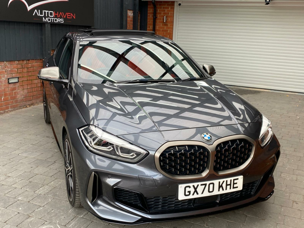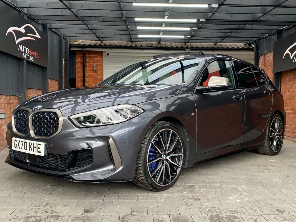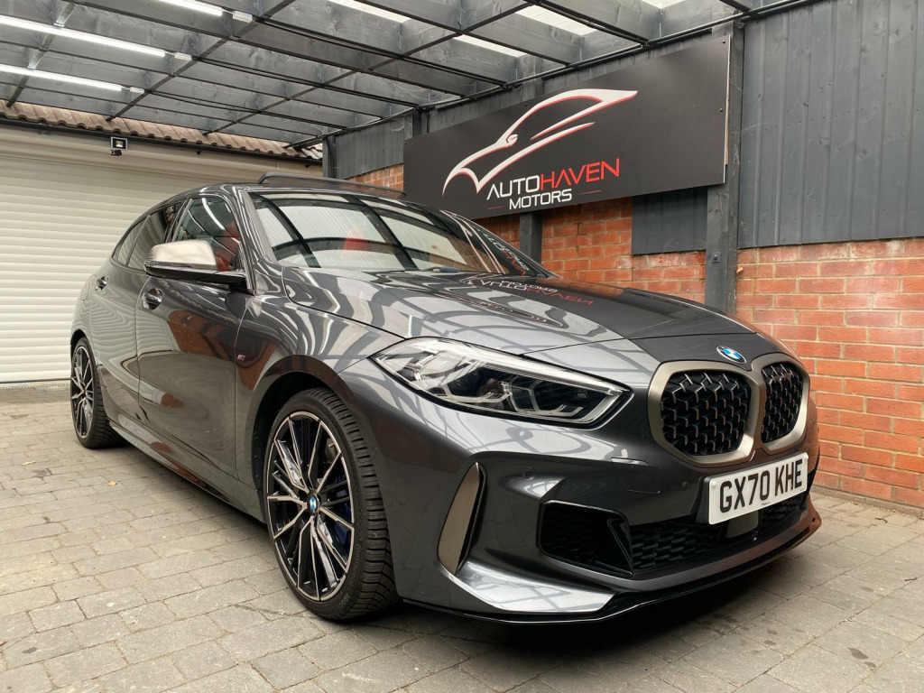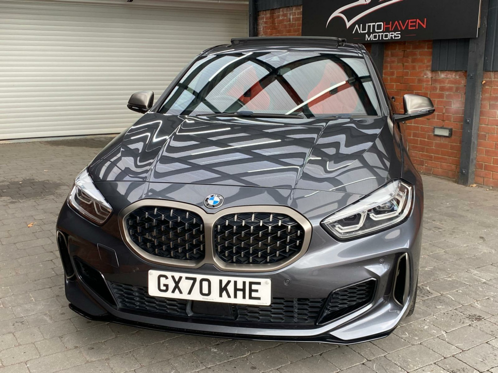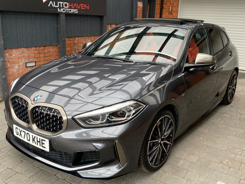 Autohaven Motors Limited are delighted to be offering a stunning 2020 (70 Plate) BMW 1 Series 2.0 M135i Auto xDrive Euro 6 (s/s) 5dr. THIS IS A 2 OWNER CAR FROM NEW and has covered only 39,000 miles and comes with a FULL BMW SERVICE HISTORY and comes with an MOT till July 2026. **FINANCE OPTIONS AVAILABLE** The car drives perfect and comes in the desirable colour of Grey Metallic with Perforated Dakota Leather - Magma Red with Grey Highlight leather seats. HUGE SPEC INCLUDES; WIRELESS CHARGING, HEADS-UP DISPLAY, HARMON KARDEN SOUND SYSTEM, PARK ASSISTANT, 19'' ALLOYS, PANARAMIC GLASS SUNROOF, PRIVACY GLASS, AUTOMATIC TAILGATE, COMFORT PACK, LUMBAR SUPPORT, ELECTRIC SEATS, HEATED SEATS AND STEERING WHEEL, M 135i plus pack, Tech Pack, BMW ADAPTIVE LED HEADLIGHTS, COMFORT ACCESS SYSTEM. This is a lovely example. HPI CLEAR, Comes with 2 KEYS all the manuals and brand new Continental Tyres fitted. FINANCE OPTIONS AVAILABLE SO DO CALL US. PART EXCHANGE ALSO CONSIDERED . OUR CARS ARE READY TO BE DRIVEN AWAY SAME DAY. Please call for more info. VIEWING BY APPOINTMENT ONLY. AVAILABLE MONDAY- SUNDAY 9AM TILL LATE. **PRICED VERY COMPETITIVELY** FINANCE AVAILABLE+NATIONWIDE DELIVERY AVAILABLE.EXTENDED WARRANTY AVAILABLE. mfort pack ii, m135i plus pack, tech pack i, panoramic glass sunroof, head-up display, loudspeaker system - harman kardon, seat adjustment - front electric with driver memory, automatic tailgate, bmw adaptive led headlights, comfort access system, enhanced bluetooth with wireless charging, park assistant, sun protection glazing, luggage compartment separating net, lumbar support - driver and front passenger, steering wheel - heated, through-loading system, 19in alloy wheels - m double-spoke style 552 - bi-colour, perforated dakota leather - magma red with grey highlight, 12v power socket in centre console front with blanking plug, 18in alloy wheels - m double-spoke style 556 - bi-colour, active guard plus, air conditioning automatic with two-zone control, airbags, alarm system - thatcham 1 with remote control and engine immobiliser, armrest - front - folding with storage compartment, attentiveness assistant, automatically dimming rear view mirror, bmw connected package professional, bmw connecteddrive online services, bmw emergency call, bmw live cockpit professional, bmw mobility tyre sealing system, bmw teleservices, bluetooth - audio streaming - with compatible devices, bluetooth hands free with usb audio interface, bumper system front and rear - replaceable deformation elements for impacts up to 9mph, central locking switch - doors - fuel filler cap - luggage compartment, check control warning system for monitoring of lights and door-luggage compartment open warning, child seat isofix attachment for the two outer rear seats and front passenger seat, childproof locking system - rear doors and electric windows, condition based service, contrast stitching - instrument panel, crash sensor, cruise control with brake function and speed limiter, cupholders - two front centre console, dab digital radio, dsc - dynamic stability control plus, dead-locking function system to all doors, direction indicator side lights integrated in exterior mirrors, door sill finishers with m135i designation - front only, drive performance control with eco pro and comfort modes, drive-away locking system on all doors-luggage compartment - can be de-activated in idrive settings, eco pro mode, eps - electric power steering, electric handbrake, electric windows - front and rear with open-close fingertip control - trap release and child lock function, exhaust system with tailpipe 100mm - cerium grey - twin - round - left and right split, extended lighting, extended storage, exterior mirrors - electrically folding with anti dazzle, exterior parts in body colour, exterior trim - high gloss shadowline, first aid kit and warning triangle, floor mats in anthracite velour with contrasting colour seam to match contrast stitching on instrument panel, front m sport seats, front windscreen wipers with integrated washer jets, glove box with light, grab handles - integrated in roof linings - four, headlining - anthracite, heat protection glazing with green tint, high level third brake light, illuminated boston interior trim, integrated owners handbook - within idrive menu, interior lighting, kidney grille in cerium grey with mesh design, led headlights, larger capacity fuel tank, locking wheel bolts, luggage compartment package, m logo designation - side - cerium grey, m performance exhaust system with valve control and minimised exhaust back pressure, m rear spoiler, m seat belts, m sport aerodynamic package, m sport braking system, m sport steering wheel, m sport steering with m135i xdrive specific settings, m sport suspension, m sports steering, mirror caps - cerium grey, model designation on tailgate, multifunction controls for steering wheel, obc - on-board computer, optimum shift indicator, pdc - park distance control - front and rear, performance control, personal profile, rain sensor with automatic headlight activation, rear fog light, rear seat backrest with manual 60-40 split folding with 3 top tether clips integrated on rear of seat panels, rear seat headrests - three, remote control key x2, reversing light in rear light clusters, seat belt security check for driver and front passenger, seat belt warning if driver starts ignition without putting on seatbelt, seat heating for driver and front passenger, servotronic steering, shark fin, side armrests - front and rear integrated into door trim, side impact protection, sport automatic transmission, start-stop button - illuminated in centre console with keyless engine start and auto start-stop deactivation button, steering column with manual reach and rake adjustment, stereo speaker system, storage features, sun visors with vanity mirrors and insert tab, suspension, tpms - tyre pressure monitoring system, three-point seat belts - all seats, twin horns, tyres - reduce