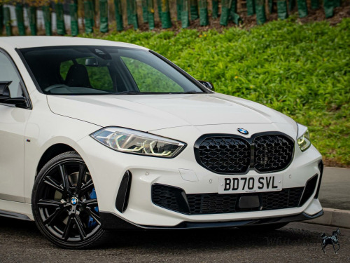 FREE DELIVERY WITHIN 200 MILES – Here we have stunning BMW M135i xDrive finished in Alpine White. This being the range topping M135i means it comes with fantastic spec from the factory, but this example also boasts a plethora of added optional extras such as: M135i Pro Pack – Harman Kardon Sound System – 19in M V Spoke Style 557M Alloy Wheels – Perforated Dakota Leather in Black with Grey Highlight – Sun Protection Glazing – and more. This car has full BMW history, with 3 services in total on its long condition-based schedule. Next due in 9,000 miles or 02/2027. The MOT expires July 2026. 3 Month £2000 Claim Limit Warranty is included with the sale but the option to upgrade to a 12M, 24M, & 36M £5000 Claim Limit Nation Wide Premium Autoguard Warranty with Breakdown Cover is available. Multiple Finance Options, Competitive Part Exchange Prices. All Cars Are HPI, MotorCheck & Experian Clear. Further Vehicle Delivery Options Also Available. All Rights Reserved - Whitethor cars exercise all reasonable care and skill in providing you with vehicle information and data. The specification is attained through HPI, Experian & Autotrader VRM. Options Sold as packs may be shown individually, spec check is a guide so please contact us or physically verify any info that is crucial.