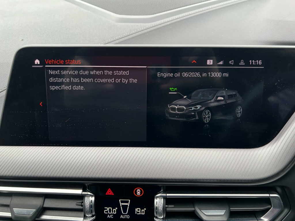 A Beautiful Low Milage Example With A Full BMW Main Dealer Service History. Particular Features Include M135i Plus Pack, Upgraded Perforated Dakota Leather With Grey Highlights, 19'' Alloys & Harman Kardon Loudspeaker System.... 12V Power Socket in Centre Console Front with Blanking Plug, 18in Alloy Wheels - M Double-Spoke Style 556 - Bi-Colour, Active Guard Plus, Air Conditioning Automatic with Two-Zone Control, Airbags, Alarm System - Thatcham 1 with Remote Control and Engine Immobiliser, Armrest - Front - Folding with Storage Compartment, Attentiveness Assistant, Automatically Dimming Rear View Mirror, BMW Connected Package Professional, BMW ConnectedDrive Online Services, BMW Emergency Call, BMW Live Cockpit Professional, BMW Mobility Tyre Sealing System, BMW TeleServices, Bluetooth - Audio Streaming - with Compatible Devices, Bluetooth Hands Free with USB Audio Interface, Bumper System Front and Rear - Replaceable Deformation Elements for Impacts Up to 9mph, Central Locking Switch - Doors - Fuel Filler Cap - Luggage Compartment, Check Control Warning System for Monitoring of Lights and Door-Luggage Compartment Open Warning, Child Seat ISOFIX Attachment For The Two Outer Rear Seats And Front Passenger Seat, Childproof Locking System - Rear Doors and Electric Windows, Condition Based Service, Contrast Stitching - Instrument Panel, Crash Sensor, Cruise Control with Brake Function, Cupholders - Two Front Centre Console, DAB Digital Radio, DSC - Dynamic Stability Control Plus, Dead-locking Function System to all Doors, Direction Indicator Side Lights Integrated in Exterior Mirrors, Door Sill Finishers with M135i Designation - Front Only, Drive Performance Control with ECO PRO and Comfort Modes, Drive-Away Locking System on All Doors-Luggage Compartment - Can Be De-Activated in iDrive Settings, ECO PRO Mode, EPS - Electric Power Steering, Electric Handbrake, Electric Windows - Front and Rear with Open-Close Fingertip Control - Trap Release and Child Lock Function, Exhaust System with Tailpipe 100mm - Cerium Grey - Twin - Round - Left and Right Split, Extended Lighting, Extended Storage, Exterior Mirrors - Electrically Folding with Anti Dazzle, Exterior Parts in Body Colour, Exterior Trim - High Gloss Shadowline, First Aid Kit and Warning Triangle, Floor Mats in Anthracite Velour with Contrasting Colour Seam to Match Contrast Stitching on Instrument panel, Front M Sport Seats, Front Windscreen Wipers with Integrated Washer Jets, Glove Box with Light, Grab Handles - Integrated in Roof Linings - Four, Headlining - Anthracite, Heat Protection Glazing with Green Tint, High Level Third Brake Light, Illuminated Boston Interior Trim, Integrated Owners Handbook - Within iDrive Menu, Interior Lighting, Kidney Grille in Cerium Grey with Mesh Design, LED Headlights, Larger Capacity Fuel Tank, Locking Wheel Bolts, Luggage Compartment Package, M Logo Designation - Side - Cerium Grey, M Performance Exhaust System with Valve Control and Minimised Exhaust Back Pressure, M Rear Spoiler, M Seat Belts, M Sport Aerodynamic Package, M Sport Braking System, M Sport Steering Wheel, M Sport Steering with M135i xDrive Specific Settings, M Sport Suspension, M Sports Steering, Mirror Caps - Cerium Grey, Model Designation on Tailgate, Multifunction Controls for Steering Wheel, OBC - On-Board Computer, Optimum Shift Indicator, PDC - Park Distance Control - Front and Rear, Performance Control, Personal Profile, Rain Sensor with Automatic Headlight Activation, Rear Fog Light, Rear Seat Backrest with Manual 60-40 Split Folding with 3 Top Tether Clips Integrated on Rear of Seat Panels, Rear Seat Headrests - Three, Remote Control Key x2, Reversing Light in Rear Light Clusters, Seat Belt Security Check for Driver and Front Passenger, Seat Belt Warning if Driver Starts Ignition without Putting on Seatbelt, Seat Heating for Driver and Front Passenger, Servotronic Steering, Shark Fin, Side Armrests - Front and Rear Integrated into Door Trim, Side Impact Protection, Sport Automatic Transmission, Start-Stop Button - Illuminated in Centre Console with Keyless Engine Start and Auto Start-Stop Deactivation Button, Steering Column with Manual Reach and Rake Adjustment, Stereo Speaker System, Stor. Full dealership history