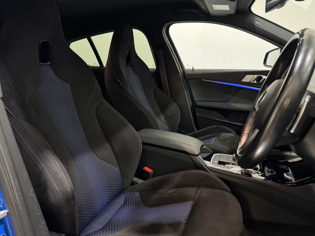 This 2022 BMW 1 Series M135i finished in Misano blue metallic with Anthracite alcantara interior boasts a full service history and a clear vehicle history check, offering peace of mind with your purchase. This Euro 6 compliant model features a powerful 2.0L petrol engine paired with a four wheel drive drivetrain, ensuring excellent performance and control. Youll also benefit from a 6 month warranty and a 12 month MOT provided on purchase. Notable features include the M135i Pro Pack, which enhances the already impressive Harman Kardon Surround Audio Sound System with premium branded audio, 19 M-Sport alloys and LED headlights for superior visibility. Connectivity is seamless with Bluetooth hands free and USB audio interface, alongside Bluetooth audio streaming for compatible devices. Experience exhilarating performance with this BMW 1 Series M135i, capable of accelerating from 0 to 62mph in a swift 4.8 seconds, a figure that sets it apart from many other vehicles in its class. The spacious boot offers ample room for your luggage or shopping, making it a practical choice for everyday life. This combination of dynamic driving capabilities, advanced technology, and generous practicality makes this M135i a truly compelling option.