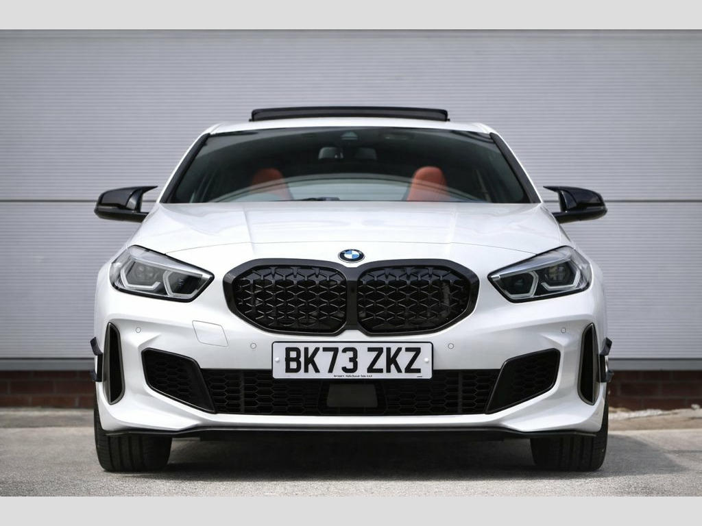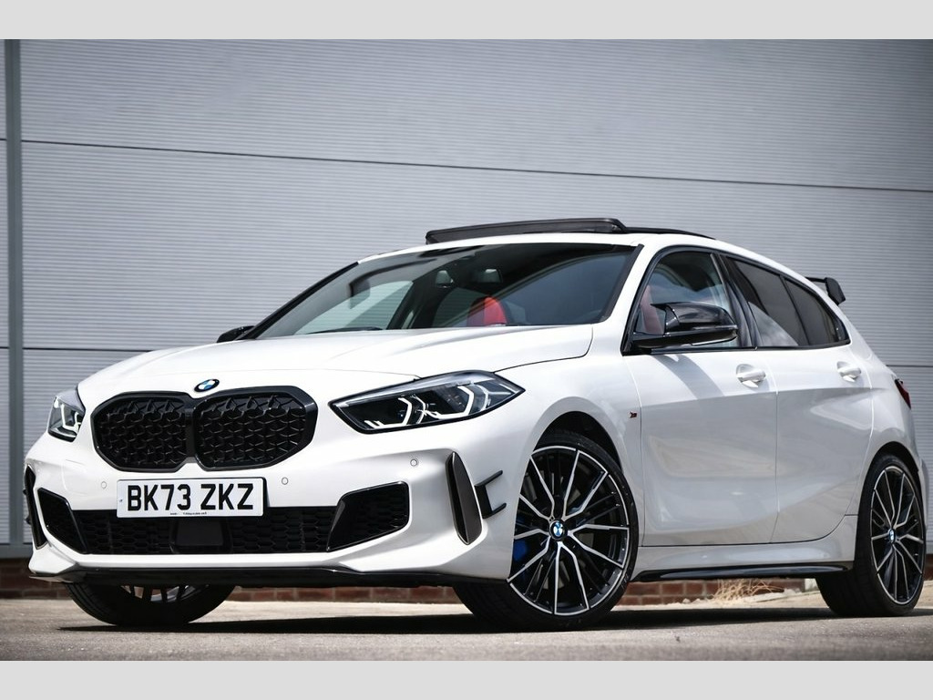 ** FINANCE / PCP FROM JUST 8.9% APR -- HUGE SPEC with -- M-PERFORMANCE AERO KIT -- GLASS PANORAMIC SUNROOF -- M135i PRO PACK -- FULL RED LEATHER -- 1 OWNER -- HARMAN KARDON -- 19s -- LOW RATE FINANCE / PCP FROM 8.9% APR ARRANGED BY OUR FINANCE EXPERTS **... UK DELIVERY ARRANGED TO YOUR FRONT DOOR... WE WANT YOUR PART EXCHANGE !! Where Do I Start With This Outstanding Mega Spec Next Generation M135i xDRIVE... Genuinely Immaculate, Cared For By Just 1 Owner From Brand New And Covered Only 6800 Guaranteed Miles Complimented With A FULL BMW SERVICE HISTORY, 2 Keys, Handbooks And Balance Of 3 Year Manufacturers Warranty. ** HPi CLEAR -- FINANCE / PCP ARRANGED **... Starting With The Exterior You Get... Stunning Immaculate Bodywork In ' ALPINE WHITE ' with The Addition Of ' M PERFORMANCE ' Aero Kit Including.... ROOF SPOILER... AERO FLICKS.... BLACK KIDNEY GRILL... Black M2 COMP Mirror Caps and Privacy Glass.... Sitting On Upgraded 19 inch 552M Alloys... M-SPORT Suspension with M Braking System... A Class Leading Interior With ' BMW LIVE COCKPIT PROFESSIONAL '... A Stunning Colour Combo And Right On Trend With Body Hugging ' MAGMA RED ' Full Leather Sports Seats with Tri-Colour 'M' Seat Belts & A Contemporary Blend Of Aluminium And Piano Black Dash Inlays... UBER COOL !! The Performance Of This Pocket Rocket Needs No Introduction With Its Ultra Grippy xDRIVE 4x4 System And A Huge 302 BHP On Tap... Results Are 0-60 In A Sta Harman Kardon Surround Audio Sound Syste, M135i Pro Pack, Panoramic Glass Sunroof, Perforated Dakota Leather - Magma Red wi, Sun Protection Glazing