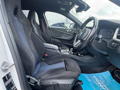 DRIVE HOME TODAY IN THIS WONDERFUL & LOW MILEAGE 2023-73 BMW 1 SERIES M135i 5 DOOR PETROL XDRIVE EURO 6 306 BHP FINSIHED IN ALPINE WHITE AND TRIMMED WITH HEATED BLACK SPORTS SEATING. LOW MILEAGE ONLY 17K WITH A FULL BMW MAIN DEALER SERVICE HISTORY AND JUST SERVICED @ 15,850 MILES WITH THE BALANCE OF BMW WARRANTY UNTIL 09/2026. A SUPERB COMBINAITON OF STYLE, LUXURY, PRACTICALITY AND PERFORMANCE . GREAT SPEC WITH OVER £2,500 OF FACTORY FITTED EXTRAS INC 19" ALLOY WHEELS, PRIVACY GLASS, M135i PRO PACK, SAT-NAV, FRONT & REAR SENSORS, HARMAN-KARDON SOUND UPGRADE, CAR PLAY, ELECTRIC FOLDING MIRRORS, CLIMATE & CRUISE CONTROL, DAB, BLUETOOTH. 12V Power Socket in Centre Console Front, 18in Alloy Wheels - M Double-Spoke Style, Active Guard Plus, Air Conditioning Automatic with Two-Zone, Airbags, Alarm System - Thatcham 1 with Remote Co, Armrest - Front Centre, Attentiveness Assistant, Automatic Windscreen Wipers and Headligh, Automatically Dimming Rear View Mirror, BMW Connected Package Professional, BMW ConnectedDrive Online Services, BMW Emergency Call, BMW Live Cockpit Professional, BMW Mobility Tyre Sealing System, BMW TeleServices, Bluetooth - Audio Streaming - with Compa, Bluetooth Hands Free with USB Audio Inte, Bumper System Front and Rear - Replaceab, Central Locking Switch - Doors - Fuel Fi, Check Control Warning System f