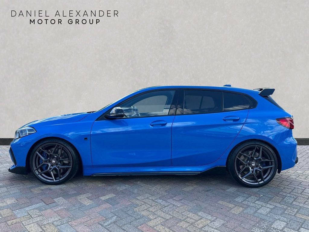 COBRA EXHAUST | MOTECH M-W1 19" CARBON GREY ALLOY WHEELS | MOTECH M PERFORMANCE FRONT SPLITTER | MOTECH M PERFORMANCE REAR DIFFUSER | MOTECH M PERFORMANCE REAR SPOILER | MOTECH M PERFORMANCE SIDE SKIRTS | M PERFORMANCE CARBON FIBRE STEERING WHEEL | BMW 50th ANNIVERSARY BADGES | M135i PRO PACK | APPLE CARPLAY | LOUDSPEAKER SYSTEM - HARMAN KARDON | TRIGON CLOTH-ALCANTARA - ANTHRACITE | SUN PROTECTION GLAZING | MISANO BLUE | EXCELLENT CONDITION | ONE OF A KIND 135i | 12 MONTH MOT | FULL SERVICE HISTORY | 12 MONTH WARRANTY FINANCE AVAILABLE FROM 9.9% APR SUBJECT TO STATUS | 12V Power Socket in Centre Console Front, 18in Alloy Wheels - M Double-Spoke Style, Active Guard Plus, Additional Storage Compartment, Air Conditioning Automatic with Two-Zone, Airbags, Alarm System - Thatcham 1 with Remote Co, Armrest - Front - Folding with Storage C, Attentiveness Assistant, Automatically Dimming Rear View Mirror, BMW Connected Package Professional, BMW ConnectedDrive Online Services, BMW Emergency Call, BMW Live Cockpit Professional, BMW Mobility Tyre Sealing System, BMW TeleServices, Bluetooth - Audio Streaming - with Compa, Bluetooth Hands Free with USB Audio Inte, Bumper System Front and Rear - Replaceab, Central Locking Switch - Doors - Fuel Fi, Check Control Warning