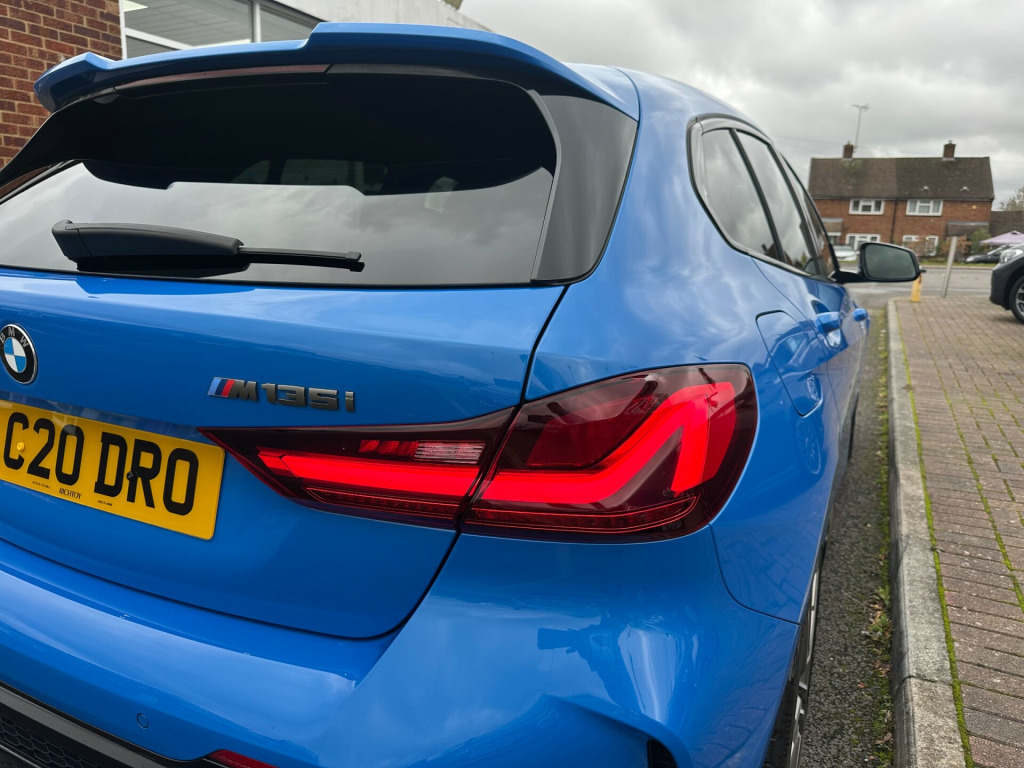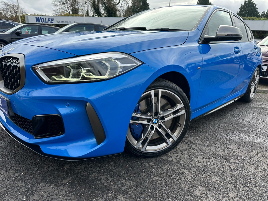 This 2020 BMW 1 Series M135i Hatchback has only 55539 miles on it and is powered by a petrol engine, making it ULEZ compliant. This 5-door hatchback with 5 seats has a MOT that expires on 14/02/2026, giving you peace of mind. The car comes in a stylish Misano Blue color and features Sun Protection Glazing, Trigon Cloth-Alcantara interior in Anthracite, and a 12V Power Socket in the Centre Console Front with Blanking Plug. It also includes the BMW Connected Package Professional. With its xDrive capability and Euro 6 (s/s) 2.0L engine producing 306 ps, this car offers both power and efficiency, making it a practical and exciting choice for any driver. v power socket in centre console front with blanking plug, bmw connected package professional, bmw connecteddrive online services, bmw emergency call, bmw teleservices, bluetooth - audio streaming - with compatible devices, bluetooth hands free with usb audio interface, dab digital radio, shark fin, stereo speaker system, 18in alloy wheels - m double-spoke style 556 - bi-colour, bmw mobility tyre sealing system, direction indicator side lights integrated in exterior mirrors, electric windows - front and rear with open-close fingertip control - trap release and child lock function, exhaust system with tailpipe 100mm - cerium grey - twin - round - left and right split, exterior mirrors - electrically folding with anti dazzle, exterior parts in body colour, exterior trim - high gloss shadowline, heat protection glazing with green tint, kidney grille in cerium grey with mesh design, locking wheel bolts, m logo designation - side - cerium grey, m performance exhaust system with valve control and minimised exhaust back pressure, m rear spoiler, m sport aerodynamic package, mirror caps - cerium grey, reversing light in rear light clusters, tyres - reduced rolling resistance, active guard plus, airbags, alarm system - thatcham 1 with remote control and engine immobiliser, bumper system front and rear - replaceable deformation elements for impacts up to 9mph, child seat isofix attachment for the two outer rear seats and front passenger seat, childproof locking system - rear doors and electric windows, crash sensor, dsc - dynamic stability control plus, dead-locking function system to all doors, drive-away locking system on all doors-luggage compartment - can be de-activated in idrive settings, electric handbrake, first aid kit and warning triangle, m seat belts, m sport steering with m135i xdrive specific settings, remote control key x2, seat belt security check for driver and front passenger, seat belt warning if driver starts ignition without putting on seatbelt, side impact protection, three-point seat belts - all seats, visible vin, windscreen wiper - rear, air conditioning automatic with two-zone control, armrest - front - folding with storage compartment, automatically dimming rear view mirror, bmw live cockpit professional, central locking switch - doors - fuel filler cap - luggage compartment, contrast stitching - instrument panel, cupholders - two front centre console, door sill finishers with m135i designation - front only, extended lighting, extended storage, floor mats in anthracite velour with contrasting colour seam to match contrast stitching on instrument panel, front m sport seats, front windscreen wipers with integrated washer jets, glove box with light, grab handles - integrated in roof linings - four, headlining - anthracite, illuminated boston interior trim, interior lighting, luggage compartment package, m sport steering wheel, model designation on tailgate, multifunction controls for steering wheel, personal profile, rain sensor with automatic headlight activation, rear fog light, rear seat backrest with manual 60-40 split folding with 3 top tether clips integrated on rear of seat panels, rear seat headrests - three, seat heating for driver and front passenger, side armrests - front and rear integrated into door trim, start-stop button - illuminated in centre console with keyless engine start and auto start-stop deactivation button, steering column with manual reach and rake adjustment, storage features, sun visors with vanity mirrors and insert tab, twin horns, welcome light, attentiveness assistant, condition based service, cruise control with brake function and speed limiter, drive performance control with eco pro and comfort modes, eco pro mode, eps - electric power steering, integrated owners handbook - within idrive menu, larger capacity fuel tank, m sport braking system, m sport suspension, m sports steering, obc - on-board computer, optimum shift indicator, pdc - park distance control - front and rear, performance control, servotronic steering, sport automatic transmission, suspension, tpms - tyre pressure monitoring system, check control warning system for monitoring of lights and door-luggage compartment open warning, high level third brake light, led headlights, apple car play and android car play