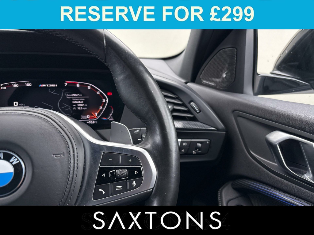 . 12V Power Socket in Centre Console Front with Blanking Plug, 18in Alloy Wheels - M Double-Spoke Style 556 - Bi-Colour, Active Guard Plus, Air Conditioning Automatic with Two-Zone Control, Airbags, Alarm System - Thatcham 1 with Remote Control and Engine Immobiliser, Armrest - Front - Folding with Storage Compartment, Attentiveness Assistant, Automatically Dimming Rear View Mirror, Bluetooth - Audio Streaming - with Compatible Devices, Bluetooth Hands Free with USB Audio Interface, BMW Connected Package Professional, BMW ConnectedDrive Online Services, BMW Emergency Call, BMW Live Cockpit Professional, BMW Mobility Tyre Sealing System, BMW TeleServices, Bumper System Front and Rear - Replaceable Deformation Elements for Impacts Up to 9mph, Central Locking Switch - Doors - Fuel Filler Cap - Luggage Compartment, Check Control Warning System for Monitoring of Lights and Door-Luggage Compartment Open Warning, Child Seat ISOFIX Attachment For The Two Outer Rear Seats And Front Passenger Seat, Childproof Locking System - Rear Doors and Electric Windows, Condition Based Service, Contrast Stitching - Instrument Panel, Crash Sensor, Cruise Control with Brake Function, Cruise Control with Brake Function and Speed Limiter, Cupholders - Two Front Centre Console, DAB Digital Radio, Dead-locking Function System to all Doors, Direction Indicator Side Lights Integrated in Exterior Mirrors, Door Sill Finishers with M135i Designation - Front Only, Drive Performance Control with ECO PRO and Comfort Modes, Drive-Away Locking System on All Doors-Luggage Compartment - Can Be De-Activated in iDrive Settings, DSC - Dynamic Stability Control Plus, ECO PRO Mode, Electric Handbrake, Electric Windows - Front and Rear with Open-Close Fingertip Control - Trap Release and Child Lock Function, EPS - Electric Power Steering, Exhaust System with Tailpipe 100mm - Cerium Grey - Twin - Round - Left and Right Split, Extended Lighting, Extended Storage, Exterior Mirrors - Electrically Folding with Anti Dazzle, Exterior Parts in Body Colour, Exterior Trim - High Gloss Shadowline, First Aid Kit and Warning Triangle, Floor Mats in Anthracite Velour with Contrasting Colour Seam to Match Contrast Stitching on Instrument panel, Front M Sport Seats, Front Windscreen Wipers with Integrated Washer Jets, Glove Box with Light, Grab Handles - Integrated in Roof Linings - Four, Headlining - Anthracite, Heat Protection Glazing with Green Tint, High Level Third Brake Light, Illuminated Boston Interior Trim, Integrated Owners Handbook - Within iDrive Menu, Interior Lighting, Kidney Grille in Cerium Grey with Mesh Design, Larger Capacity Fuel Tank, LED Headlights, Locking Wheel Bolts, Luggage Compartment Package, M Logo Designation - Side - Cerium Grey, M Performance Exhaust System with Valve Control and Minimised Exhaust Back Pressure, M Rear Spoiler, M Seat Belts, M Sport Aerodynamic Package, M Sport Braking System, M Sport Steering Wheel, M Sport Steering with M135i xDrive Specific Settings, M Sport Suspension, M Sports Steering, Mirror Caps - Cerium Grey, Model Designation on Tailgate, Multifunction Controls for Steering Wheel, OBC - On-Board Computer, Optimum Shift Indicator, PDC - Park Distance Control - Front and Rear, Performance Control, Personal Profile, Rain Sensor with Automatic Headlight Activation, Rear Fog Light, Rear Seat Backrest with Manual 60-40 Split Folding with 3 Top Tether Clips Integrated on Rear of Seat Panels, Rear Seat Headrests - Three, Remote Control Key x2, Reversing Light in Rear Light Clusters, Seat Belt Security Check for Driver and Front Passenger, Seat Belt Warning if Driver Starts Ignition without Putting on Seatbelt, Seat Heating for Driver and Front Passenger, Servotronic Steering, Shark Fin, Side Armrests - Front and Rear Integrated into Door Trim, Side Impact Protection, Sport Automatic Transmission, Start-Stop Button - Illuminated in Centre Console with Keyless Engine Start and Auto Start-Stop Deactivation Button, Steering Column with Manual.