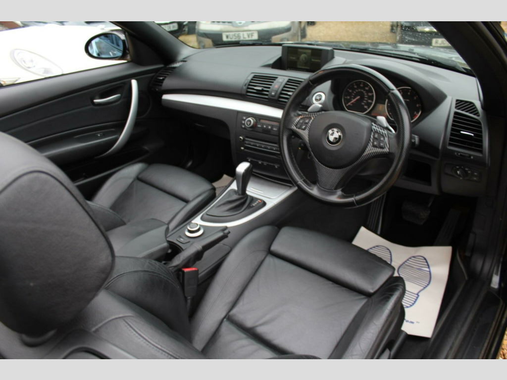 RECENT BMW MAIN DEALER HEALTH CHECK - SUPERB HISTORY - RARE SPEC AND RARE 3.0 AUTO - his 2008 BMW 1 Series 125i M Sport boasts a full service history, offering peace of mind for its next owner. This striking M Sport variant is powered by a capable 3.0 litre petrol engine. Inside, you'll find a Professional SatNav system complete with Radio and CD player, alongside a convenient cup holder. Enhanced Bluetooth telephone functionality is also included, offering USB audio interface and voice control for seamless connectivity. Practicality is further enhanced by Xenon headlights with washers and folding door mirrors.This BMW 1 Series stands out with its low insurance group, making it an economical choice. You'll also appreciate the generous boot space, perfect for luggage or shopping. Furthermore, this model benefits from low CO2 emissions, indicating a more environmentally conscious performance compared to many similar vehicles. These combined highlights demonstrate the thoughtful specification and appealing ownership proposition of this particular BMW 1 Series. in m light alloy double spoke wheels- style 207, 18in double spoke light alloy wheels style 261m, 18in m light alloy double spoke wheels- style 208, air conditioning - automatic with two-zone control, alarm system thatcham 1 with remote control, aluminium glacier silver interior trim, armrest - front with sliding adjustment, automatically dimming rear view mirror, bmw assist, bmw business radio with single cd player, bmw online services, brushed aluminium interior trim, bumpers - body colour, child seat isofix attachment - rear x2, chrome line exterior, delete m sports suspension, delete smokers pack, electric power steering, extended lighting, extended storage, front fog lights, halogen headlights, high gloss shadow line, m aerodynamic bodystyling, m sport package, m sports suspension, manual front seats with height adjustment, model designation deletion, multifunction controls for steering wheel, rear parking distance control, smokers pack, soft top- beige, soft top- black, sport seats - front, storage pack, storage pack when with satnav, voice control system when with bluetooth interface, professional satnav with radio & cd & one cup holder, xenon headlights & headlight washers, voice control system, enhanced bluetooth telephone functionality with usb audio interface and voice control, heated front seats, headlight wash system, usb & audio interface, folding door mirrors, leather- boston- black