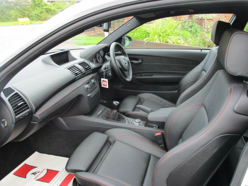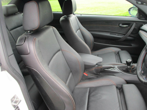 2012(12) BMW 1M COUPE 3.0 ,6 SPEED MANUAL 41,399miles ALPINE WHITE WITH FULL BLACK LEATHER £48995From new, you could specify a 1M in three colours: Alpine White, Sapphire Black and arguably the best colour - Valencia Orange. The latter obviously succeeded in being the more extrovert choice, giving a huge hint that you are in fact looking at something special from BMW M. This also happened to be the colour BMW chose to market the car in too - well, it is an M car after all. Whereas Alpine White and Sapphire Black were a lot more subtle, and are somewhat understated. However, there is nothing subtle about the 1M's quad exhaust tips teamed with the gorgeous 19-inch M light alloy wheels.Interestingly, the 1M was amongst some of the first cars to bring turbo-charging to BMW M cars which again raised eyebrows with purists, as naturally aspirated engines were always the key point of a BMW M car. In a world where emissions regulations were getting stricter, turbocharging was going to be adopted sooner or later, and it has not been a bad thing with the 1M as it gave the car a playful and punchy character.This resulted in the 1M being characteristically M car quick too, with 0 to 62mph achieved in just 4.9 seconds. Although it is thought BMW were a bit conservative with this figure and its actually around half a second quicker in reality.. 12V Power Socket - Rear of Centre Console, 19in Alloy Wheels - Light M Y Spoke - 359M, ABS - Anti Lock Braking System, Air Conditioning - Automatic - Dual Zone, Airbags - Curtain Head Protection system, Airbags - Driver, Airbags - Driver and Front Passenger Side, Airbags - Impact Dependent System for Driver and Front Passenger, Airbags - Passenger, Alarm System Thatcham 1 with Remote Control, Armrest - Front Centre, Automatically Dimming Rear View Mirror, Auxiliary Input, BMW Business Radio with Single CD Player, BMW Online services, BMW TeleServices, Bumpers - Body Colour, CBC - Cornering Brake Control, Child Seat ISOFIX Attachment - Front and Rear, Crash Sensor - Activating Central Locking Release, Cruise Control, DSC - Dynamic Stability Control - Stabilises the Vehicle in Extreme Situations - Controls Traction, Door Mirrors - Electric and Heated, EBD - Electronic Brake-Force Distribution, Electric Windows - Front, Extended Lighting, Extended Storage, Exterior Trim - High-Gloss Shadowline, Floor Mats - Velour, Handbrake Lever - Gear Lever Knob and Gaiters in Leather, Headlights - Washer System, Headlining - Anthracite, Heated Windscreen Washer Jets, Height Adjustable Drivers Seat - Manual, Height Adjustable Passenger Seat - Manual, M Aerodynamic Bodystyling, M Mobility Tyre Sealing System, M Servotronic Power Steering, OBC - On-Board Computer, OBD - On Board Diagnosis, PDC - Park Distance Control - Rear, Rain Sensor with Automatic Headlight Activation, Rear Seat Easy Access System, Remote Control Locking, Seats - 60-40 Split Folding Rear, Side Impact Protection, Smokers Package, Speaker System with Five Speakers, Sport Seats - Front, Steering Column with Manual Reach and Rake Adjustment, Steering Wheel - M Leather Multifunction, TPWS - Tyre Pressure Warning System, Trim - Anthracite Alcantara with Kyalami Orange Stitching, Xenon Headlights, Navigation System - BMW Professional Multimedia, Media Package - BMW Professional, Speaker System - Harman Kardon, Enhanced Bluetooth Telephone Functionality, Enhanced Bluetooth Telephone Functionality with Telematics, Enhanced Bluetooth Telephone Functionality with USB Audio Interface, Voice Control - Phone, Sun Protection Glazing, USB Audio Interface, Servotronic Steering, Multifunction Controls for Steering Wheel, BMW Assist, BMW Assist Online Portal, Boston Leather - Black with Orange Stitching.