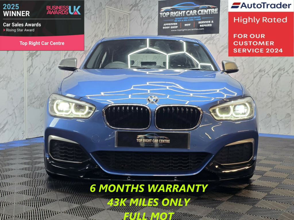 *** NIL DEPOSIT FINANCE AVAILABLE *** 6 MONTHS WARRANTY AND BREAKDOWN COVER WITH THIS CAR.Low mileage 43k miles only. Automatic. 340bhp.FULL BMW SERVICE HISTORY. FULL MOT ON SALE no advisories on previous mots. We just done the fresh service.This stunning BMW 1 Series has been sourced directly from its Previous Private Owner. Every now and again, a car comes into stock at Top Right Car Centre, that you cannot help but fall in love with.Top Spec 3.0 M140i has massive centre screen SATNAV, full leather interior with heated seats, daytime running led lights, parking sensors, all electric windows, digital dual climate control, cruise control.Clean Car in Blue colour. Great comfortable family car. Well maintained body work and interior. Bullet fast response. Checked by our engineers. Professionally detailed. Good reliable runner. Price checked. We've just completed a full pre delivery inspection on the car to give you complete piece of mind. central locking key. Smooth gear box. Clean Alloy wheels. Excellent condition tyres. Multimedia has Bluetooth DAB RADIO CD mp3 AUX USB. Run with no fault strong reliable engine. Good fuel economy. First to see will buy it this well looked after car. p/x welcome. We do price our cars/van as competitively as possible and because of this we sell cars/vans very quickly. BE QUICK! MISS IT - MISS OUT. With so much variety, quality and highly rated award winner 2024 and 2025, it is no wonder we are super busy all the time. Why Buy From Top Right Car Centre?Thoroughly Inspected Cars. All our vehicles are quality-checked and HPi verified, giving you peace of mind with every purchase.Multi Award-Winning Family Business. As a trusted family-run business, we have earned awards for our customer service and expertise.Hand-Picked, Quality Cars. We carefully select only the finest cars with full service histories, so you can drive away with confidence.Test Driven for Assurance. Each car is personally test-driven by our team, ensuring it meets our high standards.Delivery Service available. v power socket - centre console, 12v power socket - passenger footwell, 3.5mm auxiliary input point for auxiliary playing devices, bmw connecteddrive online services, bmw emergency call, bmw navigation system, bmw professional radio - single cd and mp3, bmw teleservices, bluetooth hands free with usb audio interface, dab digital radio, full black panel display, real time traffic information, rear window aerial, shark fin, 18in alloy wheels - m light double spoke - 436m, airblades - ferric grey, bmw mobility system, direction indicator - side repeaters - integrated in exterior mirrors, direction indicator lights - clear lenses, door mirrors - electrically adjustable, door mirrors - ferric grey housing, electric windows - front and rear with open-close fingertip control - anti-trap facility and comfort closing function, exhaust tailpipe - dark chrome - dual - round - split, exterior parts in body colour, exterior trim - high gloss shadowline, heat protection glazing with green tint, kidney grille - chrome with extra wide black - high gloss vertical slats, locking wheel bolts, m aerodynamic bodystyling, m logo designation - side, model designation, rear fog light - offside, reversing light in rear cluster - nearside, tyres - reduced rolling resistance, active differential brake - adb sport - electronic differential lock in dsc-off mode, airbags, alarm system - thatcham 1 with remote control and engine immobiliser, battery safety cut off, bumper system front and rear - replaceable deformation elements for impacts up to 9mph, child proof locking system - rear doors, child seat isofix attachment for the two outer rear seats, crash sensor - activating central locking release - hazard warning lights - battery safety cut off - interior lighting, dsc - dynamic stability control plus, dynamic brake lights, first aid kit and warning triangle, remote control including integrated key - 2, remote control with integrated key with insert in blue, seat belt security check for driver and front passenger, side impact protection, speed limit function, three-point seat belts - all seats, visible vin, windscreen wiper - rear, air conditioning automatic with two-zone control, ambient lighting - switchable bmw classic orange - cold white - led, armrest - front with sliding adjustment, automatically dimming rear view mirror, central locking switch - doors - fuel filler cap - luggage compartment, cup holders x2, door sill finishers - m140i designation, extended lighting, extended storage, floor mats - velour, glove compartment, glovebox - handle with chrome surround, grab handles - integrated in roof lining x4, handbrake and gear knob - leather, head restraints - rear and folding, headlining - anthracite, instrument cluster - sports with red highlight, interior comfort package, interior lighting - front centre over interior mirror and rear centre, interior trim - aluminium hexagon with estoril blue finisher, lashing eyes in luggage compartment at sill x2, luggage compartment - light, luggage compartment access via bmw roundel, m sport multi-function leather steering wheel - three-spoke, multifunction controls for steering wheel, non smokers package, personal profile, quick shift steering wheel mounted gearshift paddles, rain sensor with automatic headlight activation, rear seat headrests - outer headrests folding, seats - 60-40 split folding rear, side armrests - front and rear integrated into door trim, sport seats - front, start-stop button with comfort go keyless engine start and auto start-stop deactivation button, steering-wheel column adjustment - manual, storage compartment - rear centre console and in door trim - front, sun visors with vanity mirrors and ticket holder, twin horns, welcome light, battery age recognition function, brake pad wear indicator - front and rear, condition based service, drive performance control - eco pro - comfort - sport - sport plus modes, m sport braking system, m sport suspe