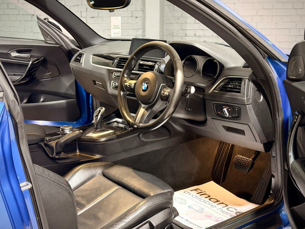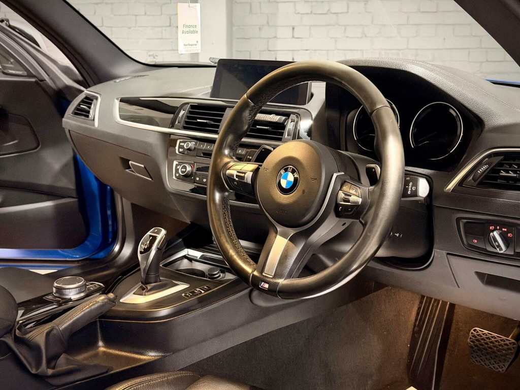 ++ Nationwide delivery available, virtual video viewings and a competitive range of finance solutions ++, BMW 1 Series M140i Shadow Edition Auto – 76,500 Miles – Full History – Huge Spec, Just arrived – a superb example of the BMW M140i Shadow Edition, finished in metallic blue with gloss black styling pack and gloss black alloy wheels. This 3-door variant is powered by the legendary 3.0L turbocharged straight-six, paired with the smooth and responsive 8-speed automatic gearbox. Well cared for with just 4 owners from new and backed by a full service history (4 BMW main dealer + 1 independent). Supplied with a fresh advisory-free MOT and presents very well throughout. Being the Shadow Edition, this car benefits from a standout spec including:, BMW Professional Navigation with the larger screen & updated interface, Apple CarPlay, Harman Kardon premium audio, Full black leather interior with heated front seats, Gloss black 18 alloys with Michelin tyres, Gloss black kidney grilles, Rear parking sensors (PDC), Factory Xenon headlights with LED halo DRLs, Dual-zone climate control, cruise control, auto lights & wipers, Shadowline exterior trim, darkened rear lenses, Supplied with:, 2 keys, book pack, and locking wheel nut, A well-specd, well-kept M140i with proper service history and all the key options — a fast, refined, and increasingly sought-after hot hatch. ++This vehicle includes a 6 month GOLD level WARRANTY, we are an RAC approved dealer & all vehicles complete an 82 point check, are HPI clear, includes 12 months RAC breakdown assistance. We operate from a modern indoor showroom, all PART EXCHANGES are considered & we offer a range of COMPETITIVE FINANCE solutions++