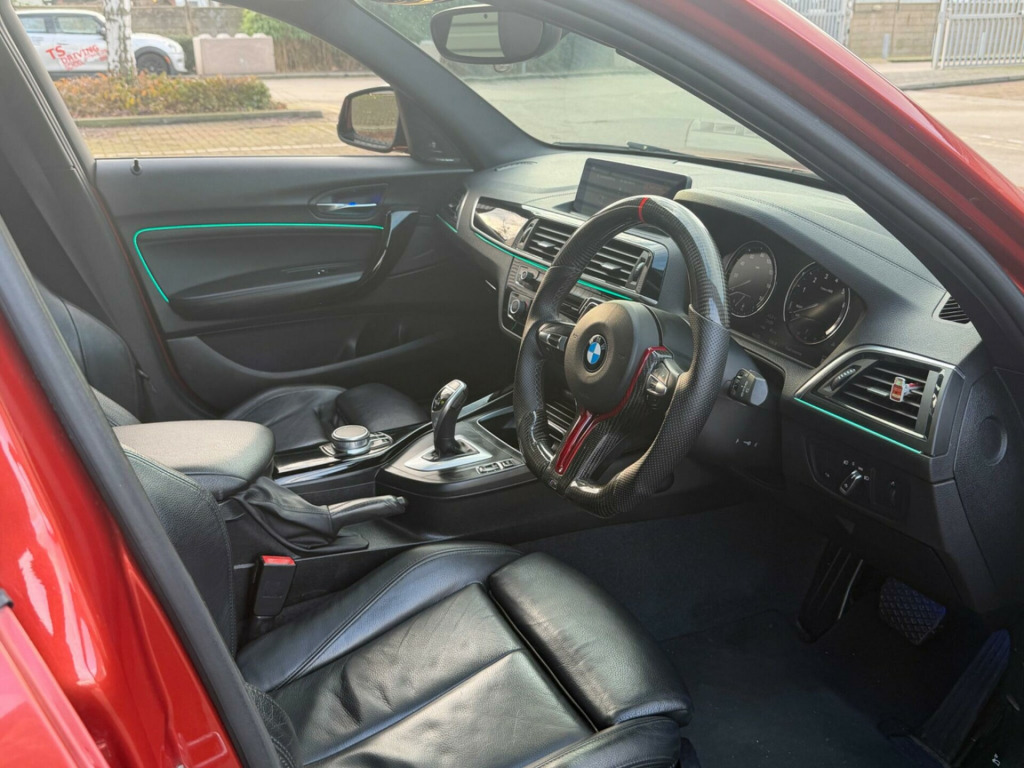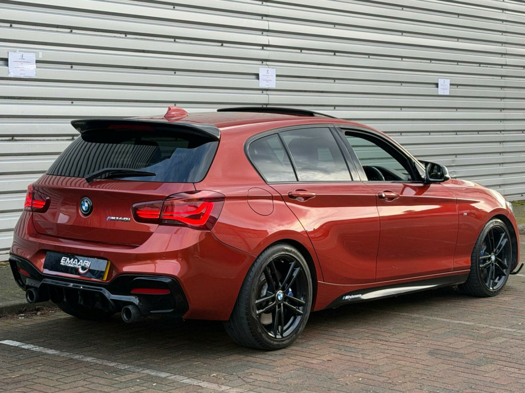 This 2018 BMW 1 Series M140i Shadow Edition presents an exceptional opportunity with its remarkably low mileage of just 44,000 miles. As a Euro 6 compliant model, it features a potent 3.0L petrol engine, delivering exhilarating performance with a 0-62mph time of only 4.6 seconds. The Shadow Edition trim enhances its appeal, and this particular vehicle benefits from a desirable glass sunroof, offering an open and airy cabin experience. Inside, you'll find the Media Package BMW Professional, ensuring seamless connectivity and entertainment, while heated seats for the driver and front passenger provide comfort in all conditions. Parking is made easier with rear Park Distance Control, and the premium Harman Kardon loudspeaker system promises an immersive audio experience.Beyond its impressive acceleration, this BMW 1 Series M140i Shadow Edition stands out with practical advantages that set it apart from other vehicles in its class with an air intake and decat. Its low insurance group rating makes it an economical choice for many drivers. Furthermore, the generous boot space ensures that practicality is not compromised, making it suitable for everyday errands and longer journeys alike. These highlighted features collectively demonstrate the superior value and desirability of this well appointed and high performing hatchback. We v power socket - centre console, 12v power socket - passenger footwell, 18in alloy wheels - m double spoke - 436m in orbit grey, active differential brake - adb sport - electronic differential lock in dsc-off mode, air conditioning automatic with two-zone control, airbags, airblades - ferric grey, alarm system - thatcham 1 with remote control and engine immobiliser, ambient lighting - switchable bmw classic orange - cold white - led, armrest - front with sliding adjustment, automatically dimming rear view mirror, bmw connecteddrive online services, bmw connecteddrive services, bmw emergency call, bmw mobility system, bmw navigation system, bmw professional radio - single cd and mp3, bmw teleservices, battery age recognition function, battery safety cut off, black high-gloss kidney grille frame with black slats, bluetooth hands free with usb audio interface, brake pad wear indicator - front and rear, bumper system front and rear - replaceable deformation elements for impacts up to 9mph, central locking switch - doors - fuel filler cap - luggage compartment, check control warning system for monitoring of lights and door-luggage compartment open warning, child proof locking system - rear doors, child seat isofix attachment for the two outer rear seats, condition based service, crash sensor - activating central locking release - hazard warning lights - battery safety cut off - interior lighting, cruise control with brake function, cupholders two with sliding cover and inlay mat, dab digital radio, dsc - dynamic stability control plus, darkened rear lights with led light bars, direction indicator - side repeaters - integrated in exterior mirrors, direction indicator lights - clear lenses, door mirrors - ferric grey housing, door sill finishers - m140i designation, drive performance control - eco pro - comfort - sport - sport plus modes, dynamic brake lights, eco pro mode, electric windows - front and rear with open-close fingertip control - anti-trap facility and comfort closing function, exhaust tailpipe - dark chrome - dual - round - split, extended lighting, extended storage, exterior mirrors electrically adjustable, exterior parts in body colour, exterior trim - high gloss shadowline, first aid kit and warning triangle, floor mats - velour, full black panel display, glove compartment, glovebox - handle with chrome surround, grab handles - integrated in roof linings - four, handbrake and gear knob - leather, head restraints - rear and folding, headlining - anthracite, heat protection glazing with green tint, high level third brake light, incorrect fuelling protection system, instrument cluster - sports with red highlight, interior comfort package, interior lighting - front centre over interior mirror and rear centre, interior trim - aluminium hexagon with estoril blue finisher, led headlights, led headlights with darkened surround, lashing eyes in luggage compartment at sill x2, lights-on warning by audio warning signal when ignition is switched off, locking wheel bolts, loudspeaker system - harman kardon, luggage compartment - light, luggage compartment access via bmw roundel, m aerodynamic bodystyling, m logo designation - side, m sport braking system, m sport multi-function leather steering wheel - three-spoke, m sport suspension, model designation, multifunction controls for steering wheel, non smokers package, obc - on-board computer, oil temperature display via on-board computer shown in central screen in instrument cluster, optimum shift indicator, pdc - park distance control - rear, personal profile, power steering - electric, rain sensor with automatic headlight activation, real time traffic information, rear fog light - offside, rear seat headrests - outer headrests folding, rear window aerial, remote control including integrated key - 2, remote control with integrated key with insert in blue, reversing light in rear cluster - nearside, seat belt security check for driver and front passenger, seats - 60-40 split folding rear, shark fin, side armrests - front and rear integrated into door trim, side impact protection, speed limit function, sport seats - front, start-stop button with comfort go keyless engine start and auto start-stop deactivation button, steering-wheel column adjustment - manual, storage compartment - rear centre console and in door trim - front, sun protection glazing, sun visors with vanity mirrors and ticket holder, tpms - tyre pressure monitoring system, three-point seat belts - all seats, twin horns, tyres - reduced rolling resistance, variable sport steering, visible vin, welcome lighting - led, windscreen wiper - rear, apple carplay, conc