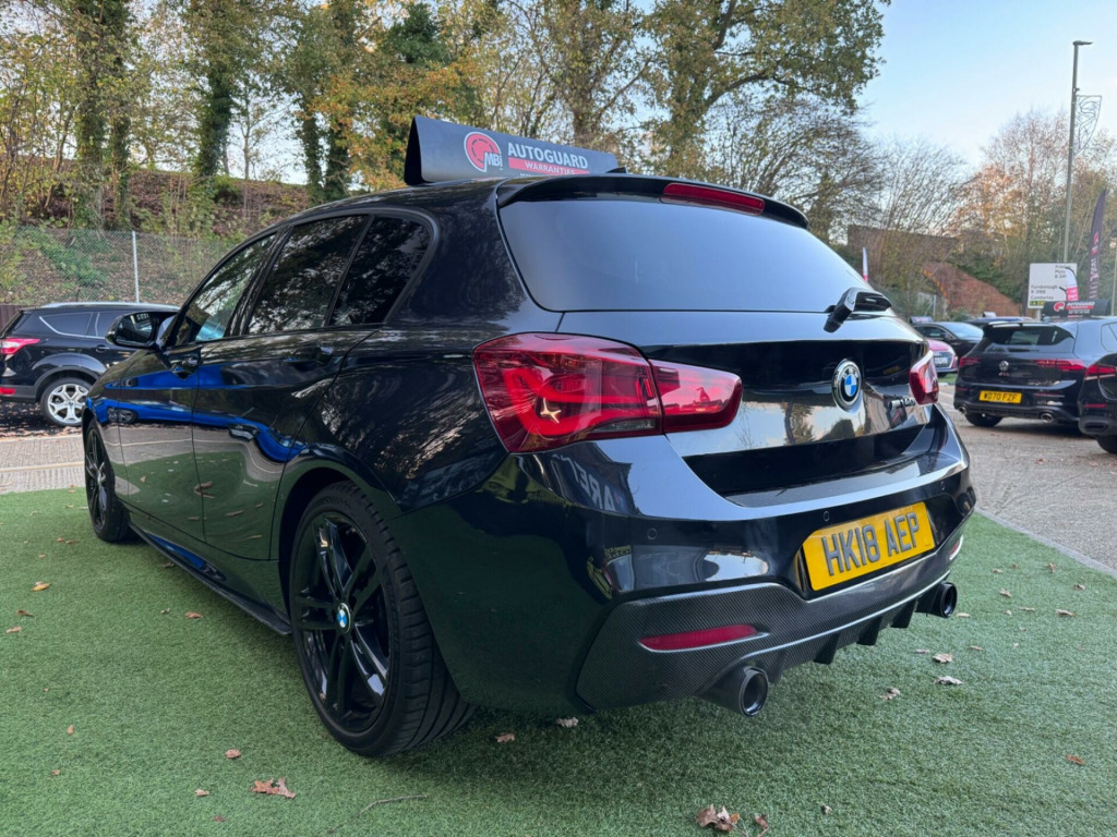 6 months or 12 months warranty available on this car. Finance available subject to status. Media Package - BMW ProfessionalDakota Leather - Black with Black InteriorSeat Heating for Driver and Front PassengerPDC - Park Distance Control - Front and RearExterior Mirrors - Electrically Folding with Anti Dazzle18in Alloy Wheels - M Double Spoke - 719M Jet BlackInterior Trim - High-Gloss Black with Pearl Chrome FinisherSeat Adjustment - Front Electric with Driver MemoryBlue M Performance Brake PackageHarman KardonSat Nav Wider ScreenCruise Control & Speed LimiterCarbon Fibre Side SkirtsCarbon Fibre Rear DiffuserBluetooth & AudioM Performance Black BoxGloss Black Kidney GrillesNew Fron Brake Discs & PadsKeyless StartMulti Functional Steering WheelDigital Dual Zone Climate Controlled Air ConFlappy PaddlesStop StartCarbon Fibre Door MirrorsAuto LED HeadlightsIsofixDAB/FM Radio/CDAppsRear SpoilerRear Privacy GlassElectric Folding MirrorsImmobiliserAlarmPro NavTwin Air BagsSide Air BagsPASRemote Central LockingRear HeadrestsAero WipersElectric WindowsAuto Dim Rear View MirrorMetallic PaintworkThis 2018 BMW 1 Series M140i Shadow Edition boasts a clear vehicle history check, offering you peace of mind. Powered by a potent 3.0L petrol engine and meeting Euro 6 emissions standards, this model is registered in 2018 and comes with an MOT valid until August 2026. Inside, you'll find comfortable front electric seats with driver memory, heated seats for both driver and front passenger, and automatic two zone climate control. For convenience, it includes the Media Package BMW Professional and Park Distance Control for both the front and rear.The M140i Shadow Edition stands out with its impressive acceleration, reaching 0-62mph in just 4.6 seconds, demonstrating its superior performance compared to similar vehicles. This model also benefits from a low insurance group, making it more economical to own. Furthermore, you'll appreciate the generous boot space, offering ample room for your luggage or shopping needs.. Blue M Performance Brake Package, Harman Kardon, Sat Nav Wider Screen, Cruise Control & Speed Limiter, Carbon Fibre Side Skirts, Carbon Fibre Rear Diffuser, Bluetooth & Audio, M Performance Black Box, Gloss Black Kidney Grilles, New Fron Brake Discs & Pads, Keyless Start, Multi Functional Steering Wheel, Digital Dual Zone Climate Controlled Air Con, Flappy Paddles, Stop Start, Carbon Fibre Door Mirrors, Auto LED Headlights, Isofix, DAB/FM Radio/CD, Apps, Rear Spoiler, Rear Privacy Glass, Electric Folding Mirrors, Immobiliser, Alarm, Pro Nav, Twin Air Bags, Side Air Bags, PAS, Remote Central Locking, Rear Headrests, Aero Wipers, Electric Windows, Auto Dim Rear View Mirror, Metallic Paintwork, Front Centre Armrest, Chain No Cambelt, Usb In, Media Package - BMW Professional, Dakota Leather - Black with Black Interior, Seat Heating for Driver and Front Passenger, PDC - Park Distance Control - Front and Rear, 18in Alloy Wheels - M Double Spoke - 719M Jet Black, Exterior Mirrors - Electrically Folding with Anti Dazzle, Interior Trim - High-Gloss Black with Pearl Chrome Finisher, Seat Adjustment - Front Electric with Driver Memory.