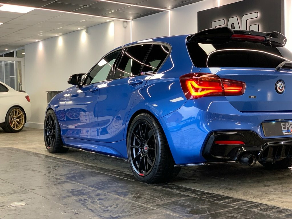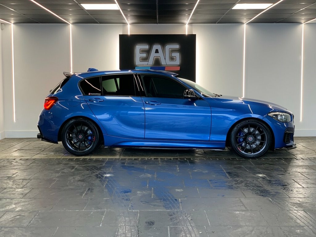 2018 (68) BMW M140i Finished in Estoril Blue with Black Dakota Leather and 2 Forge ZF8 alloys. This example includes a Stage 1 remap from Osprey Performance as well as a XHP gear box map, scorpion mid-pipe and eibach lowering springs. Factory spec includes; M sport brake, sun protection glazing, heated front seats, sports seats, storage compartment package, park distance control, cruise control with brake function, LED headlights, navigational system professional, Harman/Kardon surround sound system, Apple carplay, DAB radio and Bluetooth connectivity. Full Service history. 3 owners. HP finance available from 9.9% APR (subject to status) 12V Power Socket - Centre Console, 12V Power Socket - Passenger Footwell, 18in Alloy Wheels - M Double Spoke - 436, Active Differential Brake - ADB Sport - , Air Conditioning Automatic with Two-Zone, Airbags, Airblades - Ferric Grey, Alarm System - Thatcham 1 with Remote Co, Ambient Lighting - Switchable BMW Classi, Armrest - Front with Sliding Adjustment, Automatically Dimming Rear View Mirror, BMW ConnectedDrive Online Services, BMW ConnectedDrive Services, BMW Emergency Call, BMW Mobility Tyre Sealing System, BMW Navigation System, BMW Professional Radio - Single CD and M, BMW TeleServices, Battery Age Recognition Function, Battery Safety Cut Off, Black High-Gloss Kidney Grille Frame wit,