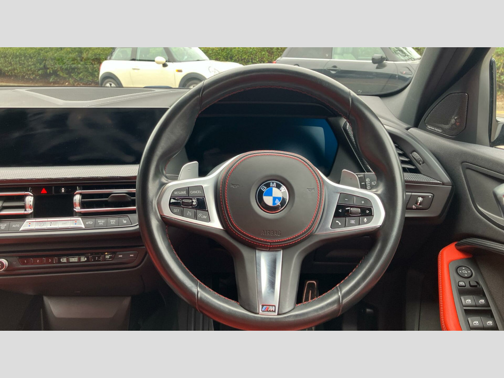 With a low mileage of just 31043 miles for its year, this BMW 1 Series 128ti stands out from similar vehicles. Its impressive acceleration, reaching 0-62mph in just 6.1 seconds, demonstrates its dynamic performance. The spacious boot offers practicality for everyday needs and longer journeys, making it a versatile choice. 128ti Package, 19" 552M Double-spoke style alloy wheels, Deletion of exterior design elements, Illuminated Berlin Interior Trim, Sun Protection Glass, Head-Up Display, Harman/Kardon Surround Sound Audio, M Sport Spoiler, 128ti Pro Pack, EU6 RDE II exhaust emissions standard, Sport Automatic Transmission with Gearsh, Tyre Repair Kit, Multifunction Controls on Steering Wheel, M Sport Brakes with Red Calipers, Alarm System, Electric Folding Door Mirrors, M Sport Seat Belts, Extended Storage Contents, Ext. mirrors- folding with anti-dazzle, Rear-view Mirror with Auto dimming, ISOFIX Child Seat System, Sport seats, Extended storage, Heated front seats, Active Guard Plus, LED Headlights, Park Distance Control front and rear, Automatic Air Conditioning, Cruise Control, Additional Interior Lighting, BMW TeleServices, BMW Emergency Call, BMW Online Services, Connected Package Pro, Live Cockpit Professional, DAB Radio, Indv. high-gloss shadowline- extended, M Sport Suspension, M Sport Exterior Styling, High-gloss Shadowline Exterior Trim, Anthracite Headlining, Active Pedestrian Safety, OAAS Prep High-beam Assist