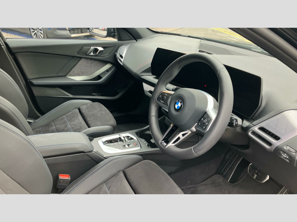 This BMW 1 Series is equipped with a suite of modern features designed for convenience and enjoyment. Stay connected with Smartphone Integration, including Apple CarPlay and Android Auto, and enjoy the comfort of seat heating for both the driver and front passenger. The BMW Live Cockpit Plus, complete with Bluetooth, keeps you informed and entertained, while the Parking Assistant, which includes front and rear sensors along with a rear camera, makes manoeuvring effortless. Powerful LED headlights ensure excellent visibility in all conditions. These highlights demonstrate how this vehicle offers a superior driving experience compared to others in its class. Sun Protection Glass, Mild Hybrid Technology, EU6 RDE II exhaust emissions standard, 18" M Lt/Aly wheels Y-spoke style 975 M, Auto transmission with gearshift paddles, Tyre Repair Kit, M Adaptive Suspension, Alarm System, M Illuminated Aluminium hexacube interio, Child seat i-Size attachment for front p, Sport seats, Heated front seats, Driving Assistant, Active Guard, Parking Assistant, BMW TeleServices, BMW Emergency Call, Personal eSIM, DAB Radio, High-gloss Shadowline Exterior Trim, Anthracite Headlining, COC additional contents, Active Pedestrian Safety, English / on-board literature II, M Sport exterior parts, M Sport interior parts, M Sport Package