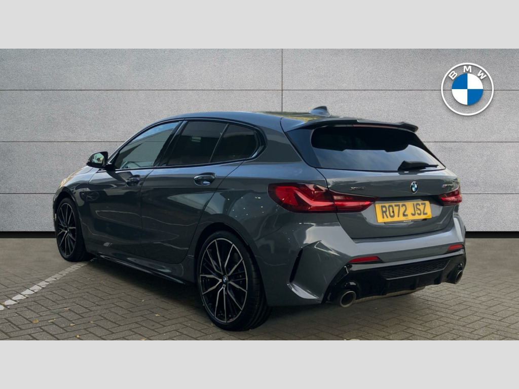 This 2022 BMW 1 Series M135i presents an exceptional ownership proposition with its remarkably low mileage of just 14112 miles, a testament to its careful single owner. This Euro 6 compliant model boasts a potent 2.0L petrol engine paired with a four wheel drive drivetrain, ensuring dynamic performance. Its provenance is further strengthened by a full dealership service history, with the last service completed on 2025 10 30 at 14112 miles, and it will come with a 12 month MOT for your peace of mind. Inside, you'll find the M135i Pro Pack, featuring perforated Dakota leather in black with grey highlights and a premium Harman Kardon Surround Audio Sound System. The cabin also benefits from automatic two zone climate control, and the striking 19 inch M Double Spoke Style 552 bi colour alloy wheels add to its assertive stance.