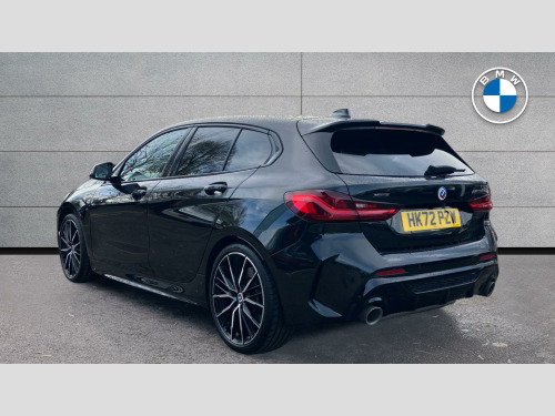 This 2022 BMW 1 Series M135i is a superb example, having had only one owner since new. It features a powerful 2.0 litre petrol engine paired with a four wheel drive drivetrain, ensuring excellent traction and performance. This Euro 6 compliant model comes equipped with the desirable Technology Pack, which includes Bluetooth connectivity, a Head Up Display, LED headlights, and a rear camera for parking assistance, alongside wireless phone charging. Further enhancing its appeal is the M135i Pro Pack, bringing a premium branded sound system, and the Park Assistant for effortless parking manoeuvres. Subtle yet distinctive BMW M 50 Year Badges and adaptive LED headlights add to its sophisticated presence.