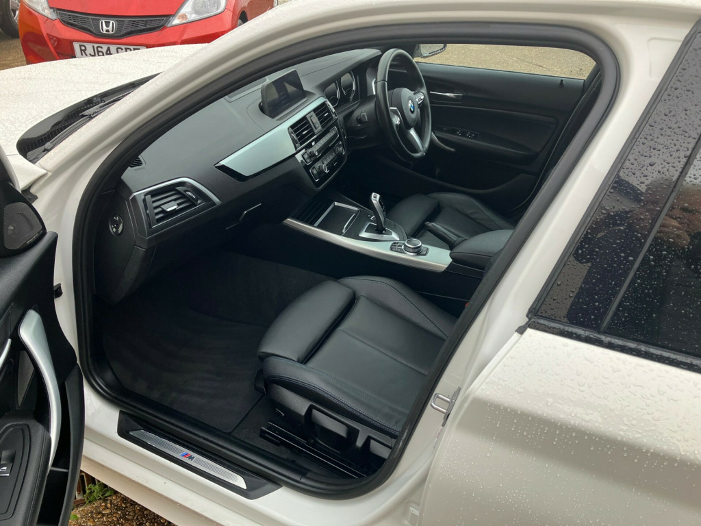 A stunning BMW M Sport Shadow Edition 1.5 118i GPF Hatchback 5 Dr (8) in White and with low mileage of only 35,000 from new. A very well cared for example that offers very impressive levels of quality and refinement. The paintwork gleams with a deep glossy shine, and the well built premium interior with contoured Sport seats, in Dakota leather, with heated front seats is in pristine condition. Key features include the M Sport body kit and exclusive black styling elements like the kidney grille, exhaust tailpipes, and exterior trim. It features a 134 horsepower engine, M Sport suspension, a 18-inch M Double Spoke alloy wheels, and along with LED headlights, M Sport brakes, and an upgraded interior with Leather-wrapped, multi-function M Sport steering wheel, Infotainment includes a Harmon Kardon sound system. DAB radio, satellite navigation, Bluetooth connectivity, and a USB connection, Dual-zone climate control, electric windows, and electric mirrors. Well- Balanced and super fun to drive this car will delight its new owner on every level., v power socket - centre console, 12v power socket - passenger footwell, bmw connecteddrive online services, bmw connecteddrive services, bmw emergency call, bmw navigation system, bmw professional radio - single cd and mp3, bmw teleservices, bluetooth hands free with usb audio interface, dab digital radio, loudspeaker system - harman kardon, real time traffic information, rear window aerial, remote services, shark fin, 18in alloy wheels - m double spoke - 719m bicolour jet black, bmw mobility tyre sealing system, black high-gloss kidney grille frame with black slats, direction indicator - side repeaters - integrated in exterior mirrors, direction indicator lights - clear lenses, electric windows - front and rear with open-close fingertip control - anti-trap facility and comfort closing function, exhaust tailpipes - dark chrome, exterior mirrors electrically adjustable, exterior parts in body colour, exterior trim - high gloss shadowline, heat protection glazing with green tint, led headlights with darkened surround, locking wheel bolts, m aerodynamic bodystyling, m logo designation chrome - side, rear fog light - offside, reversing light in rear cluster - nearside, run flat tyres, sun protection glazing, tyres - reduced rolling resistance, air conditioning - automatic - single zone, ambient lighting - switchable bmw classic orange - cold white - led, armrest - front with sliding adjustment, automatically dimming rear view mirror, central locking switch - doors - fuel filler cap - luggage compartment, cupholders two with sliding cover and inlay mat, door sill finishers - m designation, extended lighting, extended storage, floor mats - velour, glove compartment, glovebox - handle with chrome surround, grab handles - integrated in roof linings - four, handbrake and gear knob - leather, head restraints - rear and folding, headlining - anthracite, instrument cluster, interior lighting - front centre over interior mirror and rear centre, interior trim - aluminium hexagon with estoril blue finisher, lashing eyes in luggage compartment at sill x2, luggage compartment - light, luggage compartment access via bmw roundel, multifunction controls for steering wheel, non smokers package, personal profile, rain sensor with automatic headlight activation, seats - 60-40 split folding rear, side armrests - front and rear integrated into door trim, sport seats - front, start-stop button with comfort go keyless engine start and auto start-stop deactivation button, steering wheel - m sport leather multifunction, steering-wheel column adjustment - manual, storage compartment - rear centre console and in door trim - front, sun visors with vanity mirrors and ticket holder, twin horns, welcome lighting - led
