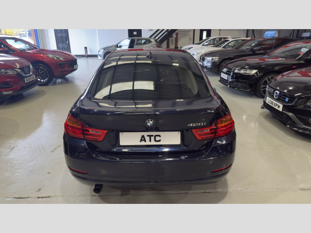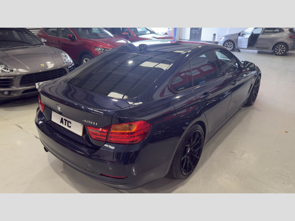 This 2014 BMW 4 Series Gran Coupe 420i M Sport presents an exceptional ownership proposition with a remarkably low mileage of just 35,000 miles. Powered by a responsive 2.0 litre petrol engine, this Euro 6 compliant vehicle offers a dynamic driving experience. Inside, youll find a wealth of comfort and convenience features, including electric front seat adjustment with driver memory, automatic two zone climate control. For seamless connectivity, it boasts Bluetooth hands free with USB audio interface. , The performance of this 420i M Sport is further enhanced by its impressive acceleration, reaching 0-62mph in just 6.0 seconds, a figure that highlights its sporting credentials. This swiftness, combined with the generous boot space, makes it a versatile choice for both daily commutes and longer journeys. The M Sport trim signifies a focus on sporty aesthetics and handling, setting it apart from other vehicles in its class.