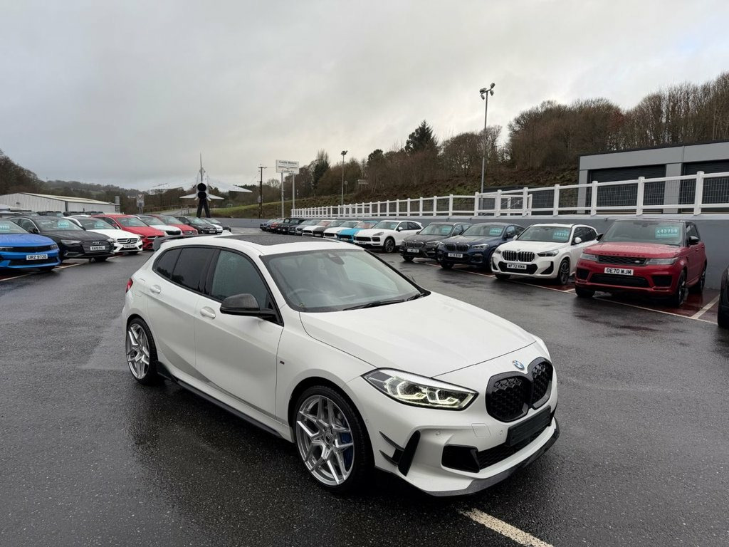 M135i xDrive 2.0 Auto. Alpine White with approximately £15,000 in options including huge factory BMW Specification, one fastidious local owner from new. 19-inch Wheels (Originals available if preferred), forged Carbon Fibre mirrors, genuine BMW M-Performance Aero Package fitted at BMW, Carbon Fibre exhaust tips, M-PRO Package, Technology Pack, Comfort Pack 2, Dakota Black leather, panoramic glass sunroof, Harmon Kardon Surround Hi-Fi, HUD Head Up Display, heated & electric seats with drivers memory plus heated steering wheel, Adaptive LED Headlights, automatic power tailgate, Comfort Access with Smart Key, Blue brake calipers, BMW LED headlights enhanced Bluetooth & wireless charging, parking Assistant including reversing camera, sun protection glass & more. One owner from new with BMW service history, covered 28,000 miles in immaculate condition & must be the highest spec M135 available 12V Power Socket in Centre Console Front, 18in Alloy Wheels - M Double-Spoke Style, 19in Alloy Wheels - M Double-Spoke Style, Active Guard Plus, Adaptive LED Headlights, Air Conditioning Automatic with Two-Zone, Airbags, Alarm System - Thatcham 1 with Remote Co, Alpine White, Armrest - Front Centre, Attentiveness Assistant, Automatic Powered Electric Bootlid, Automatically Dimming Rear View Mirror, Bluetooth - Audio Streaming - with Compa, Bluetooth Hands Free with USB Audio Inte, BMW Connected Package Professional, BMW ConnectedDrive Online Services, BMW Emergency Call, BMW Live Cockpit Professional, BMW Mobility Tyre Sealing System, BMW TeleServices, Bumper System Front and Rear - Replacea