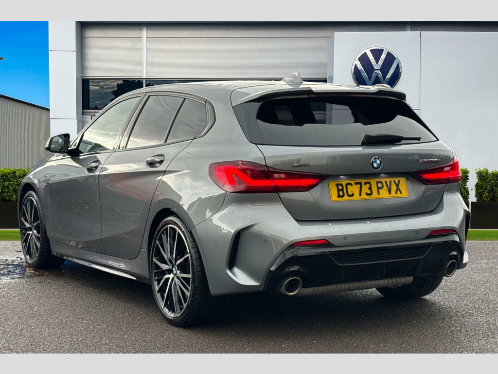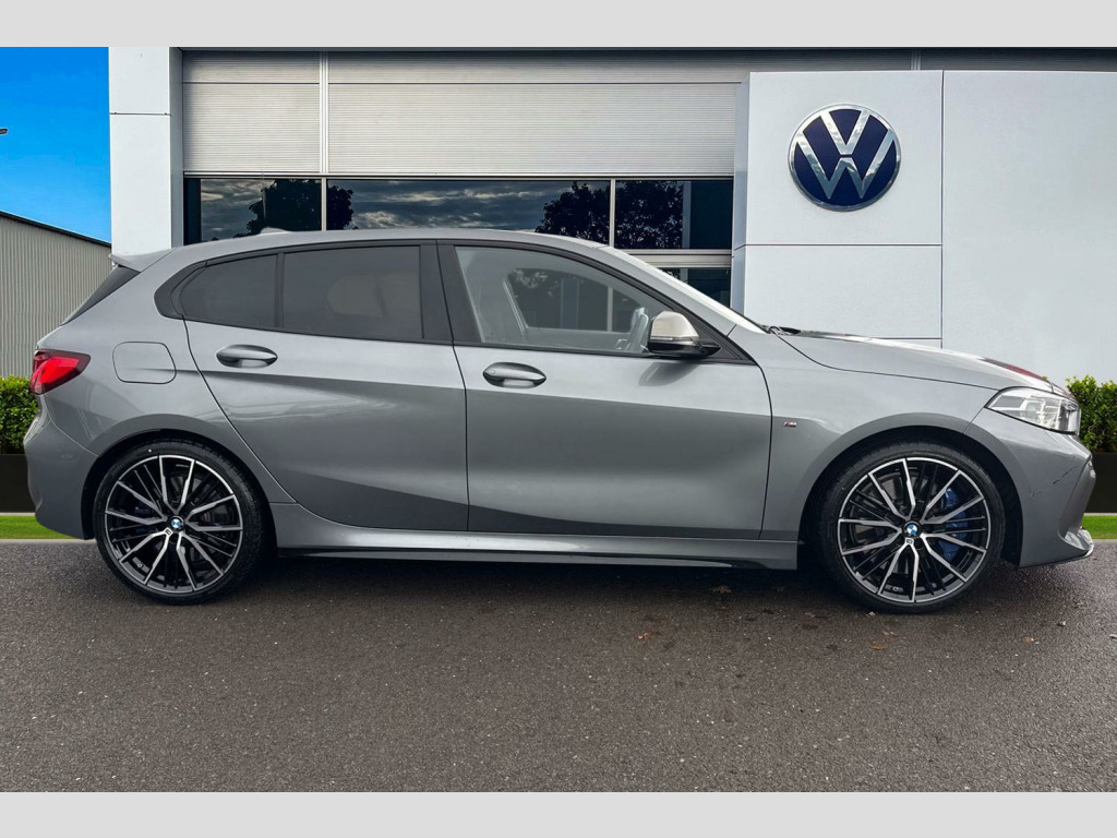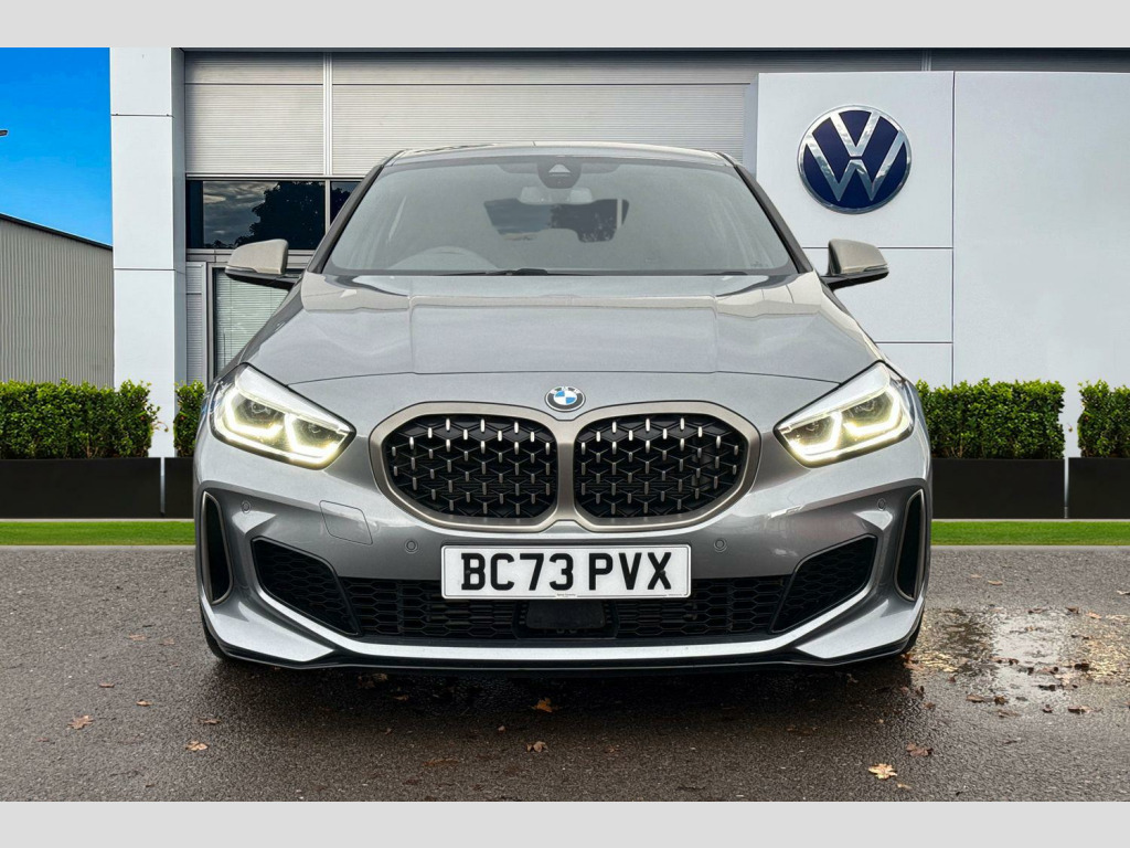 Harman Kardon Surround Audio Sound System, 19in Alloy Wheels - M Double-Spoke Style 552 - Bi-Colour, Sun Protection Glass, Sun Protection Glazing, M135i Pro Pack, Trigon Cloth-Alcantara - Anthracite, 12V Power Socket in Centre Console Front with Blanking Plug, 18in Alloy Wheels - M Double-Spoke Style 556 - Bi-Colour, Active Guard Plus, Air Conditioning Automatic with Two-Zone Control, Airbags, Alarm System - Thatcham 1 with Remote Control and Engine Immobiliser, Armrest - Front Centre, Attentiveness Assistant, Automatically Dimming Rear View Mirror, BMW Connected Package Professional, BMW ConnectedDrive Online Services, BMW Emergency Call, BMW Live Cockpit Professional, BMW Mobility Tyre Sealing System, BMW TeleServices, Bluetooth - Audio Streaming - with Compatible Devices, Bluetooth Hands Free with USB Audio Interface, Bumper System Front and Rear - Replaceable Deformation Elements for Impacts Up to 9mph, Central Locking Switch - Doors - Fuel Filler Cap - Luggage Compartment, Check Control Warning System for Monitoring of Lights and Door-Luggage Compartment Open Warning, Child Seat ISOFIX Attachment For The Two Outer Rear Seats And Front Passenger Seat, Childproof Locking System - Rear Doors and Electric Windows, Crash Sensor, Cruise Control with Brake Function and Speed Limiter, Cupholders - Two Front Centre Console, DAB Digital Radio, DSC - Dynamic Stability Control Plus, Dead-locking Function System to all Doors, Direction Indicator Side Lights Integrated in Exterior Mirrors, Door Sill Finishers with M135i Designation - Front Only, Drive Performance Control with ECO PRO and Comfort Modes, Drive-Away Locking System on All Doors-Luggage Compartment - Can Be De-Activated in iDrive Settings, ECO PRO Mode, EPS - Electric Power Steering, Electric Handbrake, Electric Windows - Front and Rear with Open-Close Fingertip Control - Trap Release and Child Lock Function, Exhaust Tailpipe - Cerium Grey with Bevelled Finish - Twin - Round 100mm - Left and Right Split, Extended Lighting, Extended Storage, Exterior Mirrors - Electrically Folding with Anti Dazzle, Exterior Parts in Body Colour, Exterior Trim - High Gloss Shadowline, First Aid Kit and Warning Triangle, Floor Mats - Velour, Front M Sport Seats, Front Windscreen Wipers with Integrated Washer Jets, Glove Box with Light, Grab Handles - Integrated in Roof Linings - Four, Headlining - Anthracite, Heat Protection Glazing with Green Tint, HiFi Loudspeaker System, High Level Third Brake Light, Illuminated Boston Interior Trim, Instrument Panel - Top Section, Integrated Owners Handbook - Within iDrive Menu, Interior Lighting, Kidney Grille in Cerium Grey with Mesh Design, LED Headlights, Larger Capacity Fuel Tank, Launch Control, Locking Wheel Bolts, Luggage Compartment Package, M Logo Designation - Side - Cerium Grey, M Performance Exhaust System with Valve Control and Minimised Exhaust Back Pressure, M Rear Spoiler, M Seat Belts, M Sport Aerodynamic Package, M Sport Brakes with Blue Calipers, M Sport Steering, M Sport Steering Wheel, M Sport Steering with M135i xDrive Specific Settings, M Sport Suspension, Mirror Caps - Cerium Grey, Model Designation on Electric Bootlid, Multifunction Controls for Steering Wheel, OBC - On-Board Computer, Oil Sensor For Level and Grade, Optimum Shift Indicator, PDC - Park Distance Control - Front and Rear, Performance Control, Personal Profile, Preparation For High-Beam Assistant, Rain Sensor with Automatic Headlight Activation, Rear Fog Light, Rear Seat Backrest with Manual 60-40 Split Folding with 3 Top Tether Clips Integrated on Rear of Seat Panels, Rear Seat Headrests - Three, Rear Window Wiper, Remote Control Key x2, Reversing Light in Rear Light Clusters, Seat Belt Security Check for Driver and Front Passenger, Seat Belt Warning if Driver Starts Ignition without Putting on Seatbelt, Seat Heating for Driver and Front Passenger, Servotronic Steering, Shark Fin, Side Armrests - Front and Rear Integrated into Door Trim, Side Impact Protection, Start-Stop Button - Illuminated in Centre Console with Keyless Engine Start and Auto Start-Stop Deactivation Button, Steering Column with Manual Reach and Rake Adjustment, Steering Wheel - Gearshift Paddles, Storage Features, Sun Visors with Vanity Mirrors and Insert Tab, TPMS - Tyre Pressure Monitoring System, Three-Point Seat Belts - All Seats, Two Tone Horn, Tyres - Reduced Rolling Resistance, Visible VIN, Welcome Light
