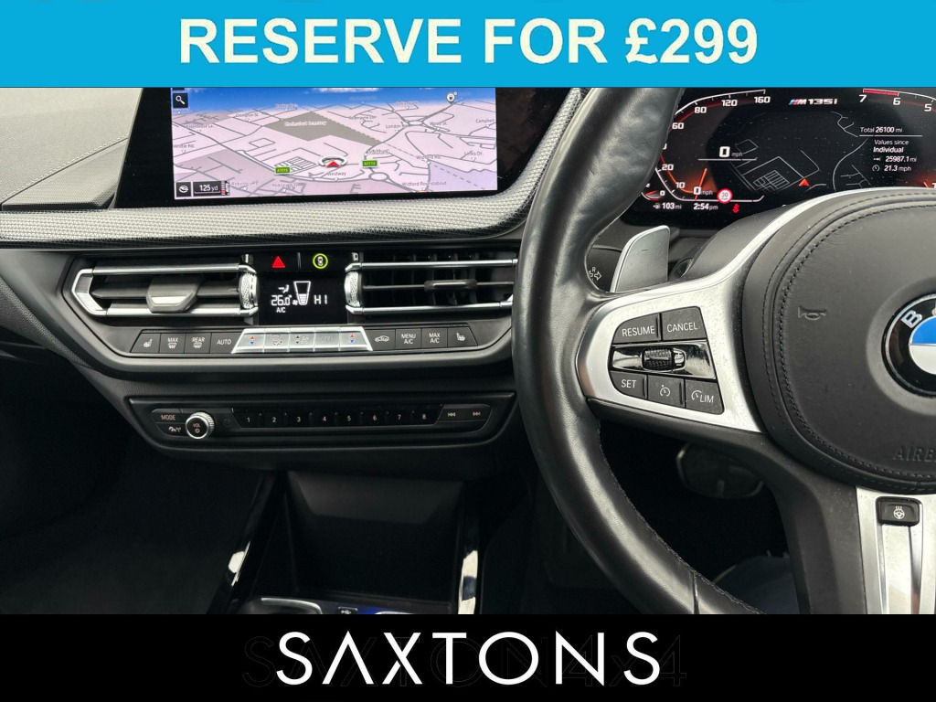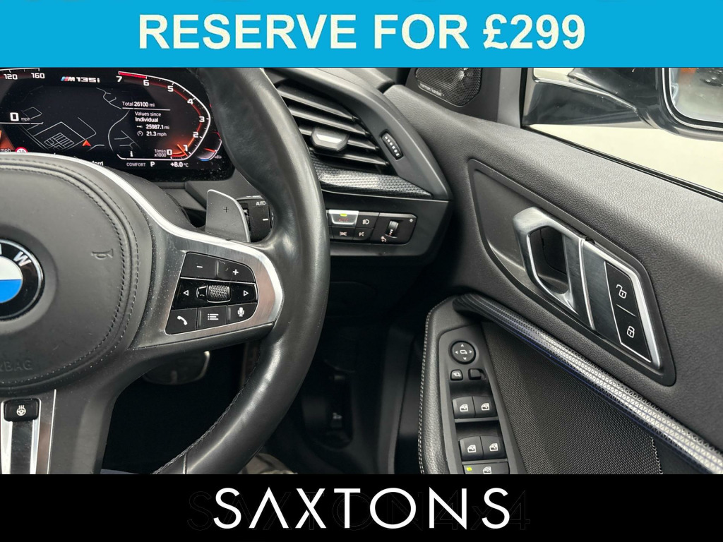 . M Sports Seats, M Sports Suspension, LED Headlamps, ISOFIX, Multi Function Steering Wheel, Cruise Control, Park Distance Control, Rear Spoiler, Harman Kardon Surround Sound, Heated Steering Wheel, DAB, Loudspeaker System - Harman Kardon, 19in Alloy Wheels - M Double-Spoke Style 552 - Bi-Colour, Sun Protection Glazing, Illuminated Berlin Interior Trim, M135i Plus Pack, Perforated Dakota Leather - Black with Grey Highlight, Steering Wheel - Heated.