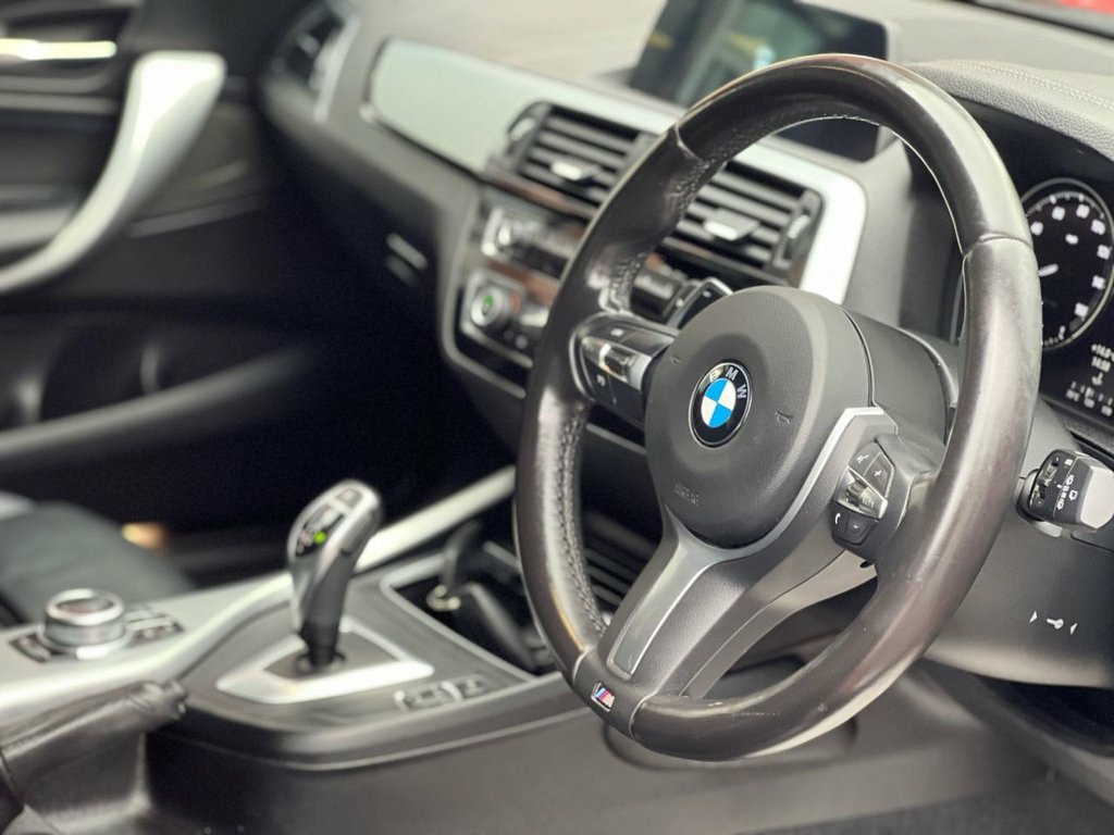 This 2018 BMW 1 Series M140i Shadow Edition finished in Melbourne Red Metallic with Full BMW Service History carried out at 8033, 8539, 19883, 23028, 28989, 38545 and 50923 miles offers an exceptional blend of performance and refinement, boasting a powerful 3.0 litre petrol engine that meets Euro 6 emissions standards. As a Shadow Edition, this model comes equipped with a premium Harman Kardon loudspeaker system for an immersive audio experience, alongside the convenience of Bluetooth hands free with USB audio interface. Parking is made simpler with rear Park Distance Control, and the rain sensor automatically activates the headlights, ensuring you are always prepared for changing conditions. The Interior Comfort Package, including climate control, further enhances the driving experience. This particular BMW 1 Series M140i Shadow Edition stands out with its impressive acceleration, reaching 0-60mph in just 4.6 seconds, a figure that highlights its superior performance compared to many other vehicles in its class. Furthermore, its low insurance group rating makes it an economical choice for many drivers, while the generous boot space ensures practicality for everyday use and longer journeys. Interior Trim - Brushed Aluminium with B, Dakota Leather - Black with Black Interi, 12V Power Socket - Centre Console, 12V Power Socket - Passenger Footwell, 18in Alloy Wheels - M Double Spoke - 436, Active Differential Brake - ADB Sport - , Air Conditioning Automatic with Two-Zone, Airbags, Airblades - Ferric Grey, Alarm System - Thatcham 1 with Remote Co, Ambient Lighting - Switchable BMW Classi, Armrest - Front with Sliding Adjustment, Automatically Dimming Rear View Mirror, BMW ConnectedDrive Online Services, BMW ConnectedDrive Services, BMW Emergency Call, BMW Mobility Tyre Sealing System, BMW Navigation System, BMW Professional Radio - Single CD and M, BMW TeleServices, Battery Age Rec