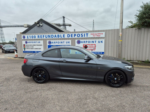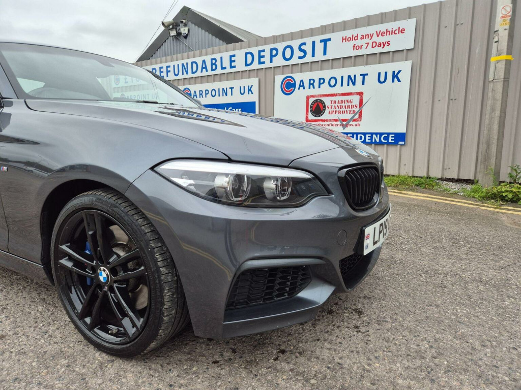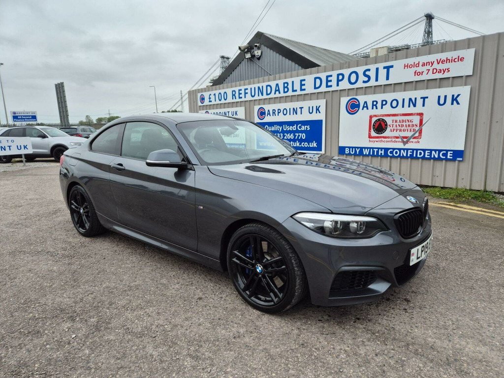OUR DECEMBER EXTRAVAGANZA SALE IS NOW ON , DECEMBER 1ST - DECEMBER 31ST, ALL VEHICLES ARE IN THE SALE - WE HAVE DISCOUNTED PRICES BY UPTO £1000, SOME OF THE BEST VALUE CARS IN THE UK , £100 REFUNDABLE DEPOSIT HOLDS ANY VEHICLE FOR 7 DAYS , DRIVE AWAY SAME DAY , PART EXCHANGE ACCEPTED , WE SETTLE EXISTING FINANCE , 60 SECOND FINANCE DECISION , FREE WARRANTY ON EVERY VEHICLE, This 2019 BMW 2 Series 218i M Sport boasts a full service history, with its last oil filter service completed on 2025-10-06 at 53,321 miles, and an MOT valid until October 2026, offering excellent peace of mind. This Euro 6 compliant model features a 1.5 litre petrol engine and is presented in the desirable M Sport trim. Inside, youll find comfortable Dakota Leather upholstery in Black with exclusive stitching, along with seat heating for both the driver and front passenger. The M Sport Plus Package enhances the driving experience, including a premium branded sound system from Harman Kardon, and the exterior is finished with a sporty M Rear Spoiler. The BMW 218i M Sport offers an impressive highlight of 37 miles per gallon, demonstrating its efficiency compared to other vehicles in its class. Furthermore, its low CO2 emissions contribute to a more environmentally conscious drive. This combination of performance, comfort, and economy makes this BMW 2 Series a compelling choice for those seeking a well maintained and feature rich compact car.