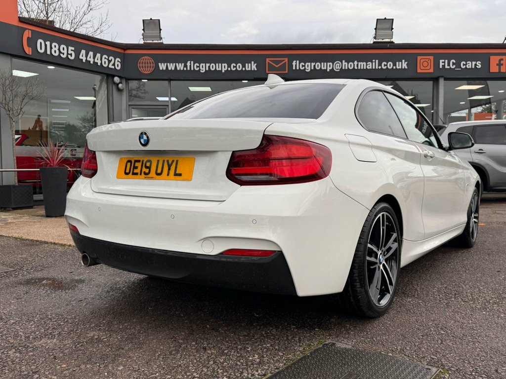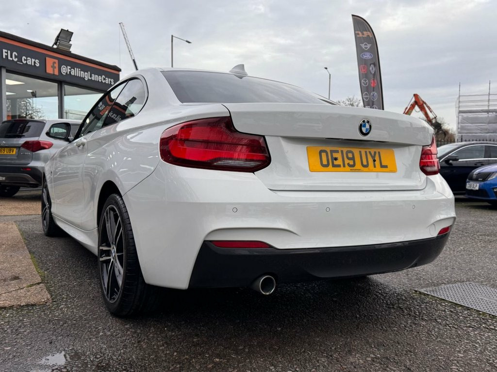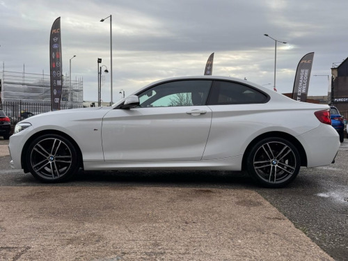 FLC is proud to present this BMW 218i M Sport, a sleek coupé that blends sporty styling with everyday practicality. Finished in Alpine White and sitting on 18" Diamond Cut M Sport Alloys, this 2 Series delivers strong road presence with its dynamic lines and confident stance. This example is in excellent overall condition, supported by Service History, a valid MOT until August 2026, and showing only minor age-related blemishes. Engaging to drive and composed on the road, the 2 Series offers the responsive handling and refined feel BMW is known for. Its balanced setup and agile character make it enjoyable on both short trips and longer journeys, providing a confident and rewarding driving experience. Inside, the interior reflects BMW's commitment to quality and driver-focused design. Featuring iDrive Navigation, Climate Control, Parking Sensors, Alcantara Sport Seats and Auto Headlight, it offers comfort, modern technology, and premium finishes throughout. From the supportive seating to the intuitive controls, every element contributes to a refined and enjoyable environment. All part exchanges considered – contact FLC today to arrange a viewing. Alpine White, 18in Alloy Wheels - M Light Double-Spoke, BMW Navigation, M Sport Package, M Sport Suspension, Multifunction Controls for Steering Whee, PDC - Park Distance Control - Rear, Sun Protection Glazing, M Aerodynamic Bodystyling, M Logo Designation in Chrome on Left and, Steering Wheel - M Sport Leather Multifu, 12V Power Socket - Centre Console, Sport Seats - Front, OBC - On-Board Computer, Bluetooth Hands-Free Facility with USB A, Exhaust Tailpipe - Chrome - Single - Rou, 12V Power Socket - Passenger Footwell, Access to BMW Connected Plus (12 Month S, Active Differential Brake - ADB Sport - , Air Conditioning - Automatic - Single Zo, Airbags, Alarm System - Thatcham 1 with Remote C