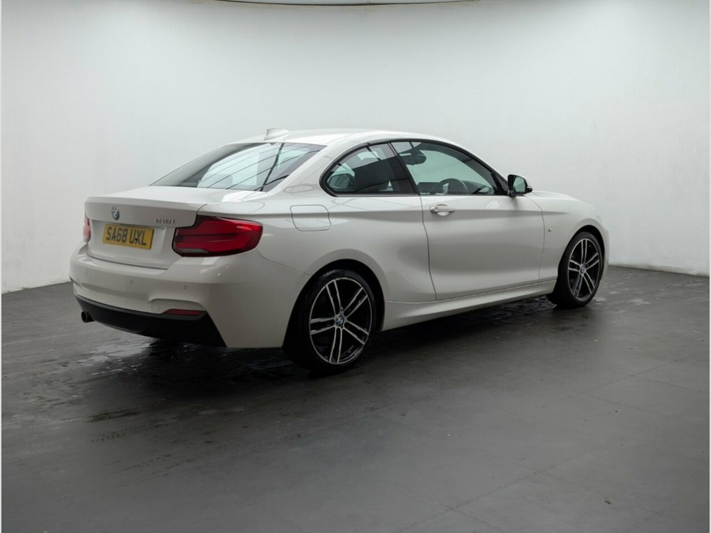 18" alloys, Navigation, Front sport seats, Bluetooth and DAB radio. Last service done at 41792 miles on 18/09/2025. Boasting exceptionally low mileage for its age, this 2018 BMW 2 Series 218i M Sport presents a superb ownership proposition. This Euro 6 compliant model features a 1.5 litre petrol engine and is presented in the desirable M Sport trim. Its MOT is valid until September 2026, and it comes with a clear vehicle history check, offering peace of mind. Notable features include a rain sensor with automatic headlight activation, LED headlights for enhanced visibility, and a Bluetooth hands-free facility with USB audio interface for seamless connectivity. Parking is made easier with rear park distance control, and the cabin comfort is assured with single zone automatic air conditioning. This BMW 2 Series 218i M Sport offers an impressive fuel economy of 37 miles per gallon, a highlight that demonstrates its efficiency compared to similar vehicles. Furthermore, its low CO2 emissions contribute to a more environmentally conscious driving experience. With only 43,800 miles on the clock, this car has been driven significantly less than expected for its year, indicating careful use and potentially a more preserved mechanical condition. 12V Power Socket - Centre Console, 12V Power Socket - Passenger Footwell, 18in Alloy Wheels - Light M Double Spoke, 18in Alloy Wheels - M Light Double-Spoke, Active Differential Brake - ADB Sport - , Air Conditioning - Automatic - Single Zo, Airbags, Alarm System - Thatcham 1 with Remote Co, Alpine White, Ambient Lighting - Switchable, Armrest - Front with Sliding Adjustment, Battery Age Recognition Function, Battery Safety Cut Off, Bluetooth Hands-Free Facility with USB A, BMW ConnectedDrive Online Services, BMW ConnectedDrive Services, BMW Emergency Call, BMW Navigation, BMW Professional Radio with Single CD Pl, BMW TeleServices, Brake Pad Wear Indicator, Bumper System - Front and Rear, Ce