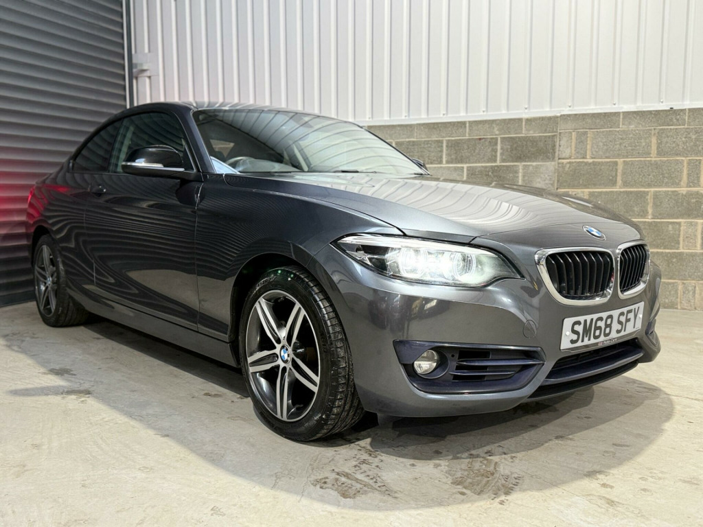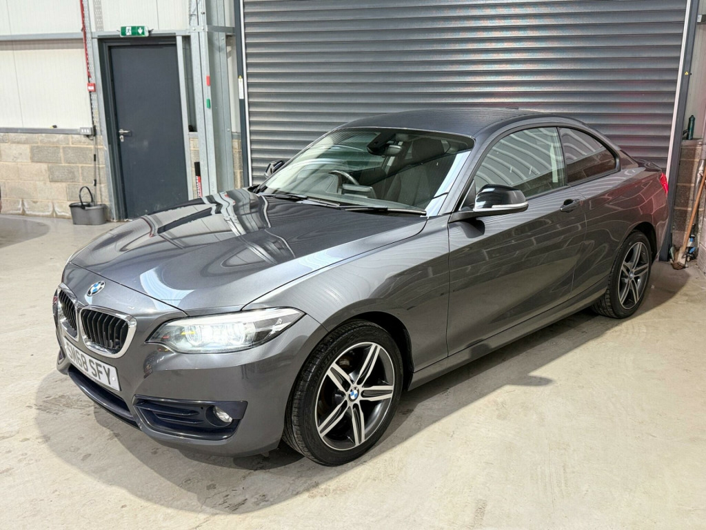 GB Auto-Care presents this stunning BMW 2 Series 1.5 218i GPF Sport Euro 6 (s/s) 2dr. Boasting huge spec and sportiness! Comes with fresh 12 months MOT, vehicle will go through our onsite workshop for a full Pre sale Mechanical Inspection and a full service, will leave us with a 6 month premium Warranty with nationwide breakdown included and with options to extend. FINANCE AVAILABLE NATIONWIDE HOME DELIVERY PART X WELCOMEThis 2018 BMW 2 Series 218i Sport is a superb example, having been cherished by just one owner from new. This Euro 6 compliant model boasts a 1.5 litre petrol engine and comes with a 6 month warranty for your peace of mind. It also includes 12 months MOT provided on purchase, ensuring its roadworthiness. The Sport trim level enhances the driving experience with M Sport Suspension and a stylish Anthracite headlining. Convenience features include single zone automatic air conditioning with climate control, a rain sensor that automatically activates the headlights, and bright LED headlights.This BMW 2 Series offers an impressive fuel economy of 38 mpg, highlighting its efficiency compared to other vehicles in its class. Its low CO2 emissions further underscore its economical and environmentally conscious design. The vehicle benefits from partial service history, with its last service completed on 2025-12-05 at 60346 miles, indicating diligent maintenance. n protection glazing, 17in alloy wheels - light star spoke - 379 - burnished and finished in orbit grey, mirror caps - black, corner cloth - anthracite with grey highlight with black interior, automatically dimming rear view mirror, corner cloth - anthracite with red highlight with black interior, headlining - anthracite, m sport suspension, 12v power socket - centre console, 12v power socket - passenger footwell, 17in alloy wheels - double-spoke style 725 - burnished and finished in orbit grey, active differential brake - adb sport - electronic differential lock in dsc-off mode, air conditioning - automatic - single zone, airbags, alarm system - thatcham 1 with remote control and engine immobiliser, ambient lighting - switchable bmw classic orange - cold white - led, armrest - front with sliding adjustment, bmw connecteddrive online services, bmw connecteddrive services, bmw emergency call, bmw navigation, bmw professional radio with single cd player - with mp3 playback compatibility, bmw teleservices, battery age recognition function, battery safety cut off, bluetooth hands-free facility with usb audio interface and audio streaming, brake pad wear indicator, bumper - rear with high gloss black finisher, bumper system - front and rear, central locking switch - doors - fuel filler cap - luggage compartment, check control warning system for monitoring of lights and door-luggage compartment open warning, child seat isofix attachment for the two outer rear seats, coat hooks - integrated into rear of b pillar, condition based service, crash sensor, cup holders x2 with sliding cover and inlay mat, dab digital radio, dsc - dynamic stability control plus, daytime driving lights, direction indicator - side repeaters - integrated in exterior mirrors, direction indicator lights - clear lenses, door sill finishers - exclusive with bmw designation - front, drive performance control - eco pro - comfort - sport - sport plus, dynamic brake lights, eco pro mode, eps - electric power steering, electric windows - front and rear with open-close fingertip control - anti-trap facility and comfort closing function, engine cover with bmw roundel and twinpower turbo designation, exhaust tailpipes - dark chrome - single - round, exterior mirrors electrically adjustable, exterior parts in body colour, first aid kit and warning triangle, floor mats - velour, front air inlet with high-gloss black finisher, glove box, handbrake lever and gear lever knob in leather, heat protection glazing with green tint, high level third brake light, instrument cluster, interior lighting - front centre over interior mirror and rear centre, interior trim - black high gloss with coral red finisher, kidney grille - extra wide high gloss black vertical slats, led fog lights - front, led headlights, led rear light bars, lashing eyes in luggage compartment at sill x2, lights-on warning by audio warning signal when ignition is switched off, locking wheel bolts, luggage compartment - light, luggage compartment access via bmw roundel, model designation, multifunction controls for steering wheel, obc - on-board computer, oil temperature display via on-board computer shown in central screen in instrument cluster, optimum shift indicator, pdc - park distance control - rear, personal profile - extended, rain sensor with automatic headlight activation, real time traffic information, rear fog light, rear seat headrests - folding - two, rear window aerial, remote control including integrated key - 2, remote control with integrated key with insert in red, remote services, reversing light in rear light clusters, run flat tyres, seat belt security check for driver and front passenger, seats - 60-40 split folding rear, servotronic steering, shark fin aerial, side armrests - front and rear integrated into door trim, side impact protection, sport multi-function leather steering wheel - three spoke, sport seats - front, start-stop button with comfort go keyless engine start and auto start-stop deactivation button, steering-wheel column adjustment - manual, storage compartment - rear centre console and in door trim - front, sun visors with vanity mirrors and ticket holder, tpms - tyre pressure monitoring system, three-point seat belts - all seats, twin horns, tyres - reduced rolling resistance, visible vin, welcome lighting - led