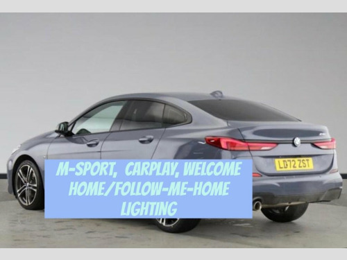 1 Owner from new, 2 Keys, Full Service History from BMW: 10552 miles, 17457, 20433, 27581 miles. MOT Till:25/09/2026,Reverse parking Camera 6 Month Warranty (Can be extended for upto 3 years), Finance Available [Hp/PCP], Part-exchange considered, Nationwide delivery Mobile phone App interface, Apple CarPlay, Start/Stop system, Reverse parking camera, leather seat upholstery, Heated front seats,Reverse ,Front parking & Rear Distance controle parking sensor,Dynamic brake lights, Cruise Control with Limiter, Drive Performance Control with ECO PRO - Comfort and Sport Modes, Parking Assistant Trigon Cloth-Sensatec - Black with Blue Stitching Very rare VIN spec VIN spec M Logo Designation Chrome - Side M Sport Aerodynamic Package M Sport Multi-Function Leather Steering Wheel - Three-Spoke M Sport Package M Sport Suspension M Sports Steering This 2022 BMW 2 Series Gran Coupe 218i M Sport is a superb example, having had only one owner since new. This stylish M Sport variant boasts a responsive 1.5 litre petrol engine, meeting Euro 6 emissions standards. Inside, you'll find the advanced BMW Live Cockpit Professional with Bluetooth connectivity, and for your comfort, dual zone automatic air conditioning. Navigating tight spaces is made effortless thanks to the comprehensive Parking Assistant, which includes a rear camera and both front and rear parking sensors. The striking LED headlights ensure excellent visibility in all conditions. This particular 2 Series Gran Coupe offers 12V Power Socket - Luggage Compartment, 12V Power Socket in Centre Console Front, 18in Alloy Wheels - M Double-Spoke Style, Active Guard Plus, Air Conditioning - Automatic - Dual Zone, Airbags - Driver and Front Passenger Sid, Airbags - Driver and Passenger, Airbags - Head - Front and Rear, Alarm System Thatcham Category 1 with Re, Armrest - Front, Attentiveness Assistant, Automatically Dimming Rear View Mirror, BMW Connected Package Professional, BMW ConnectedDrive Online Services, BMW Emergency Call, BMW Live Cockpit Professional, BMW Mobility Tyre Sealing System, BMW TeleServices, Bumper System - Front and Rear, Central Locking Switch - Doors - Fuel Fi, Check Control Warning System for Mo