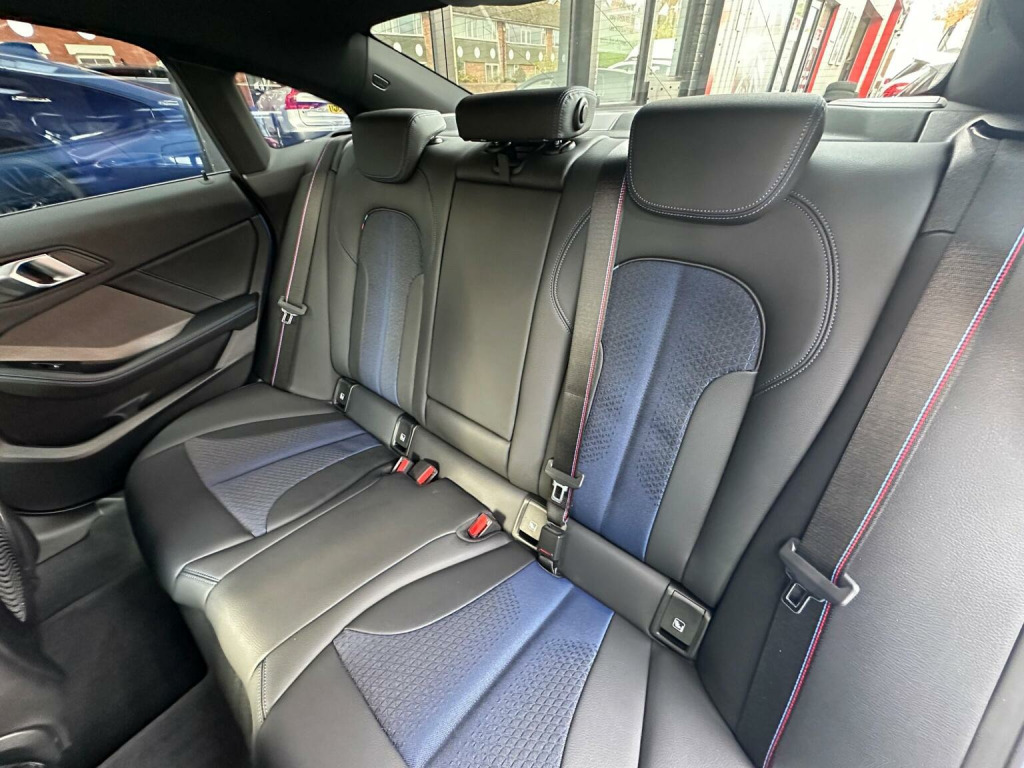 Demo. plus one owner and impeccable throughout. This 2023 BMW 2 Series Gran Coupe 218i M Sport offers an exceptional blend of style and efficiency, boasting a low insurance group that makes it an attractive choice. This Euro 6 compliant model features a responsive 1.5L petrol engine, paired with the sporty M Sport trim and the M Sport Pro Pack for an enhanced driving experience. It sits on striking 19in M Double-Spoke Style 552 Bi-Colour alloy wheels, and you can enjoy your favourite music through the premium Harman Kardon Surround Audio Sound System. Parking is made simpler with front and rear parking sensors, and staying connected is effortless thanks to Bluetooth audio streaming. The impressive fuel economy of 49 mpg highlights how this BMW 2 Series Gran Coupe is designed to be more economical than many other vehicles in its class. Furthermore, its low CO2 emissions also indicate a more environmentally conscious performance. These factors, combined with its sophisticated features and dynamic M Sport styling, make this 2023 BMW 2 Series Gran Coupe a compelling option for those seeking a premium and practical car.